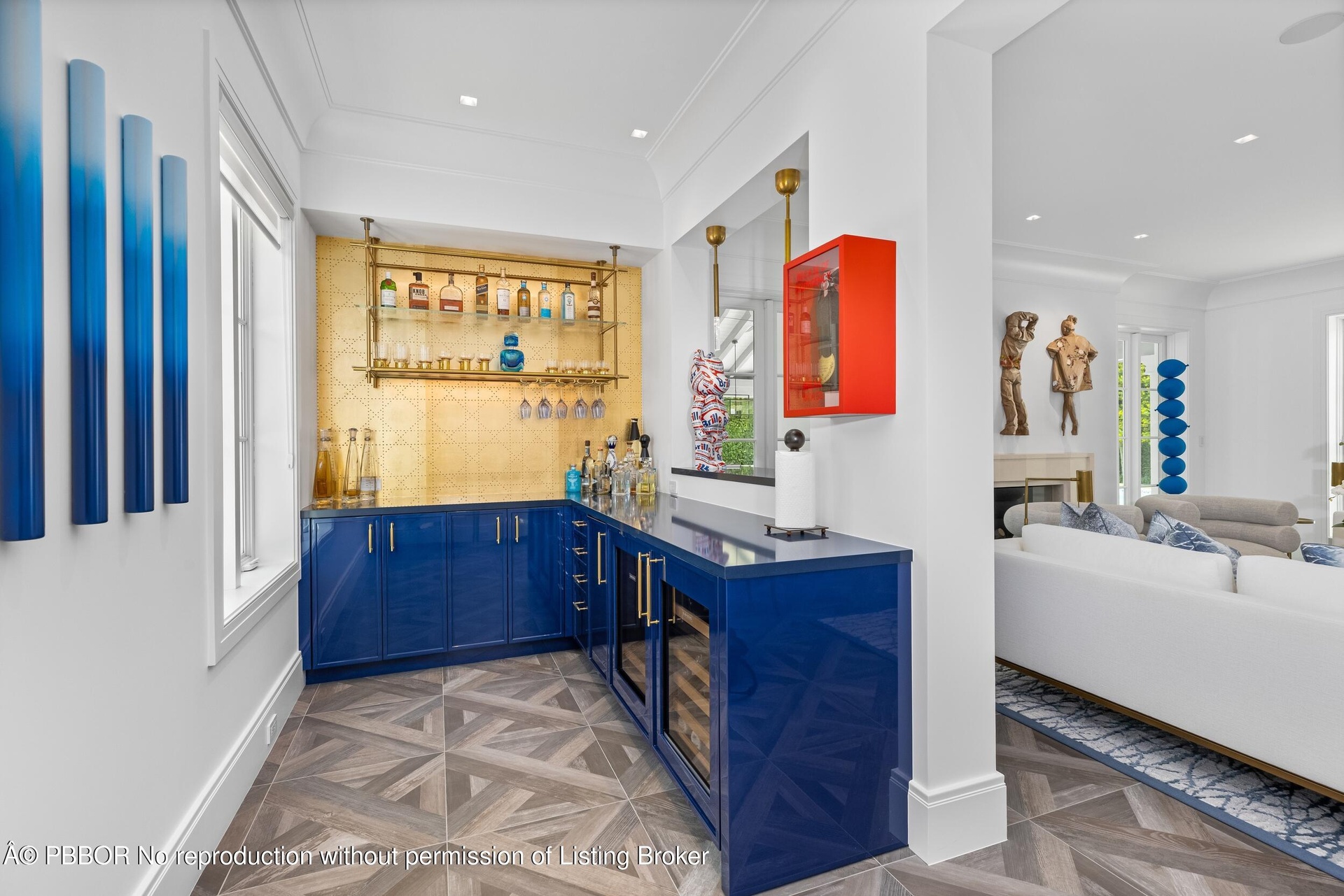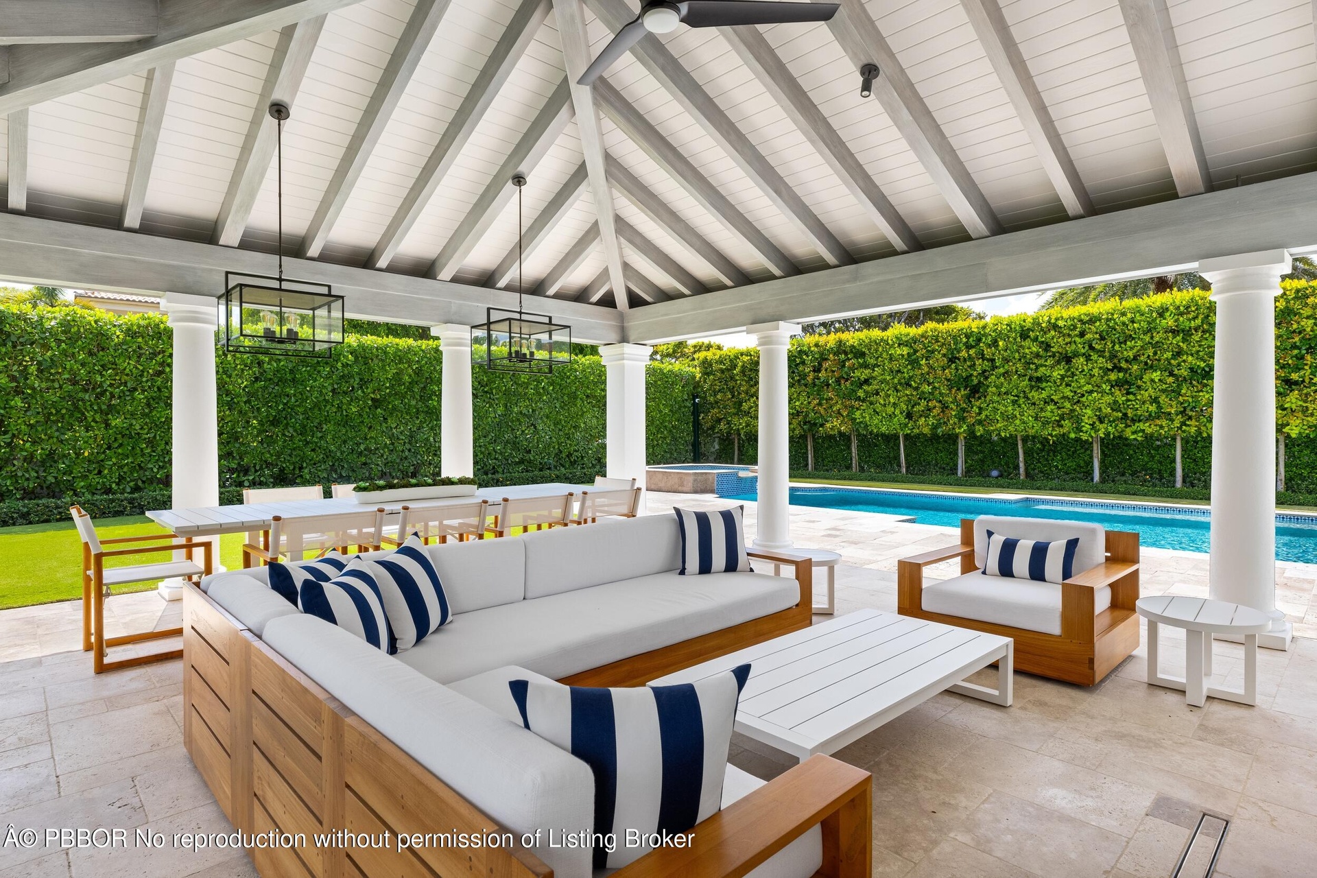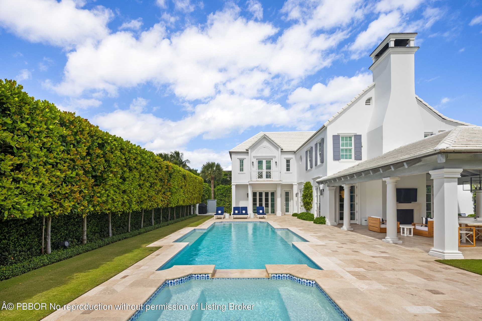 Gracious Georgian home located in Palm Beach's sought after Estate Section. Beautifully renovated in 2022 the home is pristine with seamless and ample entertainment and living spaces both inside and out. Spread over 7,500 +/- of luxurious living areas, the 5BR/5.2BA boasts beautiful finishes with Kenny Alpert's thoughtful signature design. Top-of-the-line eat-in kitchen with chef's island, wine fridge, and beautiful details showcasing exquisite craftsmanship. Living room features fireplace and stunning bar with wine fridges. Beautiful light filled library with built-in shelving. Soaring ceilings, impact windows, and generator. Manicured landscaping surrounds fabulous backyard with resort-style pool, spa, and oversized loggia with fireplace perfect for al fresco dining. Fantastic Estate Section location with beach access.