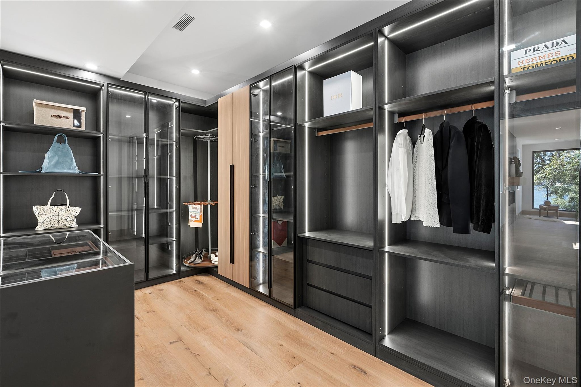 Newly completed and design-driven, this waterfront home makes a bold statement in modern coastal living on a private acre with 140 feet of frontage. Thoughtfully conceived and beautifully furnished, it blends architectural sophistication with effortless Hamptons style. A dramatic double-height foyer opens to sun-filled living and dining spaces framed by walls of glass overlooking the water. The imported German kitchen is a showcase of precision craftsmanship, offering extensive integrated storage, custom inserts, and sleek modern finishes. Two gracious bedroom suites anchor the main level, including a junior suite with private patio, spa-like bath with air-jet tub, and built-in Toto. Throughout the home, engineered wide-plank flooring, European-style closets, and designer lighting create a curated, contemporary aesthetic. The expansive primary suite and three additional bedrooms open to a broad waterside terrace with sweeping views. The primary bath rivals any five-star spa and features a gas fireplace and large custom walk-in closet, while a second laundry room adds everyday convenience. The finished lower level extends the living space with a gym, two guest bedrooms, a wine room, and ample storage-including a dedicated outdoor-furniture entrance. A heated garage provides year-round convenience and comfort, with easy access to the main level. Integrated Sonos sound throughout the home enhances both everyday living and entertaining. The property is professionally landscaped to enhance privacy and natural beauty. Expansive decks, multiple patios, and a generous lawn provide the perfect setting for water-view entertaining. Furnished with new, high-end pieces curated by a professional designer. Laundry rooms are located on both the first and second floors. Just minutes from East Hampton Village and ocean beaches, this residence embodies the ideal balance of modern luxury and coastal serenity-a turnkey waterfront retreat in one of the Hamptons' most sought-after settings.