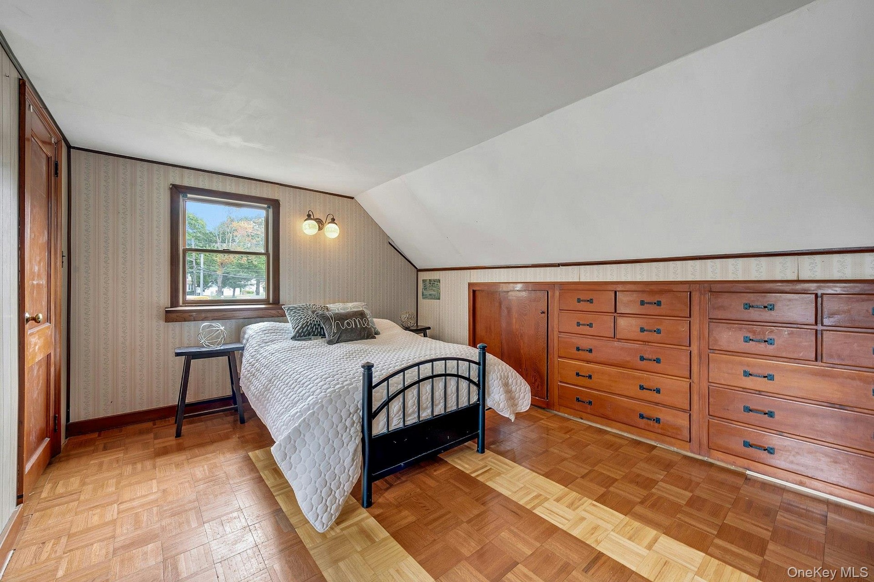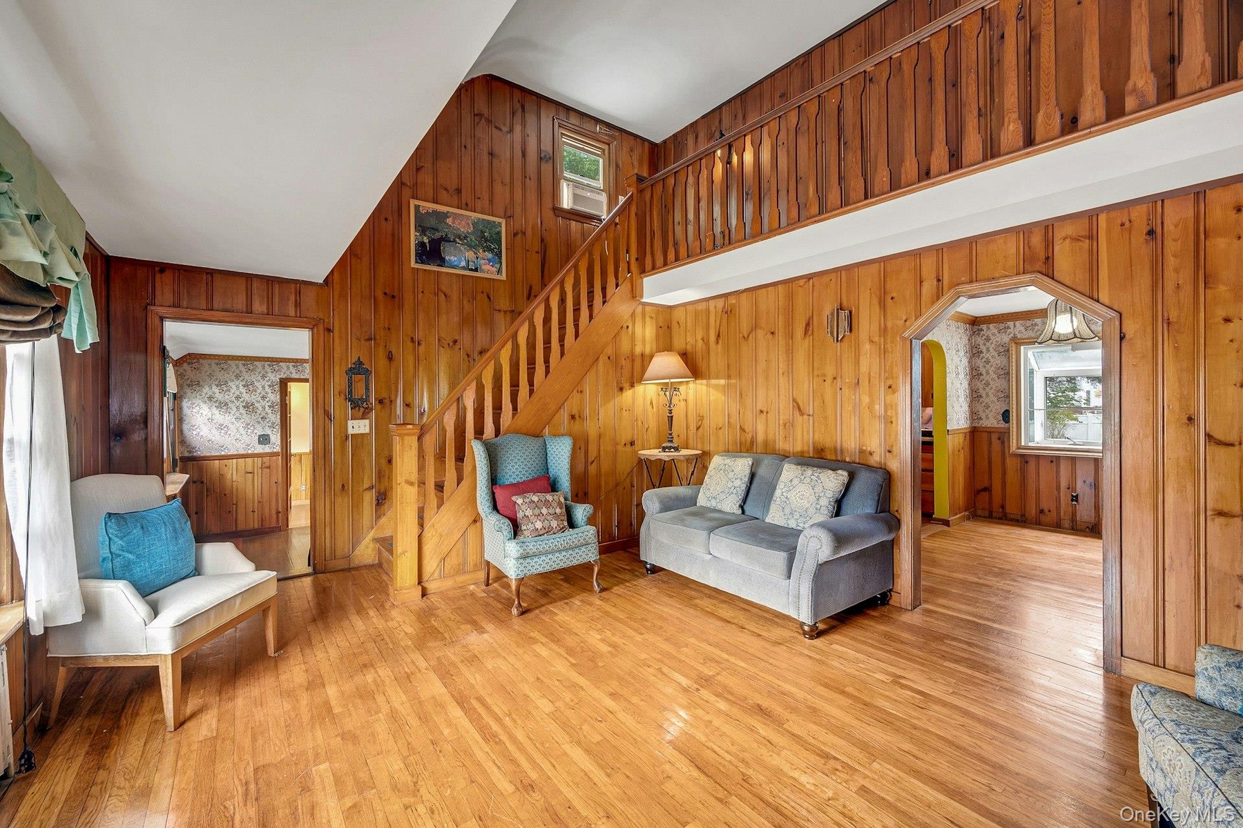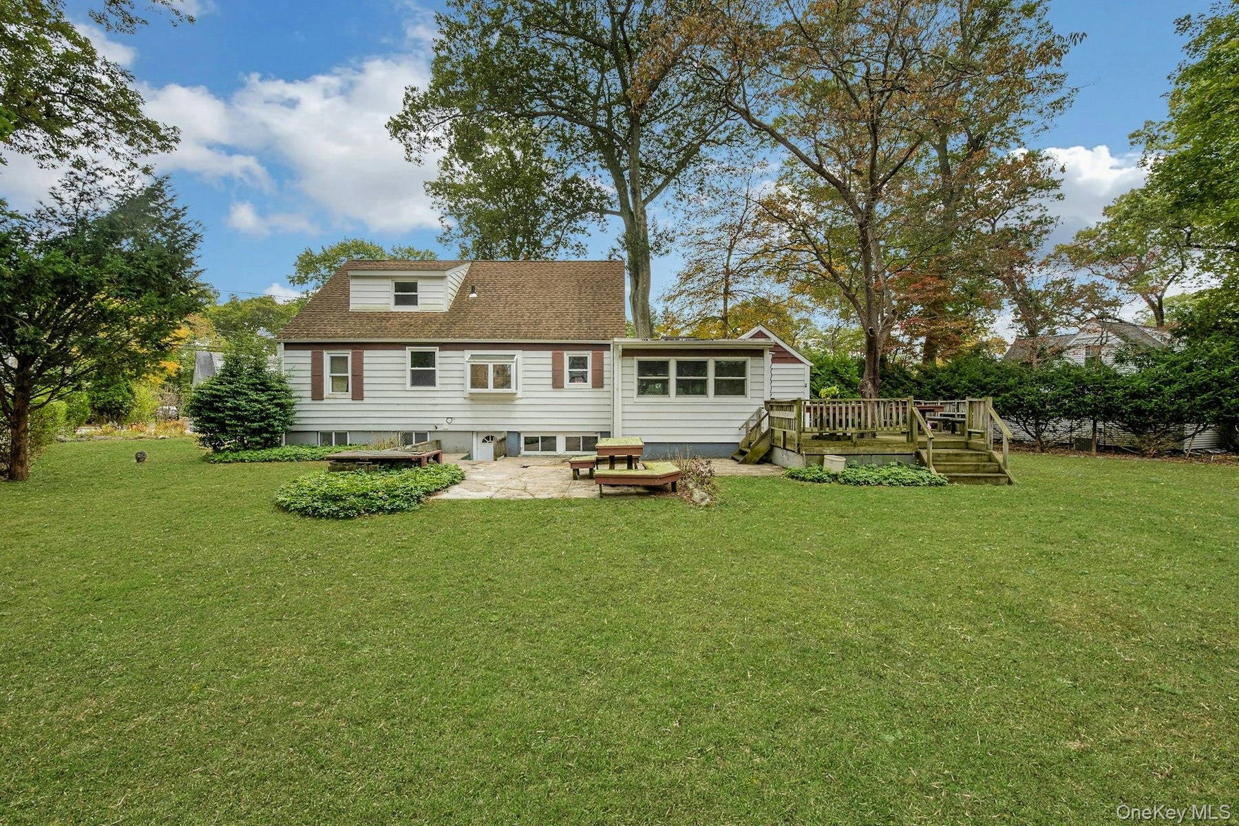 BIG LOT! Welcome to this inviting 3-bedroom, 2-bathroom Cape Cod home set on two lots totaling .76 acres—a rare find offering endless possibilities! Conveniently located just minutes from Lincoln Elementary School, downtown Pearl River, with its vibrant restaurants, shops, and parks, and train to Manhattan, this home combines suburban tranquility with commuter convenience. Easy access to the NYS Thruway, Palisades Parkway, Garden State Parkway, and 287 make travel in any direction a breeze. Inside, warmth and character abound. The living room features soaring vaulted ceilings, natural pinewood paneling, and a cozy fireplace, creating a welcoming retreat for relaxing evenings. A charming loft-style hallway connects to the primary bedroom and overlooks the living room, adding architectural interest and an open, airy feel. The family room also has vaulted ceilings and abundant natural light, offering an ideal space for gatherings or quiet moments. There is plenty of flexible space throughout—rooms that can easily function as a formal dining room, home office, music room, or creative studio. Upstairs, a private bedroom suite includes a full bath and sitting area, perfect for guests, or a peaceful owner’s retreat, with two additional bedrooms and a full bathroom on the first level. Outdoors, the expansive yard provides exceptional space for recreation and future dreams or simply enjoying barbecues and gatherings on the deck and appreciating some shade under the trees. This home is full of charm, functionality, and potential—enjoy as-is or reimagined to suit your own personal vision.