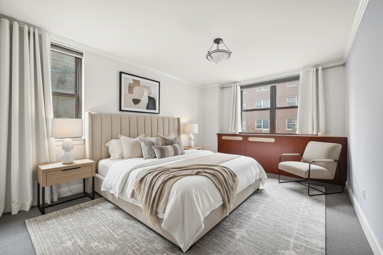 Located in a well-maintained full-service cooperative with a 24-hour doorman, live-in super, landscaped roof deck, bike storage, laundry room, and a secure on-site parking garage with direct building access. The building is surrounded by convenient access to public transit, markets, dining, green spaces, and cultural destinations - everything you need within a few blocks. There is a current assessment of $97.35/mo. Please note the photos are virtually staged.