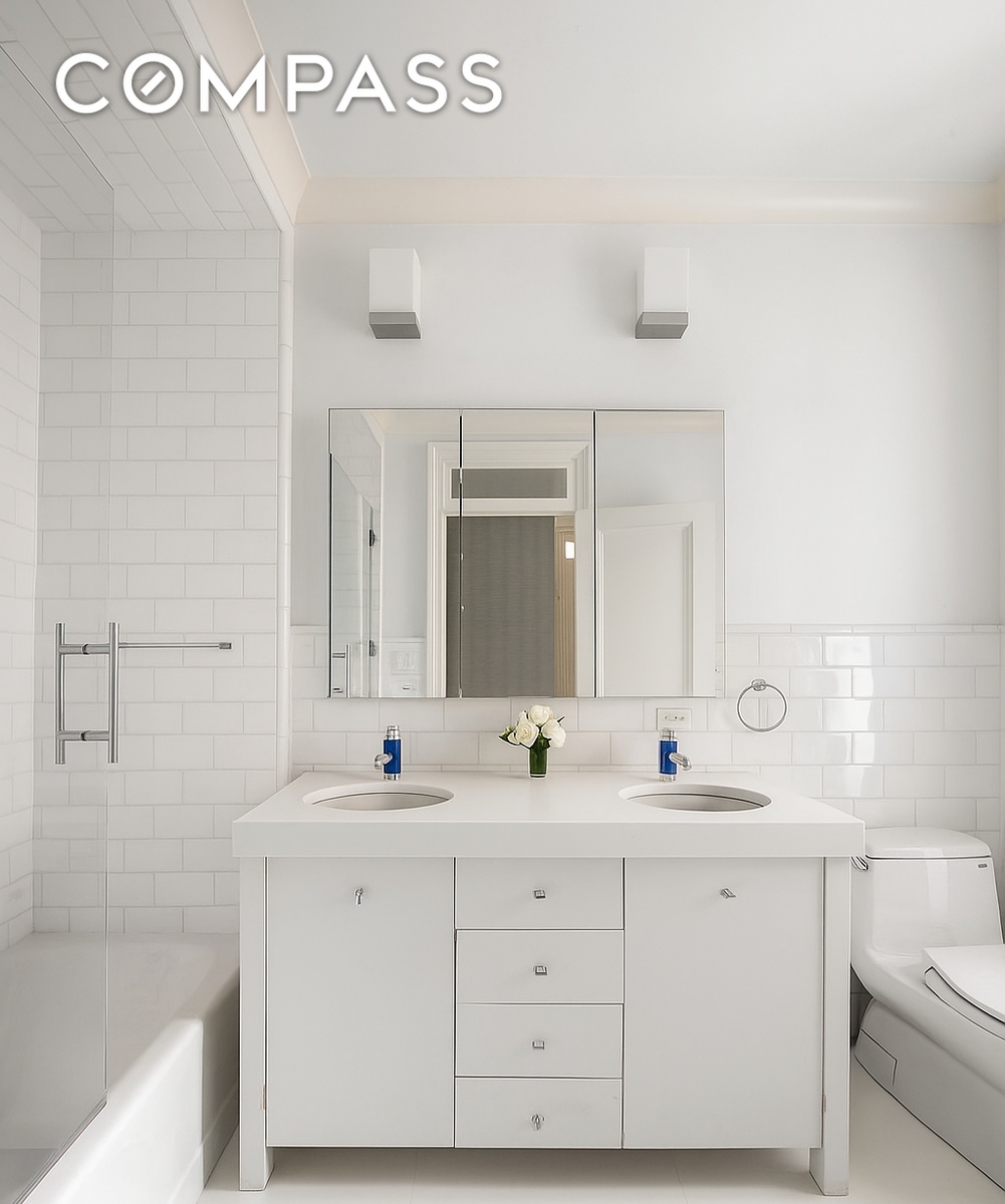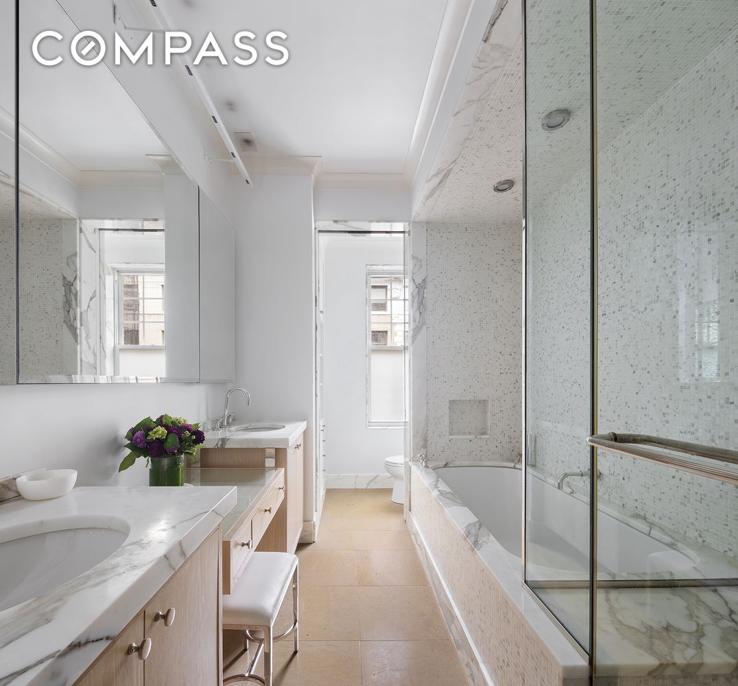 The primary suite, located off the library for maximum privacy, is a serene retreat with open southern and western exposures toward Central Park and the Metropolitan Museum. It includes a luxurious five-fixture bath and multiple walk-in closets.