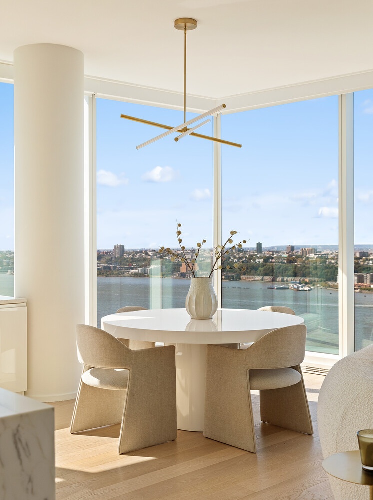 Perched above the Hudson River in one of Manhattan's most architecturally significant developments, this A-line residence - the most coveted line in the building - offers a massive nearly 2,000 sq ft home with sweeping south- and west-facing corner exposures that capture both the Hudson River and the Manhattan skyline from every floor-to-ceiling window.