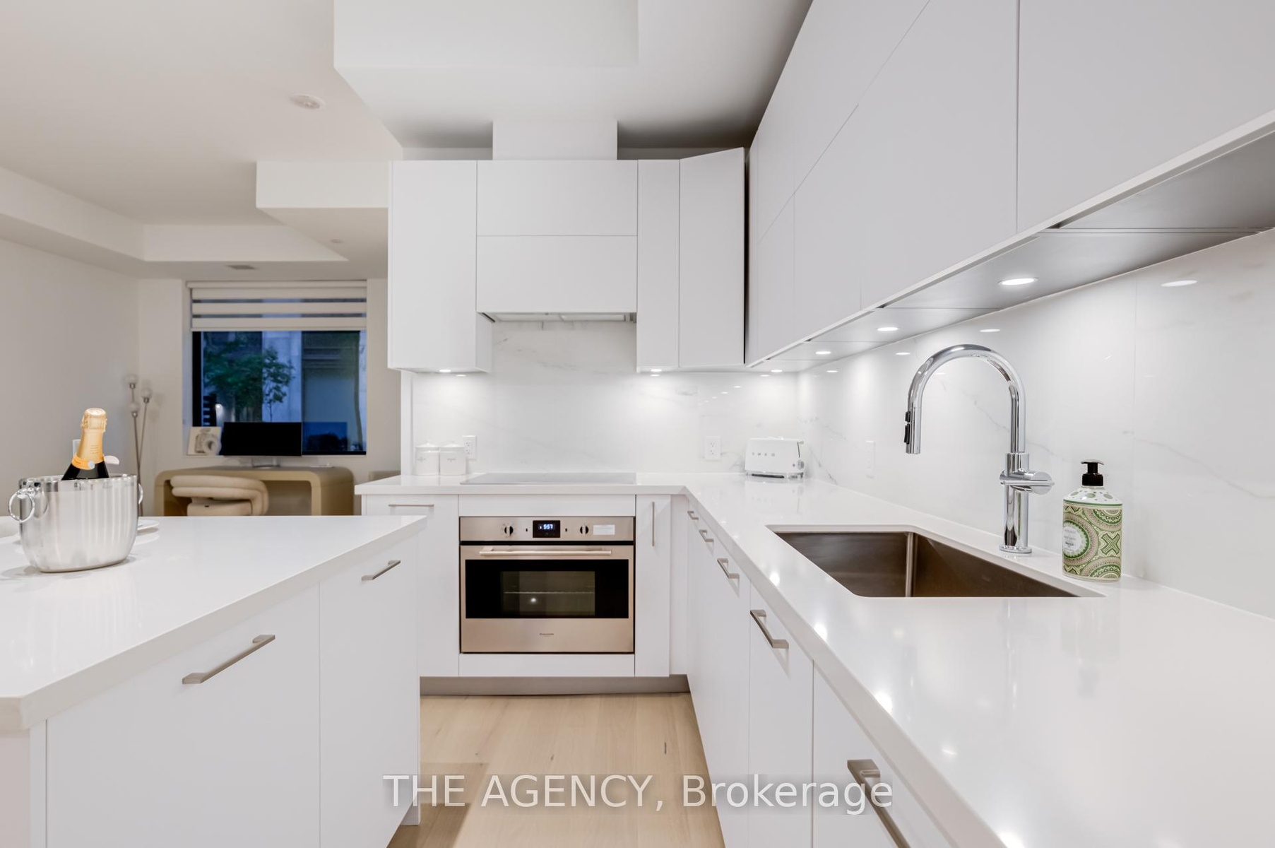 Welcome to Upper East Village - Leaside's premier luxury residence! This stunning 2-bedroom,3-bath condo townhome offers a rare blend of style, space, and functionality with soaringceilings, upgraded hardwood flooring, sleek modern finishes, and a private courtyard with BBQgas line and hose bib-perfect for entertaining. The designer kitchen features integrated 30"appliances, vertical-opening cabinets, upgraded backsplash, and a 30" cooktop, oven, andfridge. Enjoy the convenience of ensuite laundry plus a separate laundry room with a sink andstorage for linens and cleaning supplies. The home includes a walk-out balcony and privateoutdoor space, offering a true indoor-outdoor lifestyle. Located steps to Laird LRT Station,Sunnybrook Park, top-rated schools, Homesense, Canadian Tire, Marshalls, restaurants, andmore, with quick access to the DVP, Sunnybrook Hospital, Aga Khan Museum, and Edwards Gardens.Residents enjoy premium amenities including a 24-hr concierge, indoor pool, cardio/weightroom, outdoor lounge with fire pit and BBQ, and a private dining area. Includes 1 parkingspace and 1 locker-this is elevated living in one of Toronto's most sought-after neighborhoods