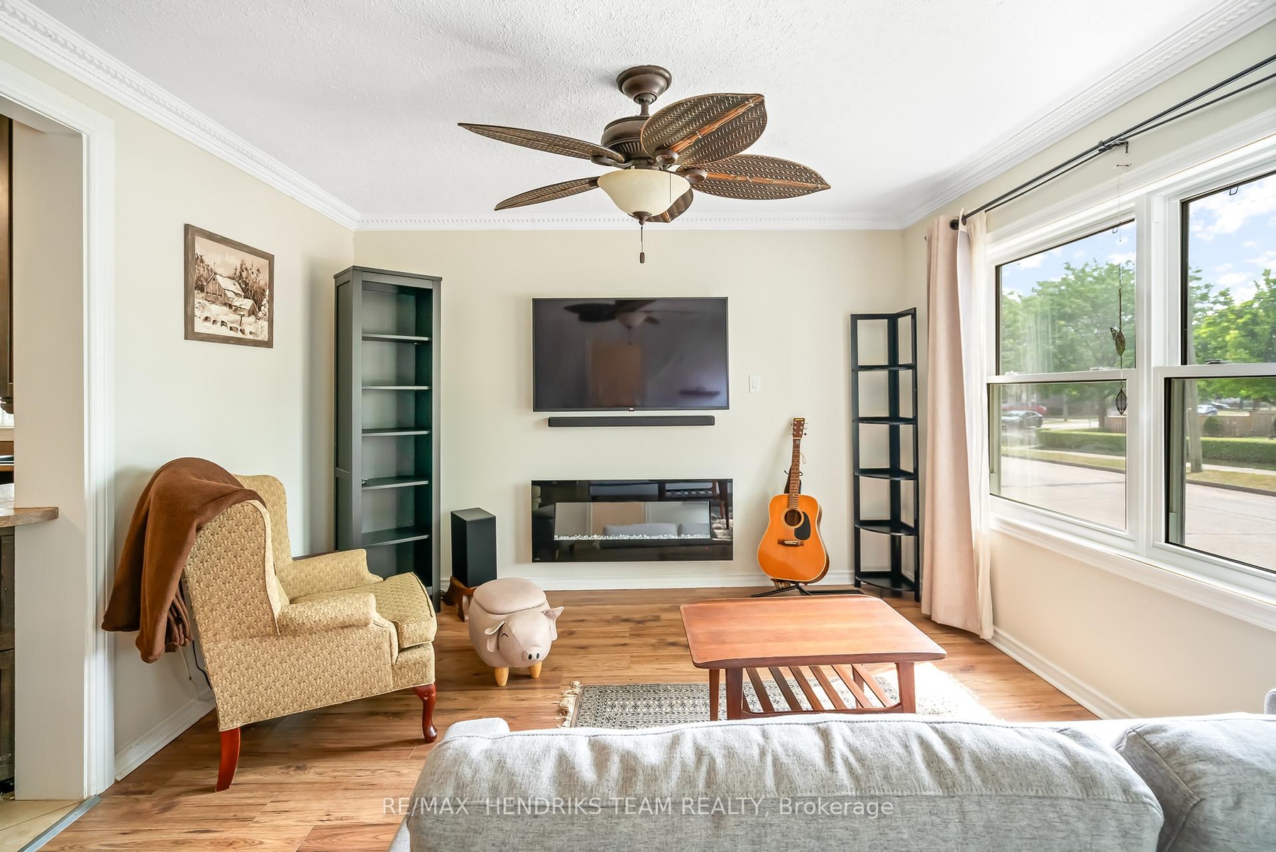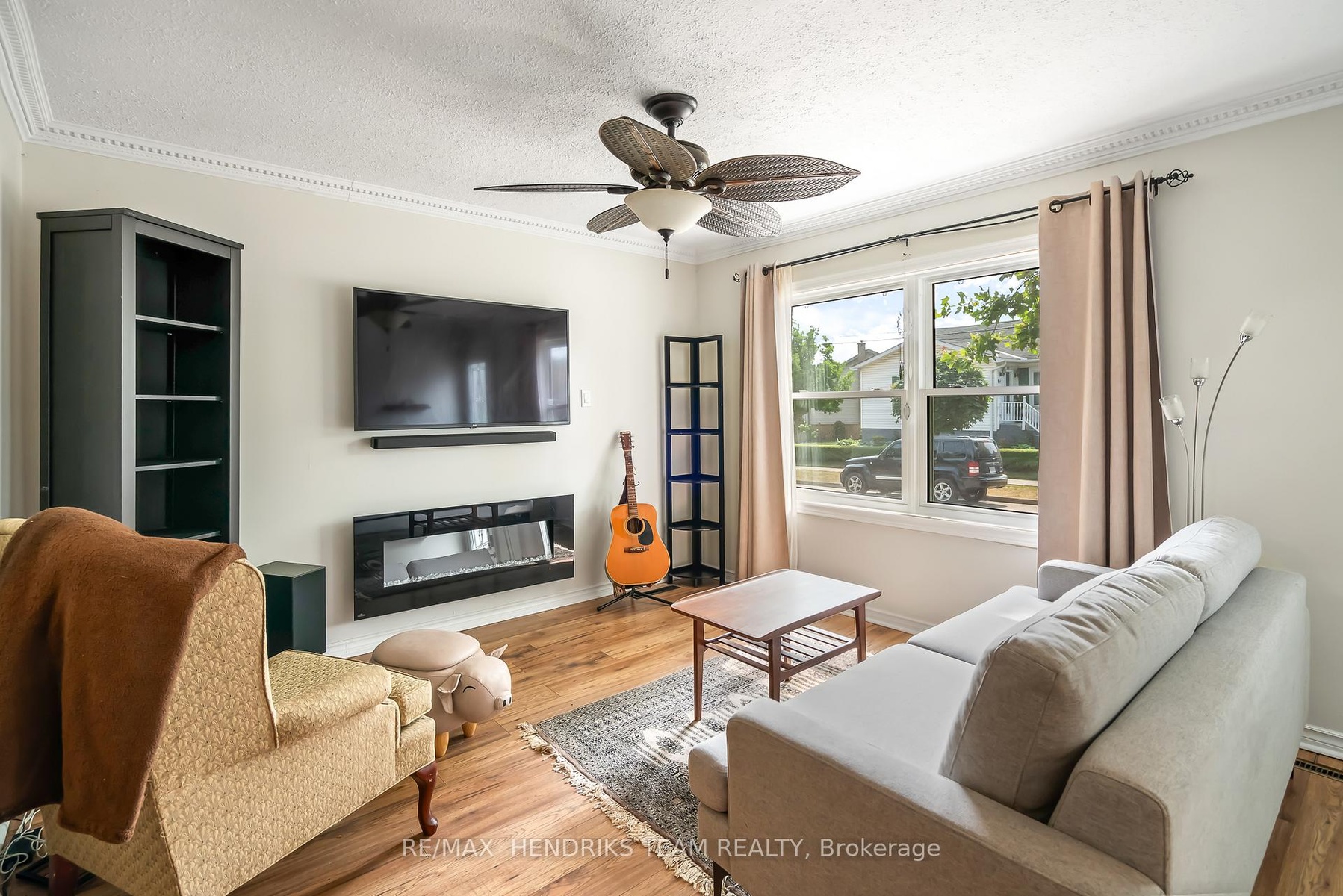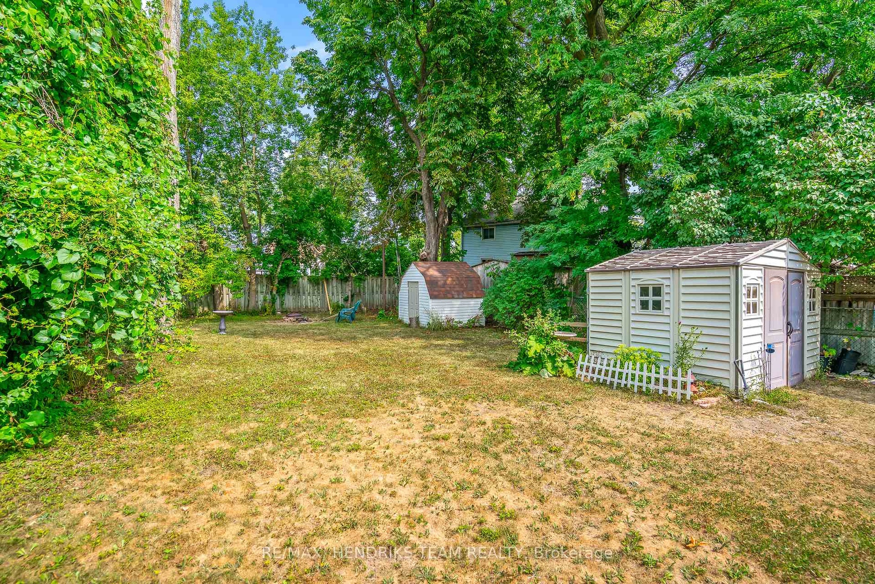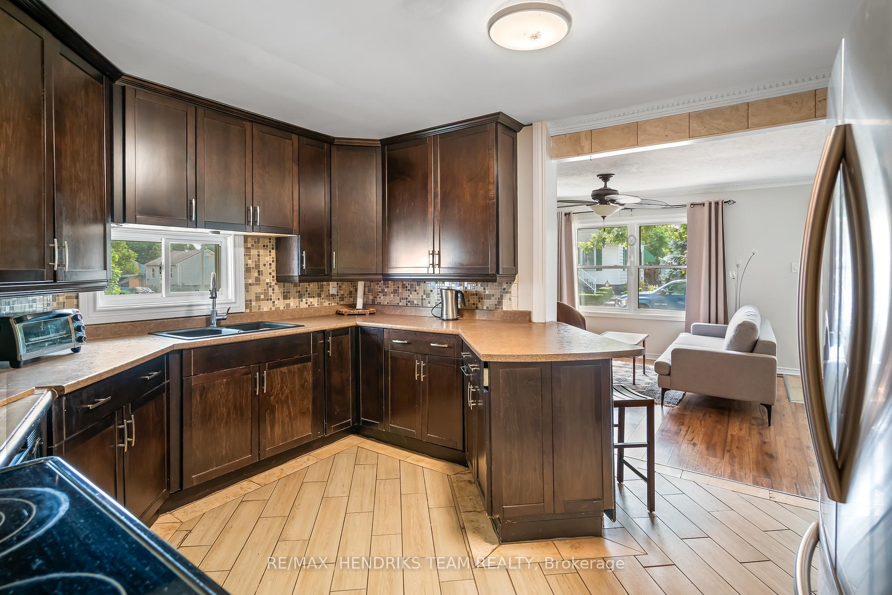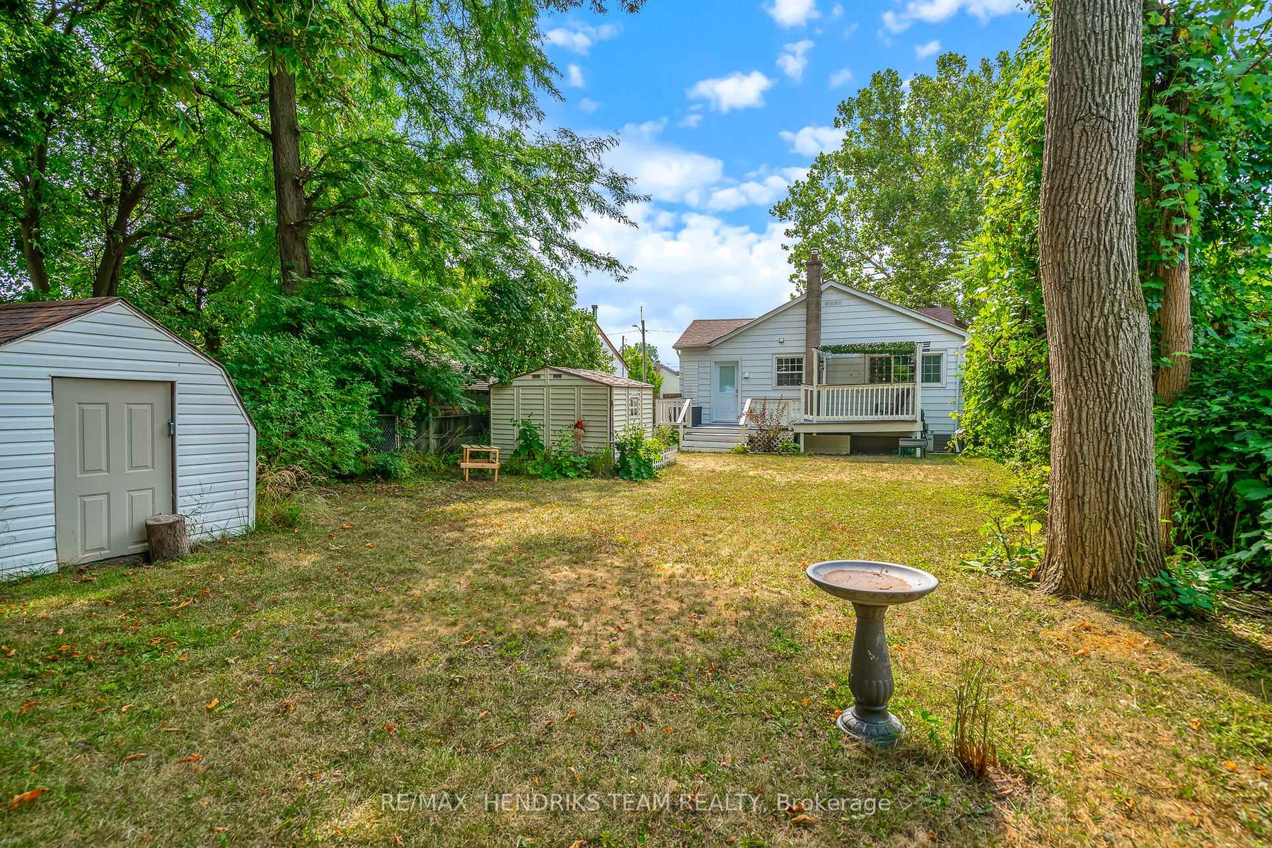 Fantastic detached bungalow located in central St. Catharines offering over 1,000 sqft. of comfortable main floor living. This well maintained home features three bedrooms and a spacious five-piece bathroom. A newer asphalt driveway accommodates 2+ vehicles. Inside, the open-concept layout includes a bright living room with electric fireplace, seamlessly mounted T.V. and sound bar. A modern kitchen with a breakfast bar and stainless steel appliances is a great touch to the space. Just off the living room, you'll find a versatile bedroom currently used as a home office. At the rear of the home, the large primary bedroom offers double closets, while the third bedroom is also generously sized. The large laundry room, with direct access to the backyard and the driveway, sits alongside the five-piece bathroom. While there is no full-height basement, a separate staircase in the laundry room leads to a utility area with 5 ft ceilings making it ideal for storage and housing the furnace and mechanicals. The fully fenced backyard is a true highlight, featuring a freshly painted deck with pergola, spacious lawn, fire pit and two garden sheds. Conveniently located close to shopping, schools, and highway access, this property delivers excellent value and convenience.
