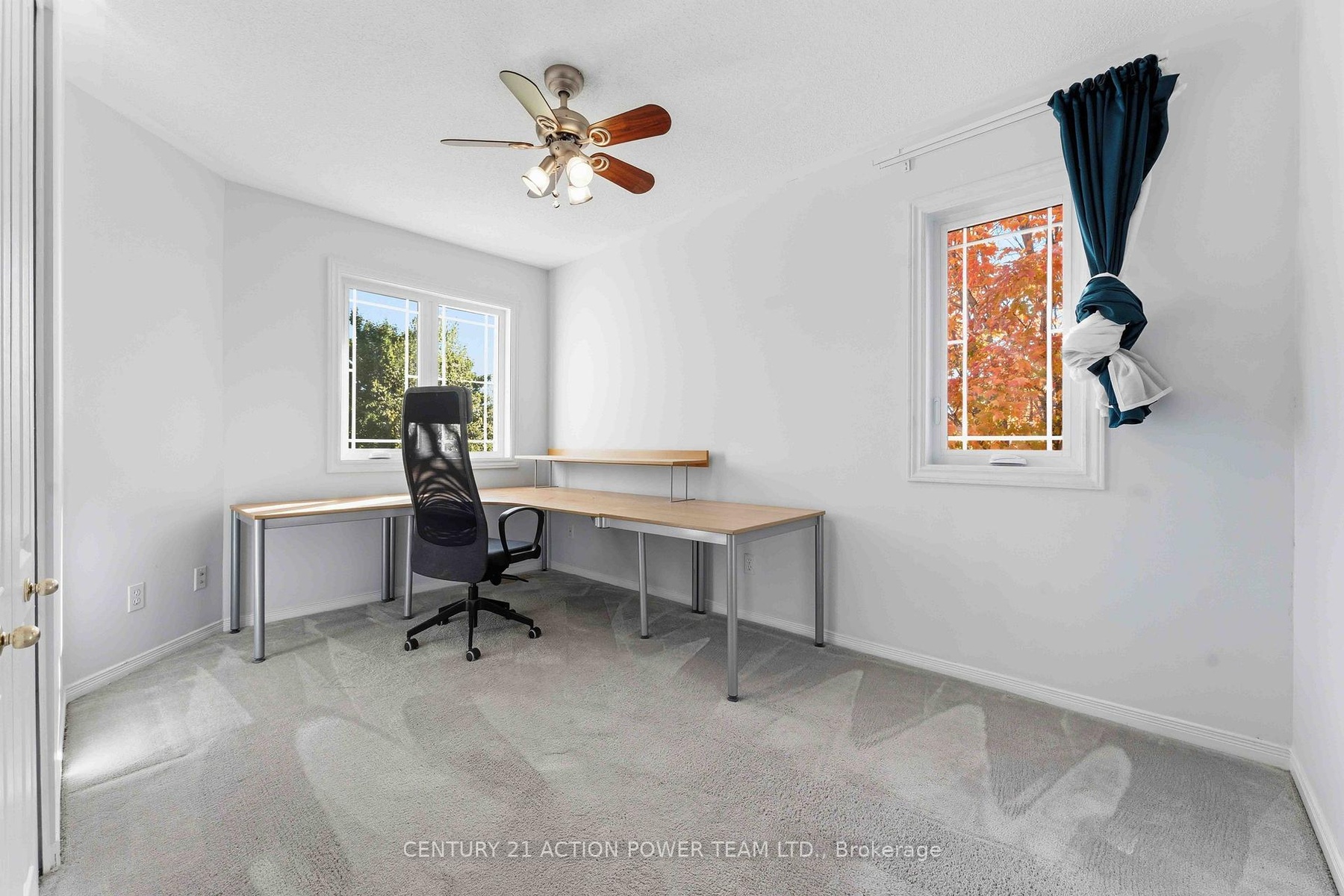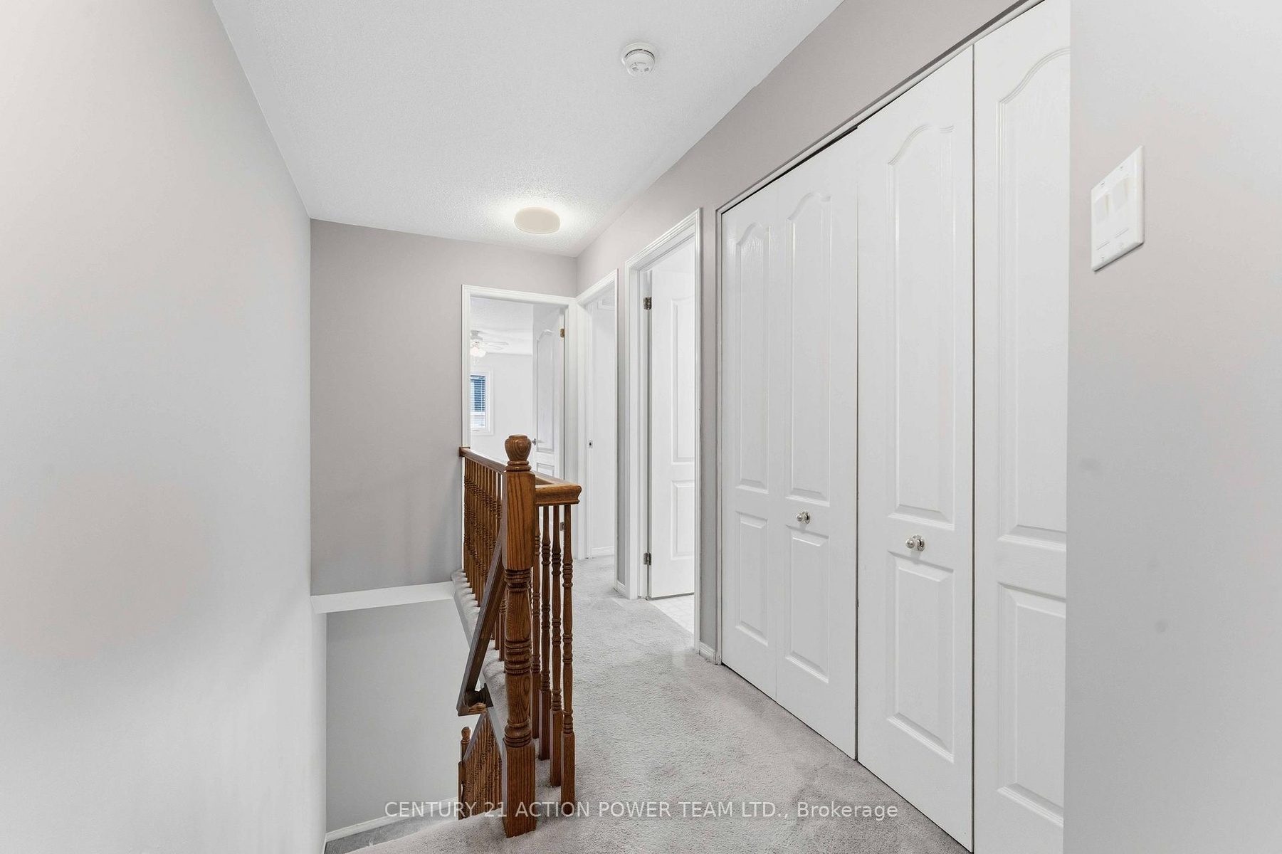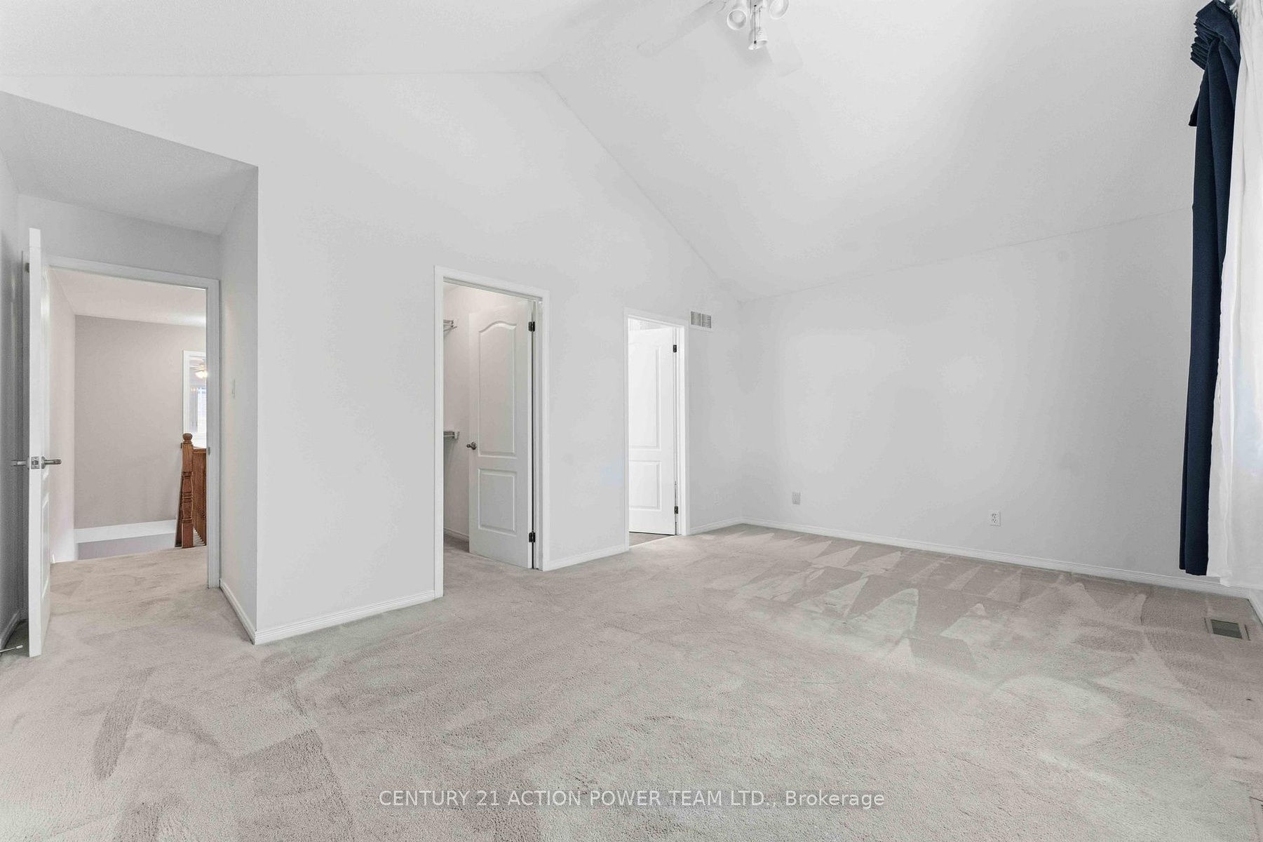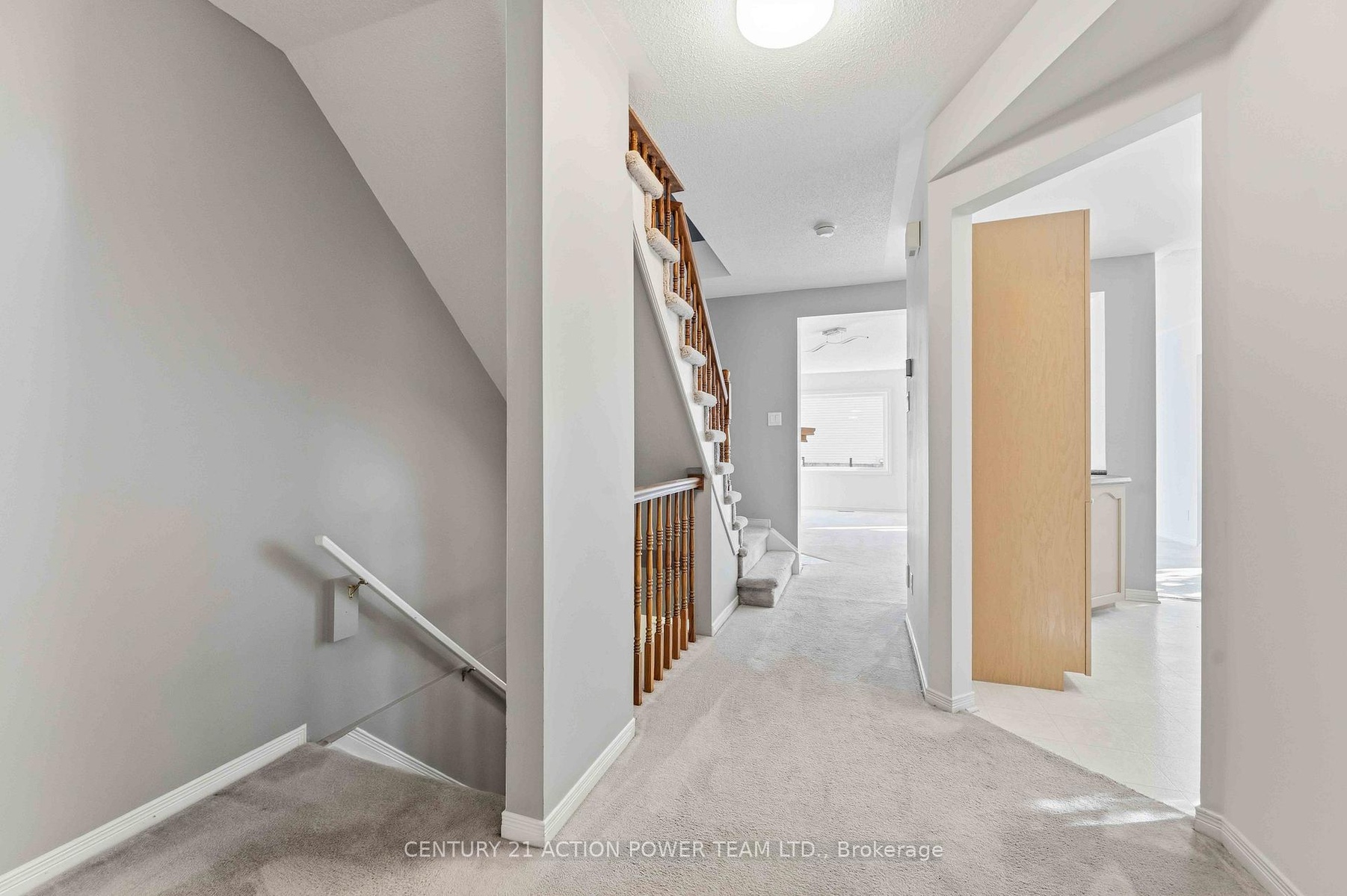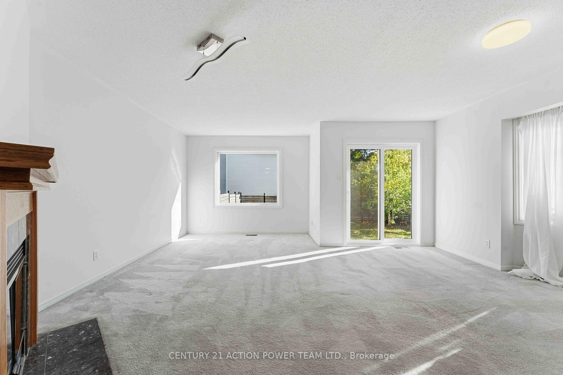 Welcome to 20 Woodford Way! Discover this bright and spacious 3-bedroom, 3-bathroom end-unit townhome-a true gem inside and out. Perfectly situated in the sought-after, family-friendly Longfields community of Barrhaven, this home offers comfort, style, and convenience. Step inside to an inviting open-concept main floor filled with natural light. The living room features a cozy wood-burning fireplace, while the dining area offers direct access to a private, oversized backyard-ideal for entertaining or relaxing outdoors. The spacious kitchen provides ample counter space and cabinetry, perfect for preparing family meals with ease. A graceful curved staircase leads to the second level, where you'll find a large primary suite complete with a 4-piece ensuite, walk-in closet, and cathedral ceiling. Two additional generously sized bedrooms and a full main bath complete the upper floor. The finished basement offers a comfortable family room, laundry area, and a dedicated workshop space. The attached garage provides secure parking and extra storage for bikes and outdoor gear. Located just minutes from everything Barrhaven has to offer-schools, parks, shopping, restaurants, recreation, and transit-this home combines convenience with community charm. Recent updates: New roof (2020)Freshly Painted (2025), New Kitchen Backsplash (2025) and new windows & doors (2022).Immediate occupancy available. Don't miss your chance to call this exceptional home yours-book your private showing today!