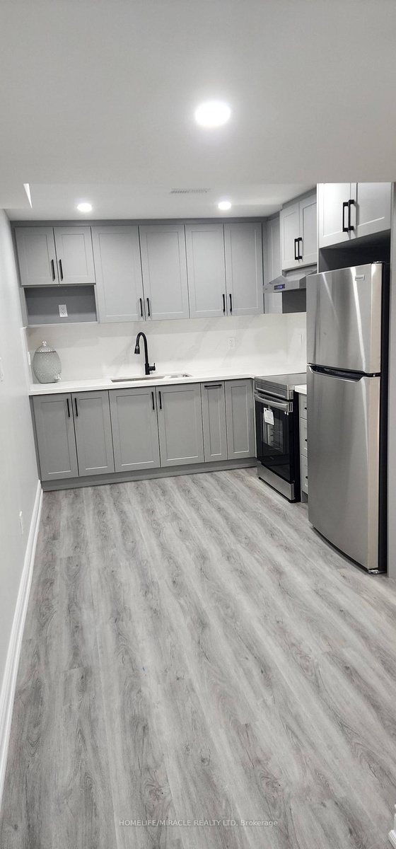 2 year old legal Private entrance, large luxurious bathroom, large shower enclousure. High end S/S appliances, range hood fan. Upgraded cabinetry & spice rack, storage in laundry closet