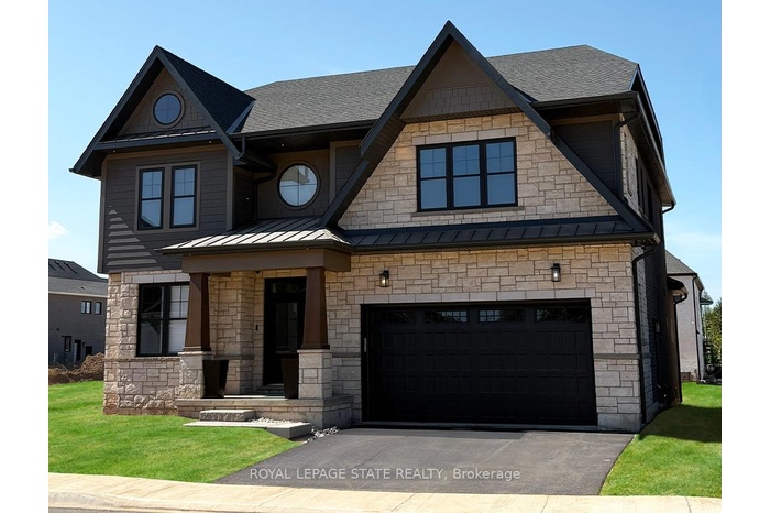 Welcome to The Residences at Watershore, an exceptional new lakeside community in Stoney Creek, just steps from the shores of Lake Ontario. This exclusive enclave blends refined design with modern comfort and includes over $80,000 in upgrades. The 3-car tandem garage Laurel features 4 bedrooms and 4 baths across 3,347 square feet of meticulously designed living space. The main floor offers soaring nine-foot ceilings and an open-concept layout that seamlessly connects the kitchen, dining, and living areas. A vaulted dinette ceiling and oversized windows fill the home with natural light, creating an airy and inviting atmosphere. The chef-inspired kitchen is the heart of the home, featuring an oversized island ideal for entertaining, a walk-in pantry complete with sink, cabinetry, and shelving, and direct access to the mudroom for added convenience. A den located at the front of the home provides a versatile space for productivity & relaxation. A covered back porch extends the living area outdoors for year-round enjoyment. Upstairs, the luxurious primary suite boasts a spacious walk-in closet and a spa-inspired ensuite with a custom glass shower, double sinks, and a deep soaker tub- a private retreat designed for relaxation. Additional bedrooms are generously sized, while a convenient 2nd floor laundry with sink and a shared bathroom ensure comfort and practicality for family and guests. Located near major highways, shopping, and everyday amenities, the Residences at Watershore offers a rare opportunity to embrace the tranquility of lakeside living without sacrificing convenience. With 65% of the community already sold and closings scheduled just one year from purchase, this home combined timeless style with modern luxury. Please note: photos are provided for illustrative purposes only and do not reflect the exact features of this home. The images shown are of similar Laurel floor plan and include upgrades and finishes that are not part of the standard purchase price.