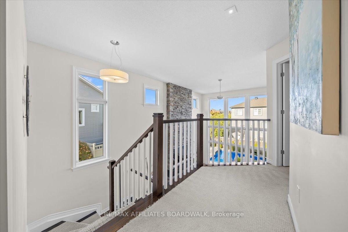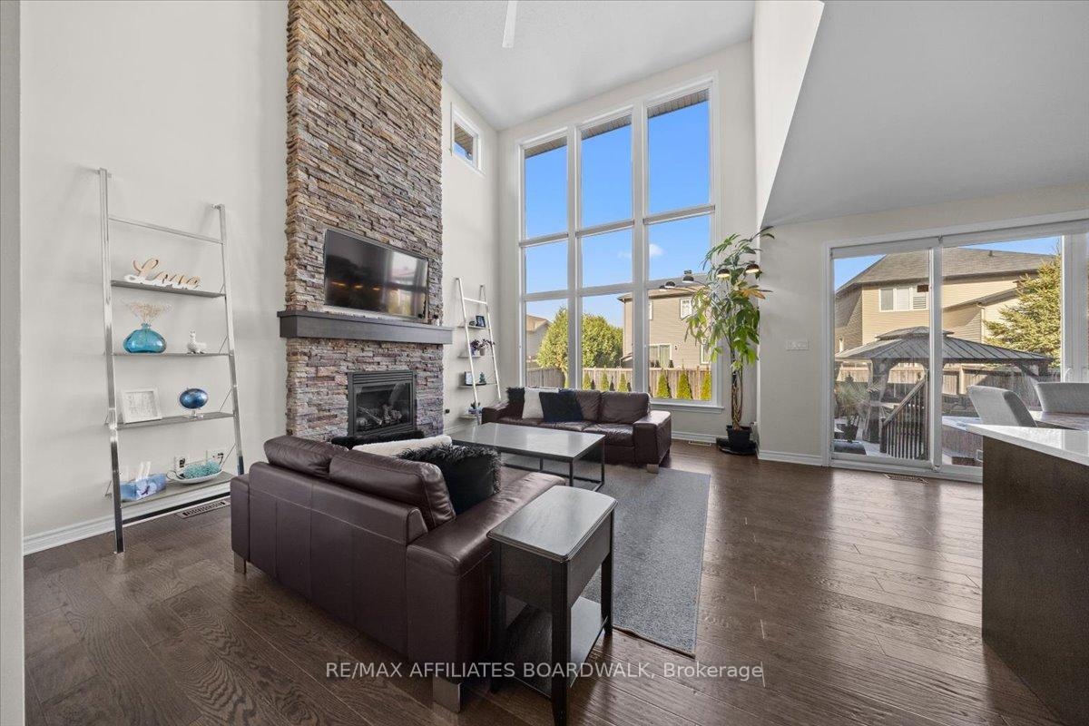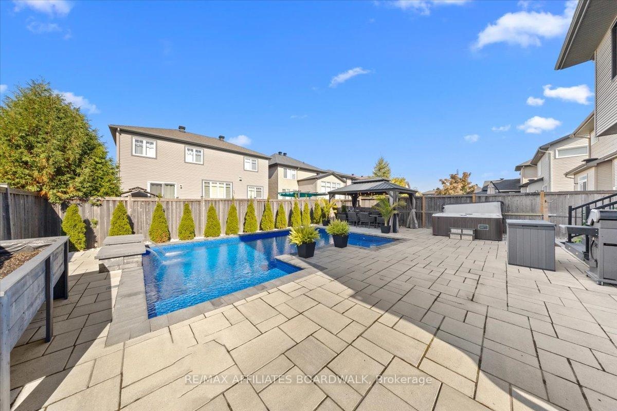 Welcome to your own private retreat in one of Kanata's most sought-after neighbourhoods! This Cardel-built, 4-bedroom home is loaded with upgrades and thoughtful design throughout. The main living area impresses with two-storey ceilings, a floor-to-ceiling stone fireplace, and abundant natural light. The chef's kitchen features custom cabinetry, a quartz island, and high-end appliances. Upstairs, discover four spacious bedrooms, second-level laundry, brand new carpeting, and a new hardwood staircase with runner. The primary bedroom enjoys its own private wing, while the custom built-in mudroom adds everyday functionality for the entire family. Outside, relax in a $120,000 backyard retreat complete with a saltwater pool, professional hardscaping, and access to a scenic walking path. The unfinished basement provides excellent storage and includes a bathroom rough-in for future potential. With in-ceiling speakers, custom lighting, and designer finishes throughout, there's nothing to do but move in and enjoy! *Fourth bedroom currently being used as family room.