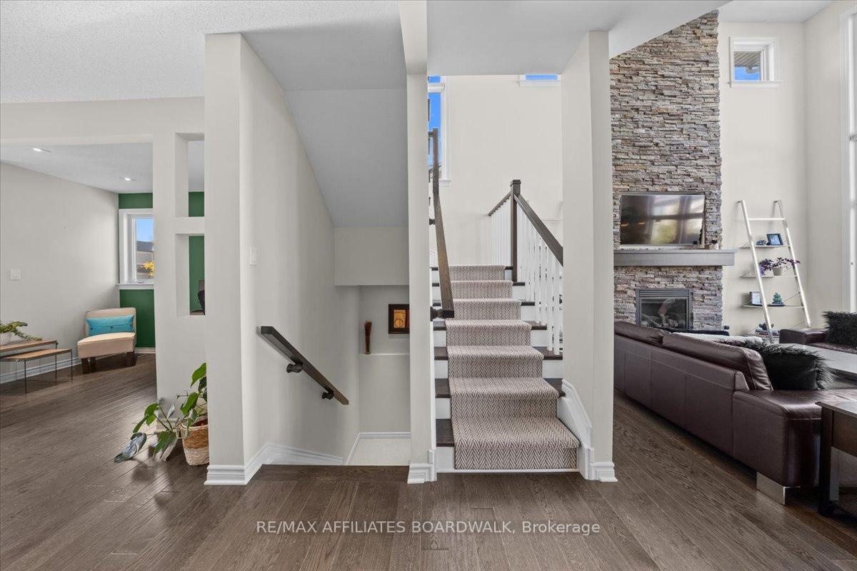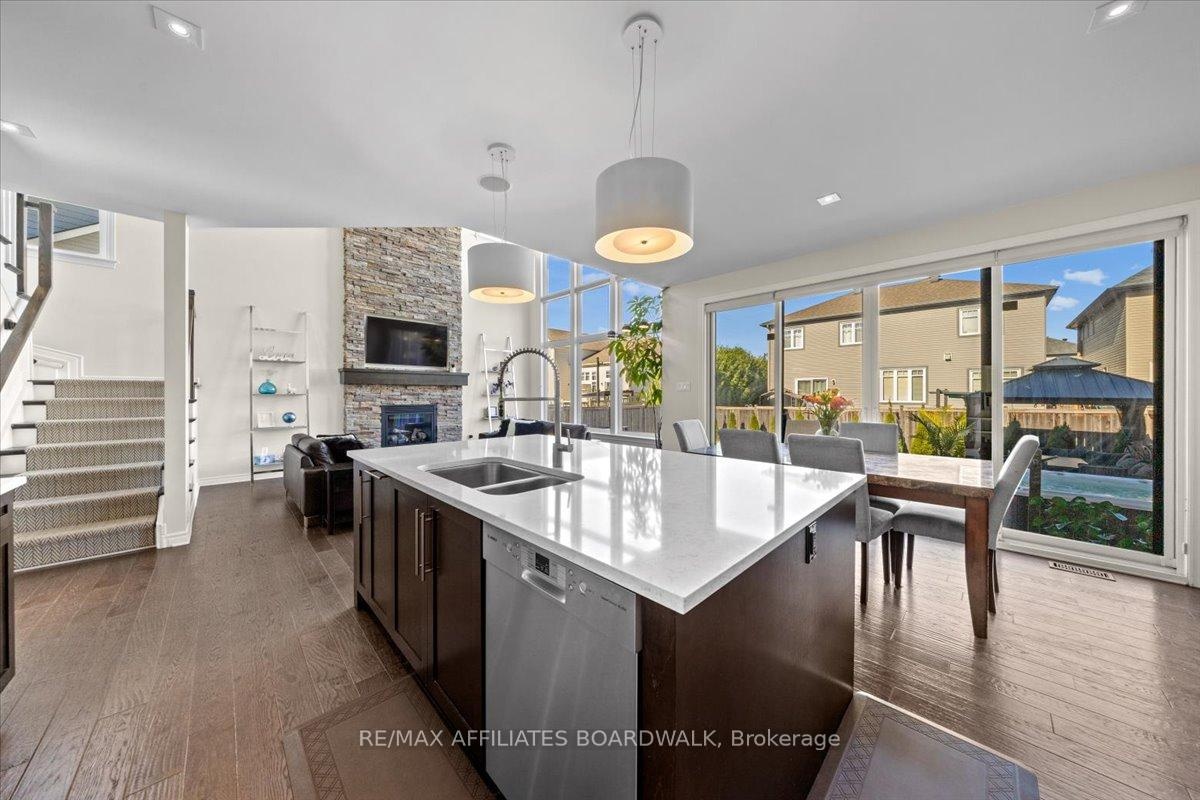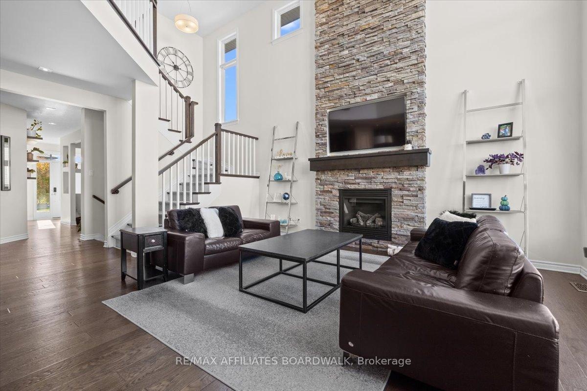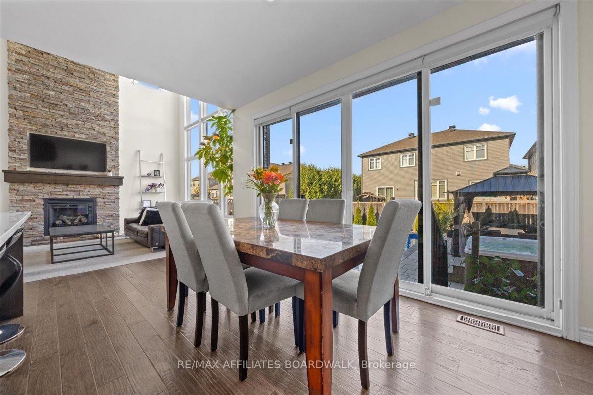 Welcome to your own private retreat in one of Kanata's most sought-after neighbourhoods! This Cardel-built, 4-bedroom home is loaded with upgrades and thoughtful design throughout. The main living area impresses with two-storey ceilings, a floor-to-ceiling stone fireplace, and abundant natural light. The chef's kitchen features custom cabinetry, a quartz island, and high-end appliances. Upstairs, discover four spacious bedrooms, second-level laundry, brand new carpeting, and a new hardwood staircase with runner. The primary bedroom enjoys its own private wing, while the custom built-in mudroom adds everyday functionality for the entire family. Outside, relax in a $120,000 backyard retreat complete with a saltwater pool, professional hardscaping, and access to a scenic walking path. The unfinished basement provides excellent storage and includes a bathroom rough-in for future potential. With in-ceiling speakers, custom lighting, and designer finishes throughout, there's nothing to do but move in and enjoy! *Fourth bedroom currently being used as family room.