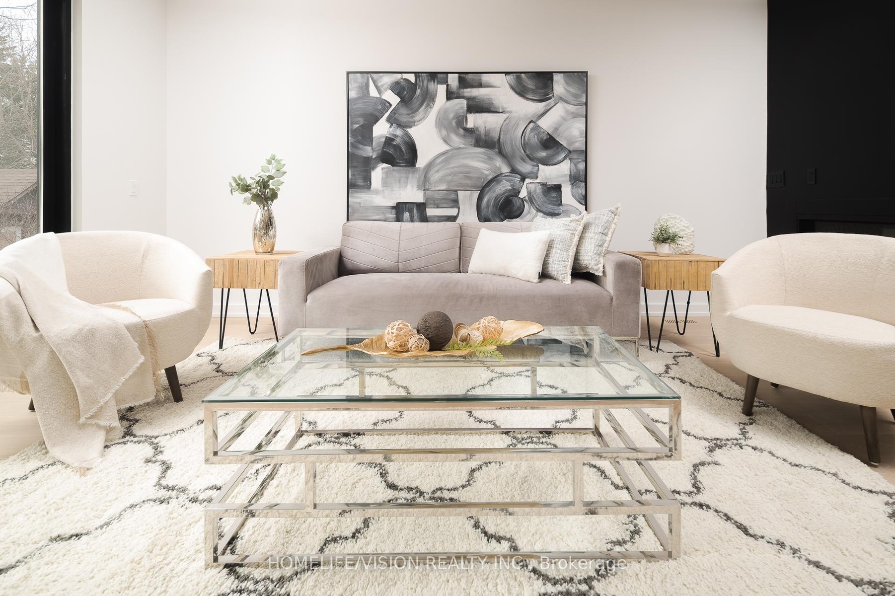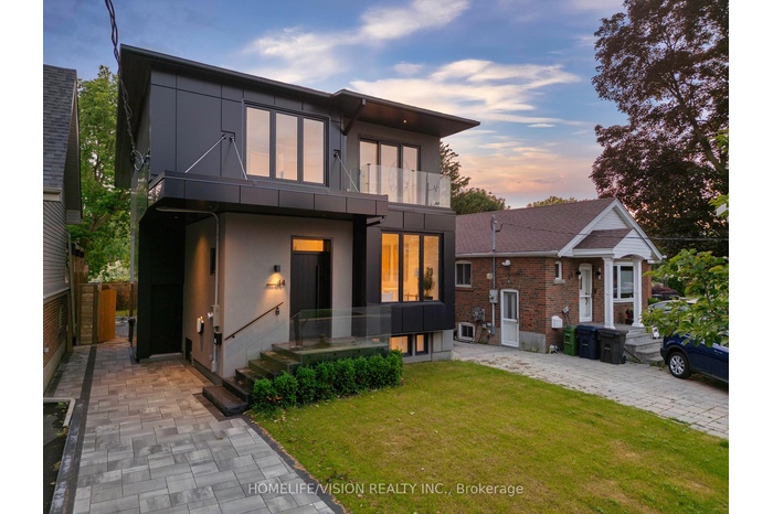 Nestled in the quiet pocket of the prestigious Parkview Hills, this spectacular two-story custom-built home offers 4+2 bedrooms, a den, and 5 bathrooms, blending contemporary style with family-friendly functionality. The open-concept main floor is flooded with natural light through expansive windows and multiple skylights in the two-story openings. A spacious front foyer with custom cabinetry and soaring ceilings welcomes you inside. The cozy family room and elegant dining room, with a fireplace at the center, create the perfect space for family gatherings. The gourmet kitchen is a chef's dream, featuring custom cabinetry, top-of-the-line appliances, and sleek quartz countertops with a waterfall edge. The spa-like master ensuite boasts a beautiful freestanding soaker tub, complemented by high-end plumbing fixtures for a true retreat experience. Two separate furnaces control the temperature for each floor independently, along with two Wi-Fi access points for seamless connectivity. The oversized recreation room in the basement, complete with a custom-built wet bar, offers ample space for entertainment. For added convenience, the laundry is located on the second floor with custom cabinetry, and there's an additional laundry space in the basement with all rough-ins. The ACM exterior Industrial grade paneling and custom Arista solid wood door complement the home beautifully. The house is situated in a vibrant community with excellent TTC access, shopping, and many local events, this home ensures both comfort and convenience. Quality craftsmanship shines throughout, with thoughtful touches like an EV car charger and a completely separate entrance to the basement, making this home a true gem.