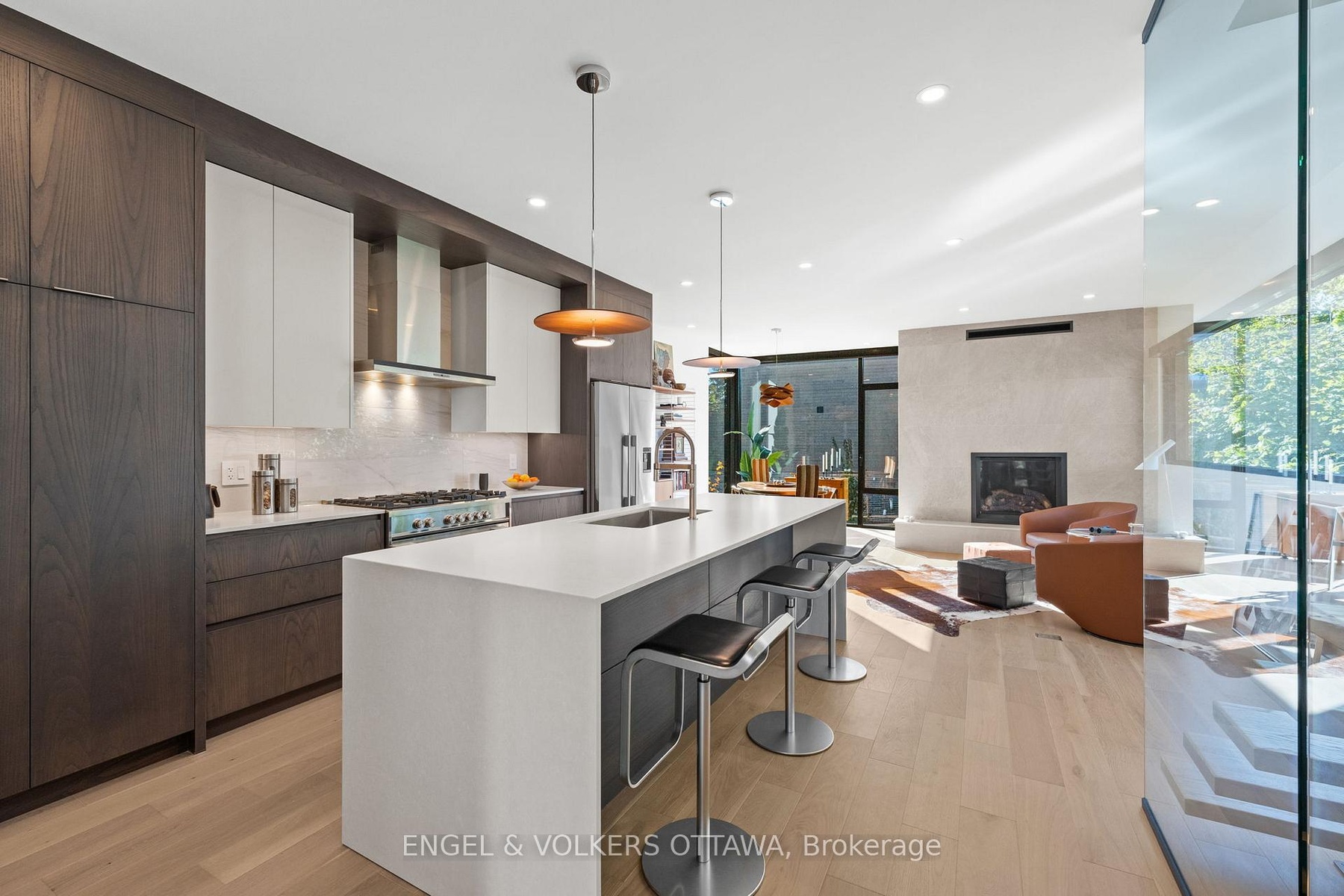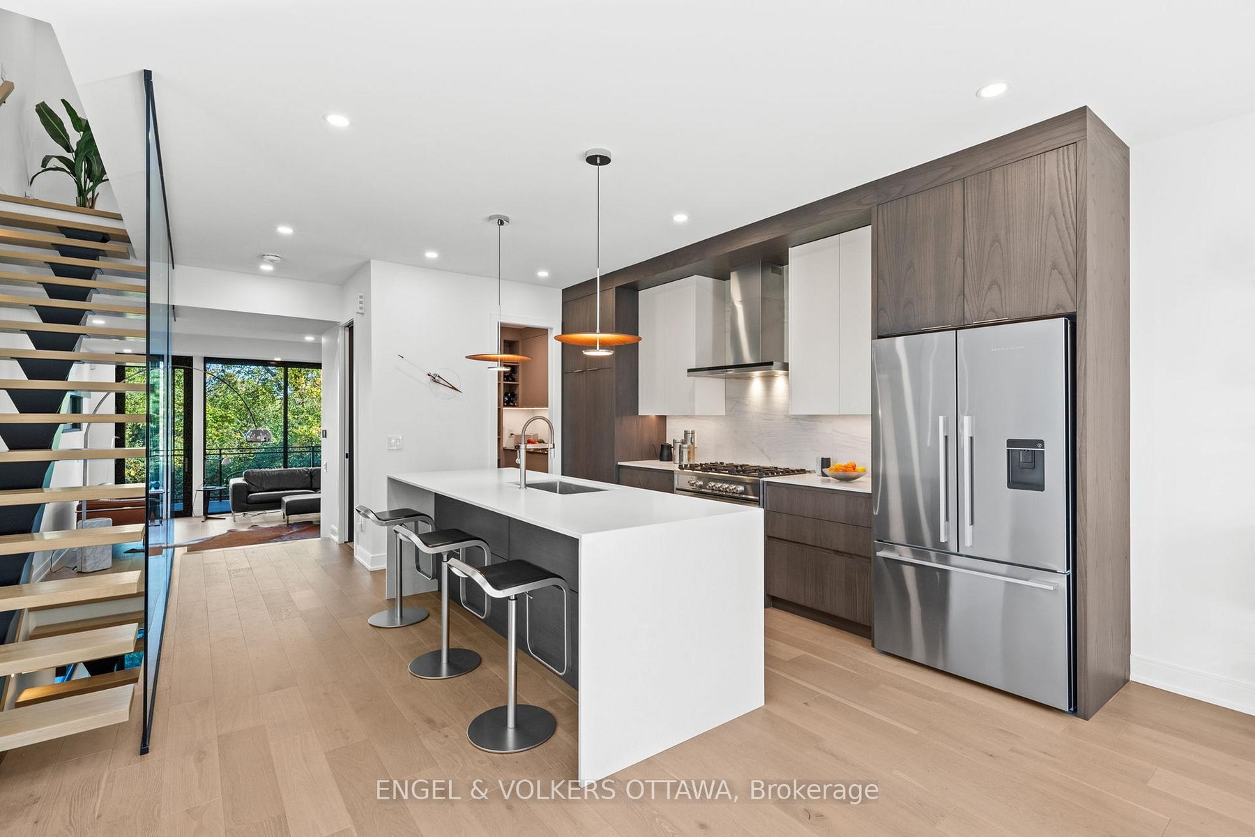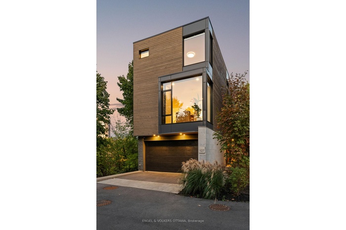 Welcome to 127 Peridot Private, an exceptional residence in an award-winning enclave of just seven luxury homes by Gemstone Developments. This exclusive community blends refined design, natural surroundings, and a prime central location. As the only home in the community featuring an extended private driveway and back deck, as well as incredible additional custom windows, this home offers rare, unobstructed views of the Experimental Farm and the Rideau Canal. Winner of a GOHBA award for interior design, this 3-bedroom, 4-bathroom home showcases over 2,400 sq. ft. of thoughtfully curated living space. The main level is perfect for stylish entertaining, featuring a chef's kitchen with a waterfall quartz island, custom cabinetry, gas range, walk-in pantry with sink, and designer finishes. Two elegant living areas with upgraded gas fireplaces and a sleek powder room complete the space. Amazing views from every room and private balcony off the back living room. Upstairs, the serene primary suite impresses with expansive windows and a spa-inspired ensuite with a soaker tub, expanded two-person glass shower, double vanity, and bidet. Two additional bedrooms, a full bath, and a laundry closet with a sink and custom cabinetry provide flexibility for guests or a home office. Ground level features a spacious foyer and a versatile area currently used as a stylish home gym, easily adaptable as a family room or office, along with a convenient powder room. Upgraded stringer staircase with open glass panels adds a striking architectural element while preserving the homes airy, contemporary feel. An extended lower back deck provides direct access to a beautifully landscaped backyard - offering a peaceful retreat surrounded by nature. Just moments from Little Italy, Dows Lake, and the Civic Hospital, with walking and bike paths at your doorstep. Visit the website for full list of upgrades.