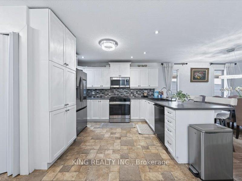 Welcome to this beautifully maintained semi-detached raised bungalow in one of Brantford's most desirable neighborhoods, offering 1,969 sq. ft. of finished living space. The home features a renovated kitchen (2024) with new appliances and sliding doors leading to a private covered deck, perfect for morning coffee, barbecues, or relaxing outdoors in any weather. The main level includes a bright living room, dining area, two bedrooms, and a full bathroom, while the finished basement adds two additional bedrooms, an office, a laundry area, and another full bathroom. With parking for three vehicles (two in the driveway and one in the garage) and the option to relocate the laundry back to the main level, this property offers the perfect combination of space, style, and modern convenience-ideal for families or investors alike.
