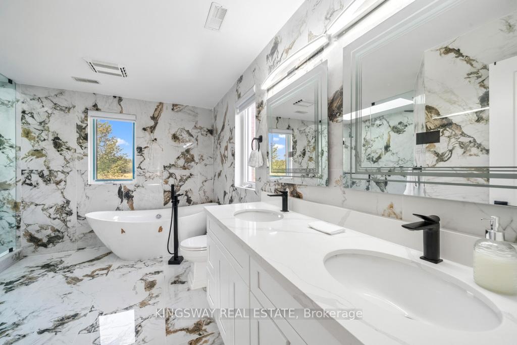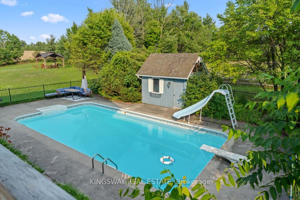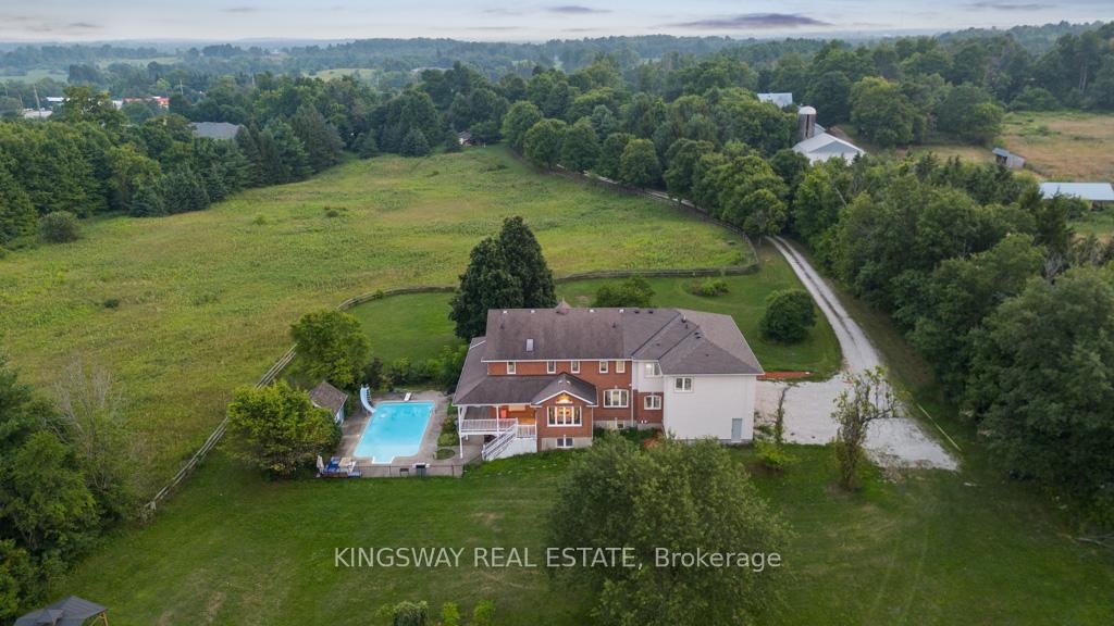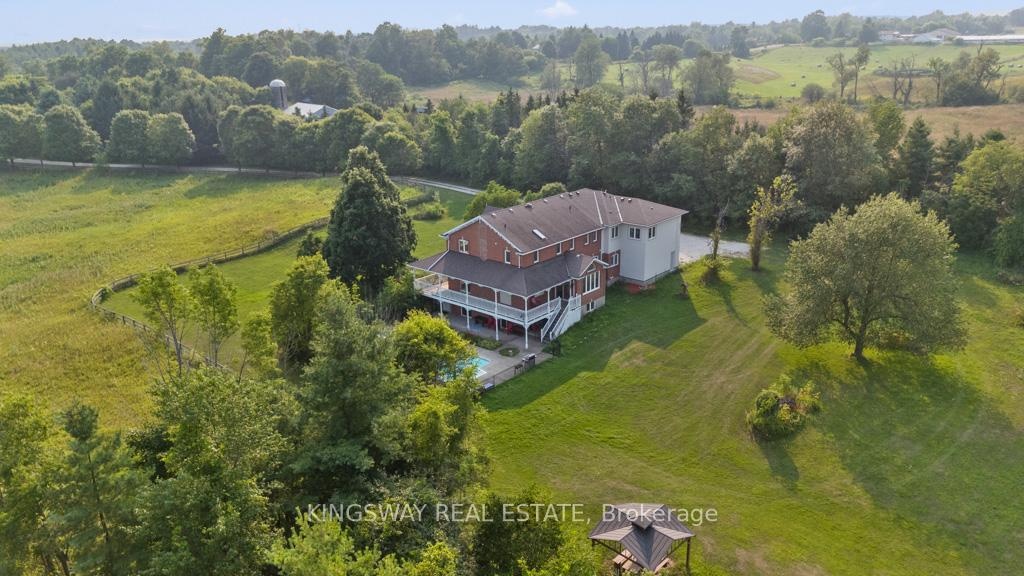 Welcome to 14141 Dublin Line, Where Luxury Meets Lifestyle of 6119 sq ft of total living space on Over 9 Acres of Pure Country Perfection. If you're searching for tranquility, privacy, natural beauty, and luxury wrapped into one incredible estate this is the one! Set on over 9.4 pristine acres of manicured countryside, this show stopping estate offers glorious panoramic views, rolling hills, and a sense of peace thats nearly impossible to find all just 5 minutes to the GO Train, 15 to the 401/407, and a short drive into town. It's your private retreat, perfectly connected. Fully gutted in 2023 and renovated top to bottom by 2024 with no expense spared. This home is a masterclass in design and comfort. From rich hardwood floors to porcelain tile, granite countertops, and luxury finishes throughout everything feels intentional, elevated, and built to impress. From the moment you enter, youre greeted with jaw-dropping views of the rolling landscape and an open layout thats made for hosting. The main level features a crisp white chefs kitchen, oversized living, dining, and family rooms, and a floor plan that balances elegance with everyday functionality. Upstairs? Youll find 5 spacious bedrooms, including TWO primary suites one with three walk-in closets and a spa-like 5-piece ensuite, the other overlooking the pool and hot tub with its own luxe bath. Four out of the five bedrooms have their own ensuites perfect for large families or guests. The walkout basement is bright, open, and built for entertaining. Think: movie nights, game days, slumber parties this space does it all and more. Outside, the amenities continue:Set back from a tree-lined road for maximum privacy, Fully fenced yard with plenty of space to roam, 18x36 in-ground pool + hot tub, Horse paddock, Detached shed, And views that belong on a postcard. This isn't just a home its a lifestyle upgrade!!. Whether you're raising a family, hosting unforgettable events, or just craving space and serenity.
