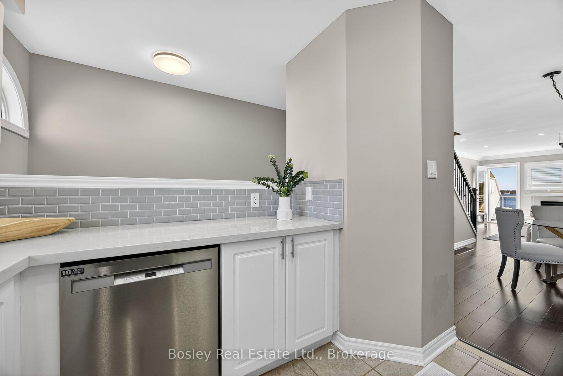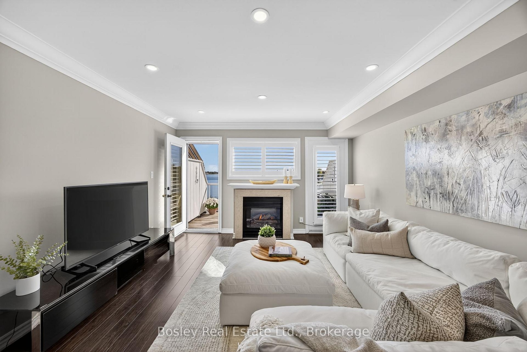 Every day feels like a vacation in this exceptional three-storey waterfront townhome. Whether you're seeking a weekend escape, a seasonal retreat, or your next full-time residence, this home embodies relaxed luxury and four-season living at its best. Set in the coveted Cranberry Surf community surrounded on three sides by Georgian Bay this residence offers breathtaking, direct water views toward Collingwood's iconic harbour and skyline. Watch sunrises from your private deck, unwind on the covered patio just steps from the water, or launch your SUP or kayak right outside your door. The saltwater pool and nearby trails make every season extraordinary. Inside, the home is filled with natural light and stunning bay views from every level. The open-concept main floor features new hardwood throughout, a cozy gas fireplace, and a modern kitchen with (2022) premium stainless steel appliances including a double-door fridge with ice and water dispenser, glass-top convection range, and dishwasher perfect for entertaining. The lower level offers heated floors, a full bath, and a walkout to a large private covered deck (2023)ideal for year-round enjoyment. Upstairs, the primary retreat features a king-sized layout with soaring ceilings and unobstructed water views, complemented by spacious guest bedrooms and bathrooms for family and friends. Additional highlights include a private drive, oversized garage, direct fibre internet, powered main-deck awning, and plenty of guest parking. This tranquil cul-de-sac enclave offers privacy, open green spaces, and conservation areas all around blending seamlessly with nature. Moments to ski hills, golf, and downtown Collingwood. From kayaking at sunrise to snowshoeing after a fresh snowfall, this home offers endless ways to live happily by the bay. This isn't just a home its a lifestyle.