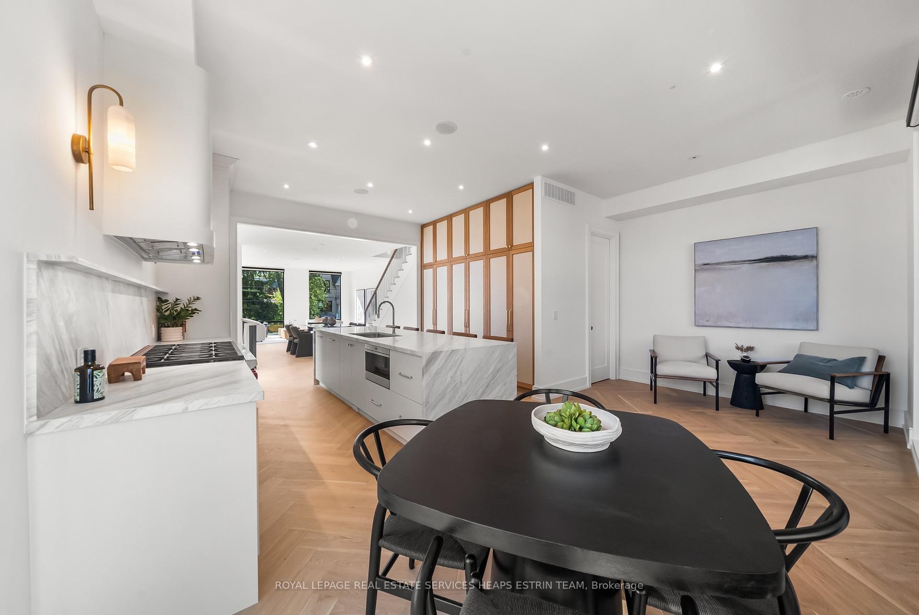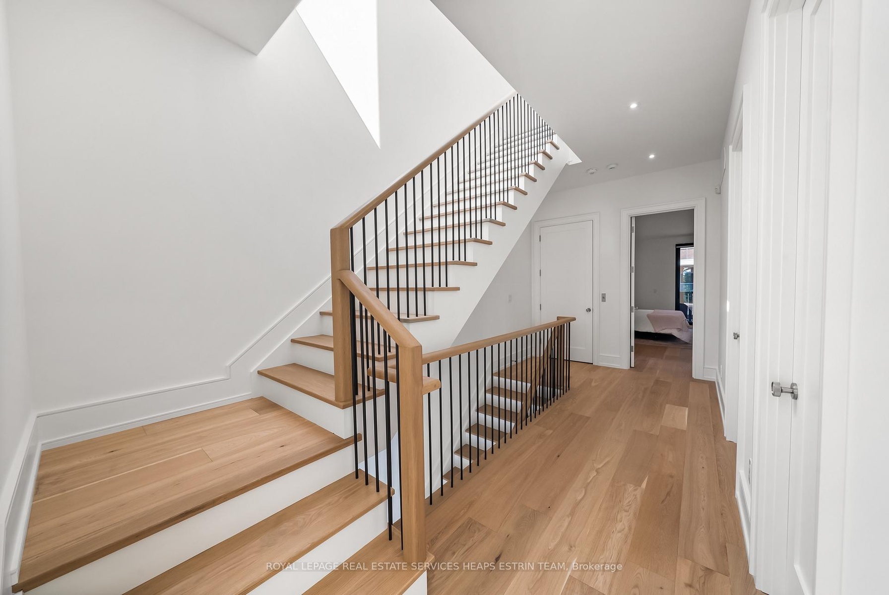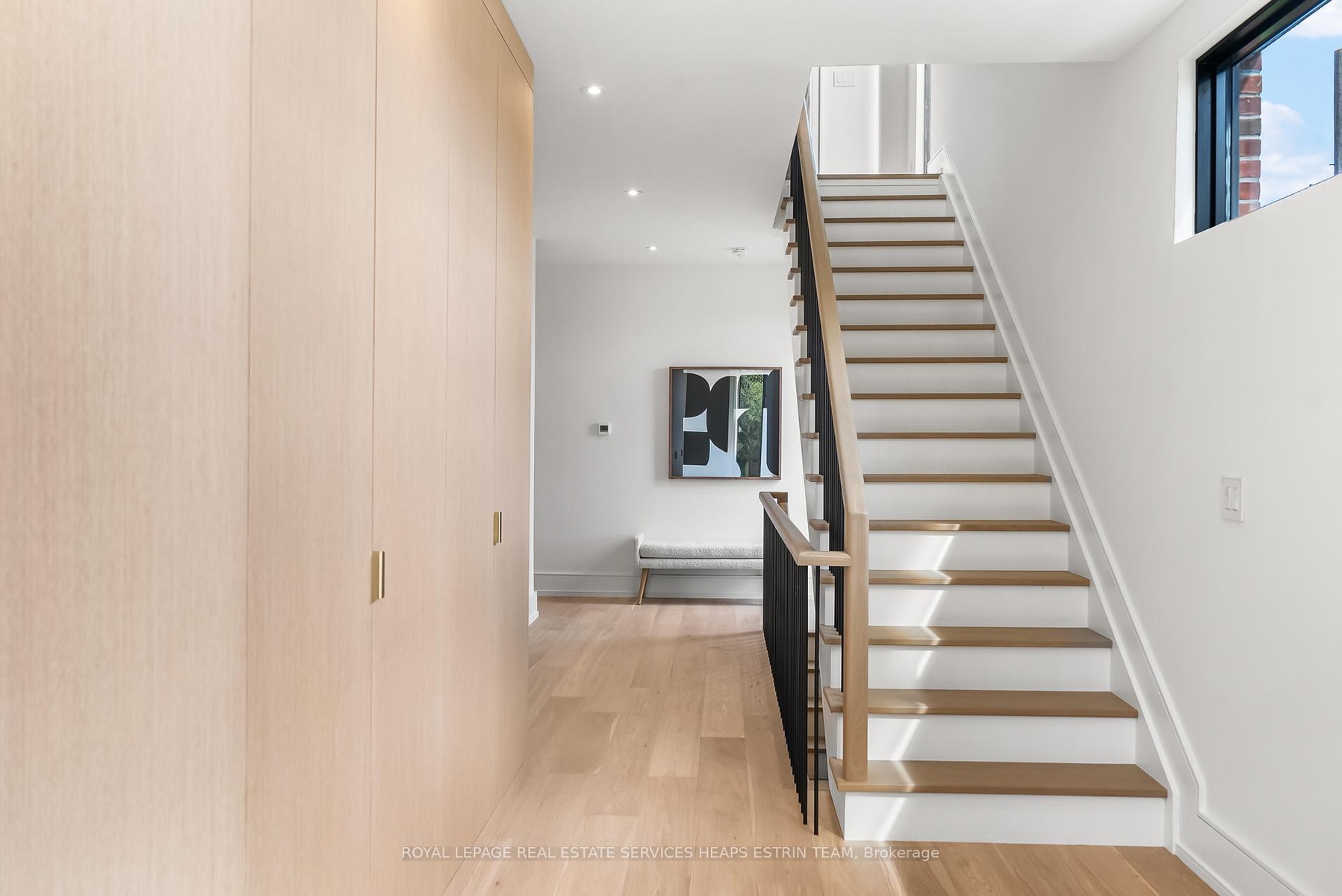 Welcome to 38 Evergreen Gardens, part of an exclusive collection of townhomes in the tree-lined community of Bennington Heights. Designed by an award-winning team, this three-story residence offers 3,495 square feet of thoughtfully planned living space, plus a finished lower level with a spacious recreation room - all connected by private elevator access. Highlights include soaring ceilings, oversized windows, and a custom chef's kitchen with top-tier appliances, abundant storage, and a walk-out to the balcony. High-end curated finishes are found throughout: white oak hardwood floors, natural stone countertops, custom millwork, a living room fireplace, and elegantly appointed bathrooms. An expansive rooftop deck with built-in pergola and garden beds offers sweeping views and an ideal setting for entertaining or quiet retreat. Additional features include a landscaped backyard terrace, built-in garage, and private drive with parking for two cars. Perfectly positioned for those who appreciate a balance of nature and convenience, this home is steps to tranquil trails, surrounding parks, and ravines, while also providing quick access to the Bayview Extension, DVP, and midtown. Nearby amenities include Evergreen Brickworks, Bennington Heights Tennis Club, Evergreen Gardens Park, and the shops and restaurants along Bayview Avenue and Mount Pleasant Road. Excellent proximity to both public and private schools further enhances the appeal. A rare opportunity for every stage of life: downsizers, professional couples, or families seeking sophisticated, modern living in one of Toronto's most desirable neighbourhoods.
