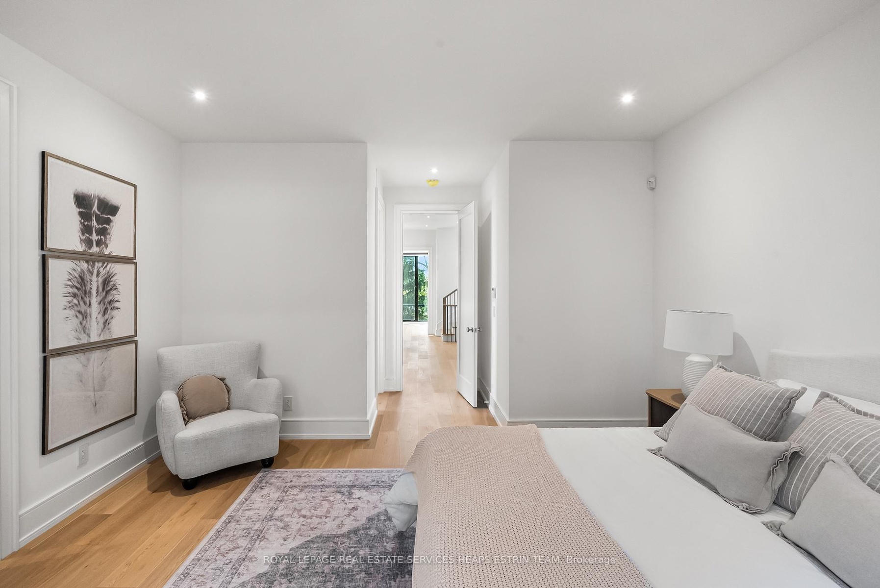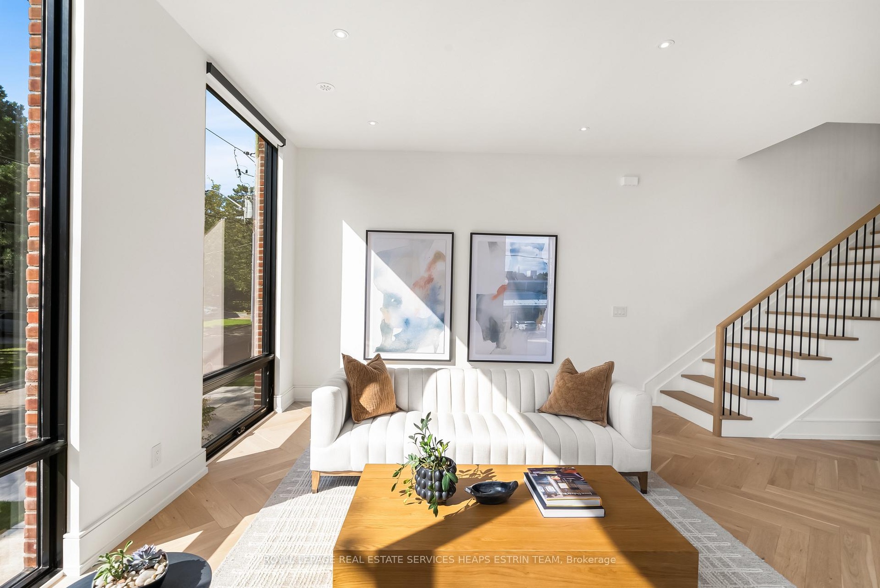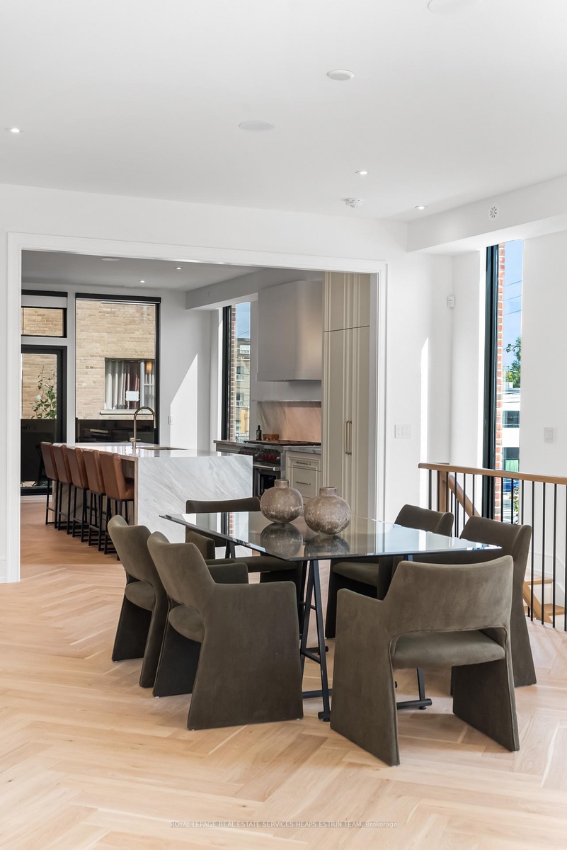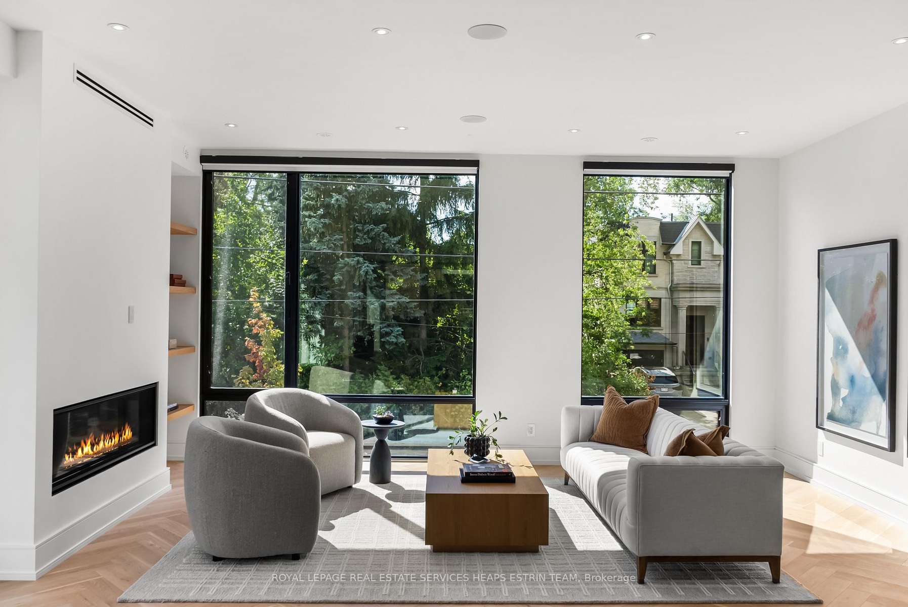 Welcome to 38 Evergreen Gardens, part of an exclusive collection of townhomes in the tree-lined community of Bennington Heights. Designed by an award-winning team, this three-story residence offers 3,495 square feet of thoughtfully planned living space, plus a finished lower level with a spacious recreation room - all connected by private elevator access. Highlights include soaring ceilings, oversized windows, and a custom chef's kitchen with top-tier appliances, abundant storage, and a walk-out to the balcony. High-end curated finishes are found throughout: white oak hardwood floors, natural stone countertops, custom millwork, a living room fireplace, and elegantly appointed bathrooms. An expansive rooftop deck with built-in pergola and garden beds offers sweeping views and an ideal setting for entertaining or quiet retreat. Additional features include a landscaped backyard terrace, built-in garage, and private drive with parking for two cars. Perfectly positioned for those who appreciate a balance of nature and convenience, this home is steps to tranquil trails, surrounding parks, and ravines, while also providing quick access to the Bayview Extension, DVP, and midtown. Nearby amenities include Evergreen Brickworks, Bennington Heights Tennis Club, Evergreen Gardens Park, and the shops and restaurants along Bayview Avenue and Mount Pleasant Road. Excellent proximity to both public and private schools further enhances the appeal. A rare opportunity for every stage of life: downsizers, professional couples, or families seeking sophisticated, modern living in one of Toronto's most desirable neighbourhoods.
