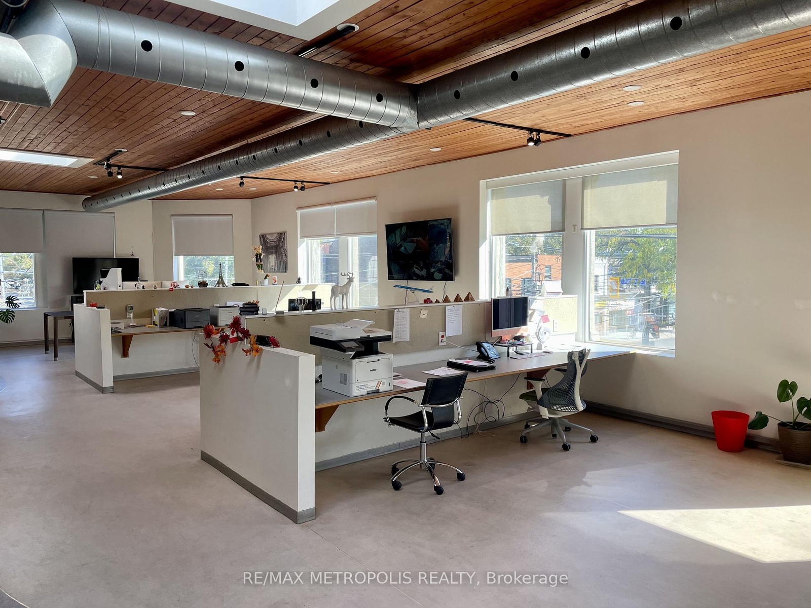 Prime Commercial Corner Building. Great Exposure on Broadview & Dundas Street. TTC Street Cars At The Doorstep. 2nd Floor, Very Bright And Open Space Ideal For Professional Office Use. 1827 sq ft, Has A Kitchen And 2 washrooms. Parking is Free on Hamilton Street. Utilities Are Separately Metered.