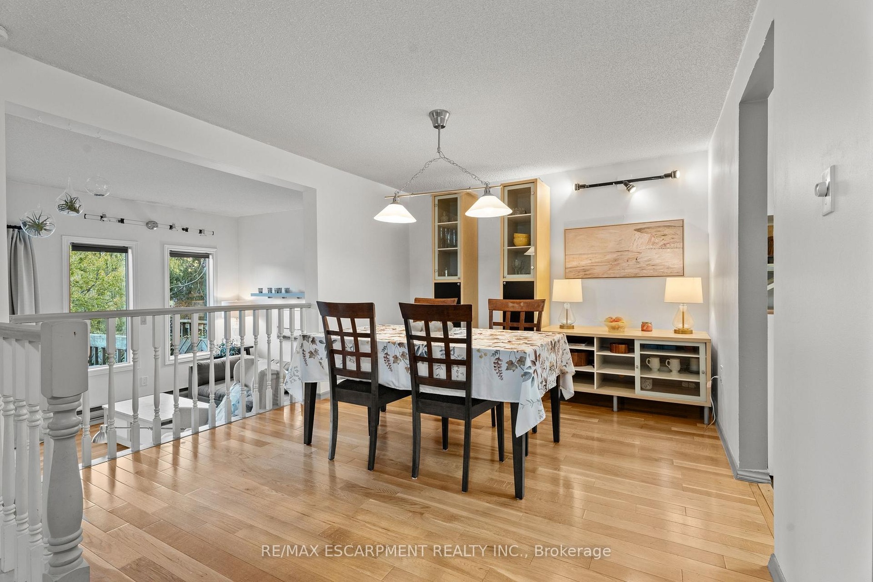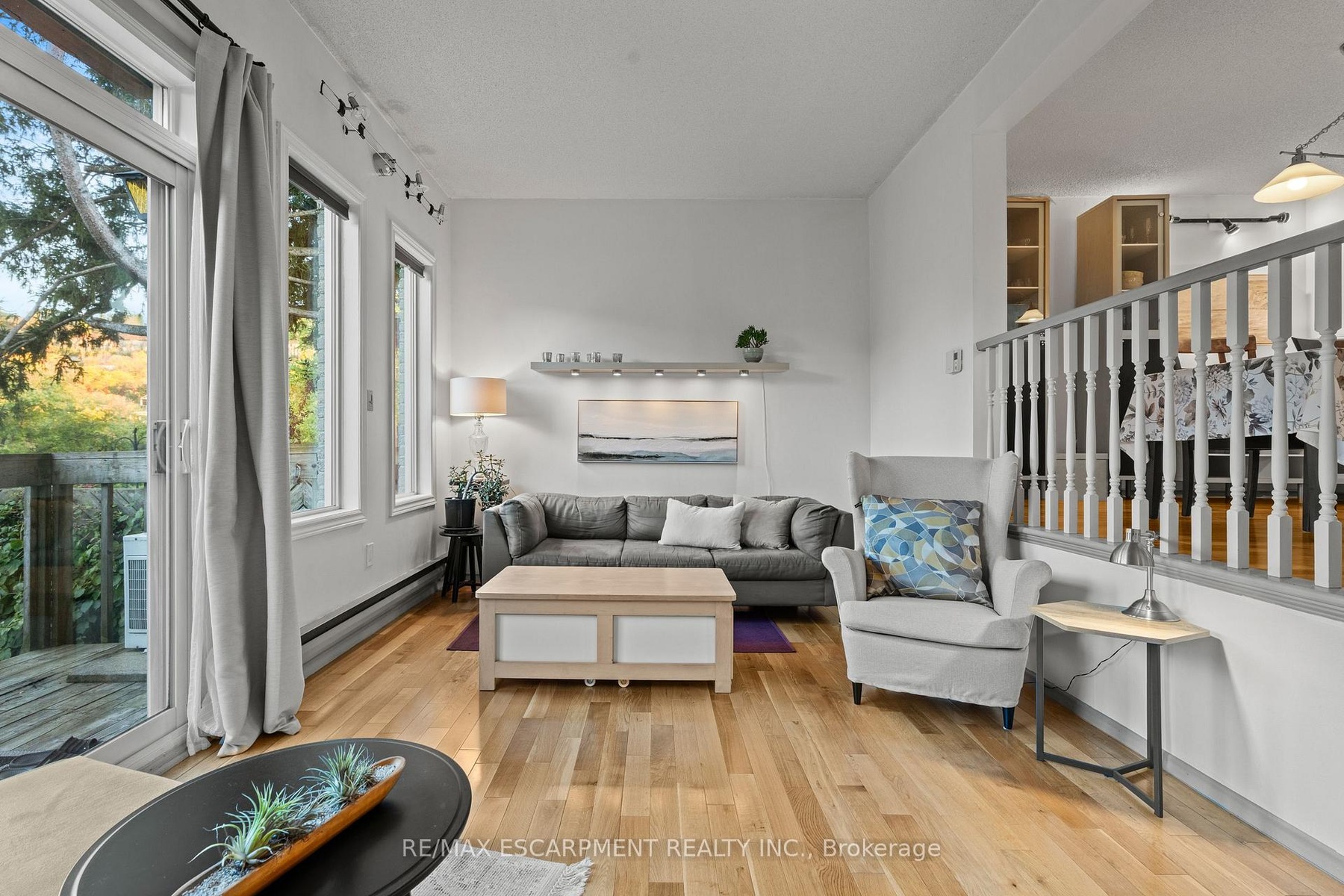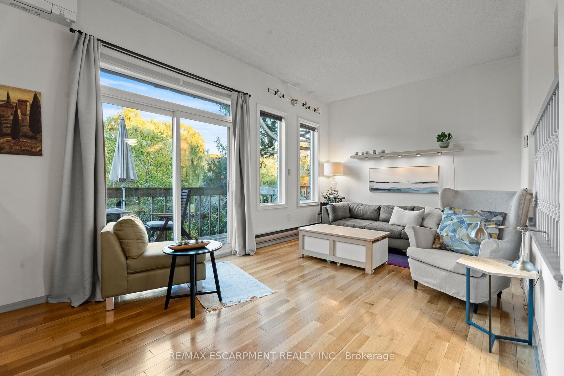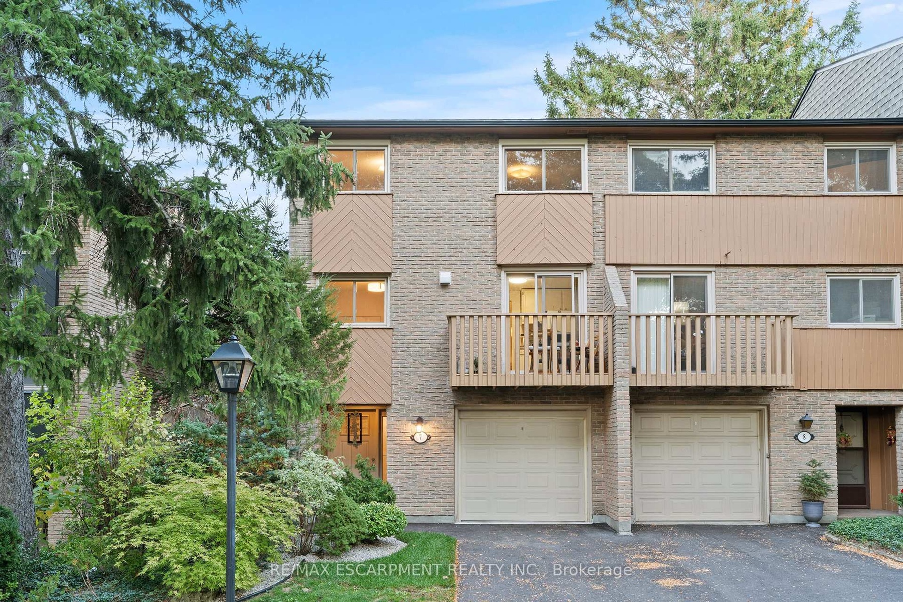 Beautiful end unit townhouse located in the highly desirable Ainslie Wood West Hamilton area. Just minutes from Tiffany Falls, scenic trails, parks, restaurants, everyday amenities, public transit, Highway 403, Lincoln M. Alexander Pkwy, and McMaster University/Hospital. Nestled among mature trees, this home offers a walk-out from the living room to a private backyard with stunning escarpment views. The entertaining area offers a bright light filled living room with sliding patio door with transom window, and a spacious dining area just off the kitchen. There is also a main floor den that's perfect as a kids' playroom, additional bedroom/guest room, or home office-flexible space to suit your family's needs. The upper level offers a 4-piece bathroom with an updated vanity & 3 spacious bedrooms (primary with oversized closet and all with custom closet doors). Hardwood floors on the upper levels. Finished basement complete with a convenient powder room-ideal for extra living space, a play area, or a family rec room. Equipped with an efficient Mitsubishi ductless heat pump split unit system for both heating and air conditioning, ensuring year-round comfort. 100 Amp Breaker. Parking for two vehicles with both a garage and driveway space.