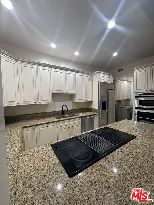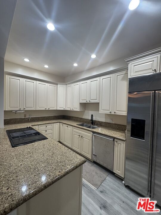 Located in the heart of the Hollywood Hills, this 3 bedroom, 3.5 bathroom home spans three levels of thoughtfully designed living space. The living room exudes glamour and allure with its beautiful high ceilings, striking fireplace, and sliding glass doors that lead to the front balcony. Enjoy the hillside air and scenic surroundings with great views of the city. Spacious kitchen, paired with a large dining area with French doors, is perfect for hosting intimate gatherings or casual meals. 2 large suites serve as the bedrooms on the second floor, complete with walk-in closets and extra room ideal to create an office, play area or even another bedroom, offering both comfort and functionality. On the top floor, a bright and light filled bedroom with a snug fireplace opens to a private balcony through sliding glass doors, with spectacular views of the city and the canyon. Beautifully large bathrooms throughout. The home also features a rear patio area, ideal for outdoor entertaining or children's play. Attached direct access 2-car garage. Conveniently located within a minute's drive to trendy shopping, dining, and entertainment options along the iconic Sunset Strip. This Hollywood Hills gem is ready for you. Schedule a private showing today and experience the magic for yourself!