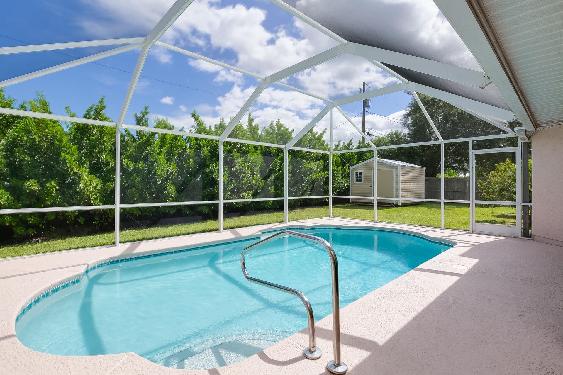 This immaculately maintained 3 bedroom, 2 bathroom home is situated high on a corner lot. Upon entering into the foyer, you'll find a designated dining area, a family room, a breakfast nook, and a spacious kitchen that was remodeled in 2024 to be fitted with new cabinets, appliances, and granite countertops that overlook the living room and fireplace. The main bedroom features a walk-in closet and an enseuite bathroom. French doors off the main bedroom and the living area lead into a screened-in porch with a private pool, which was resurfaced just this year. A shed, also purchased this year, sits inside the fenced-in backyard. The home includes a 2017 roof, a 2022 water heater, a generator, and is located just off Becker Road and the Turnpike.