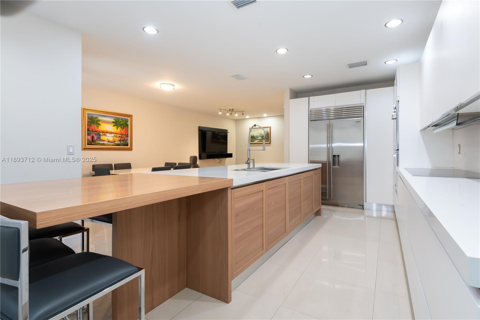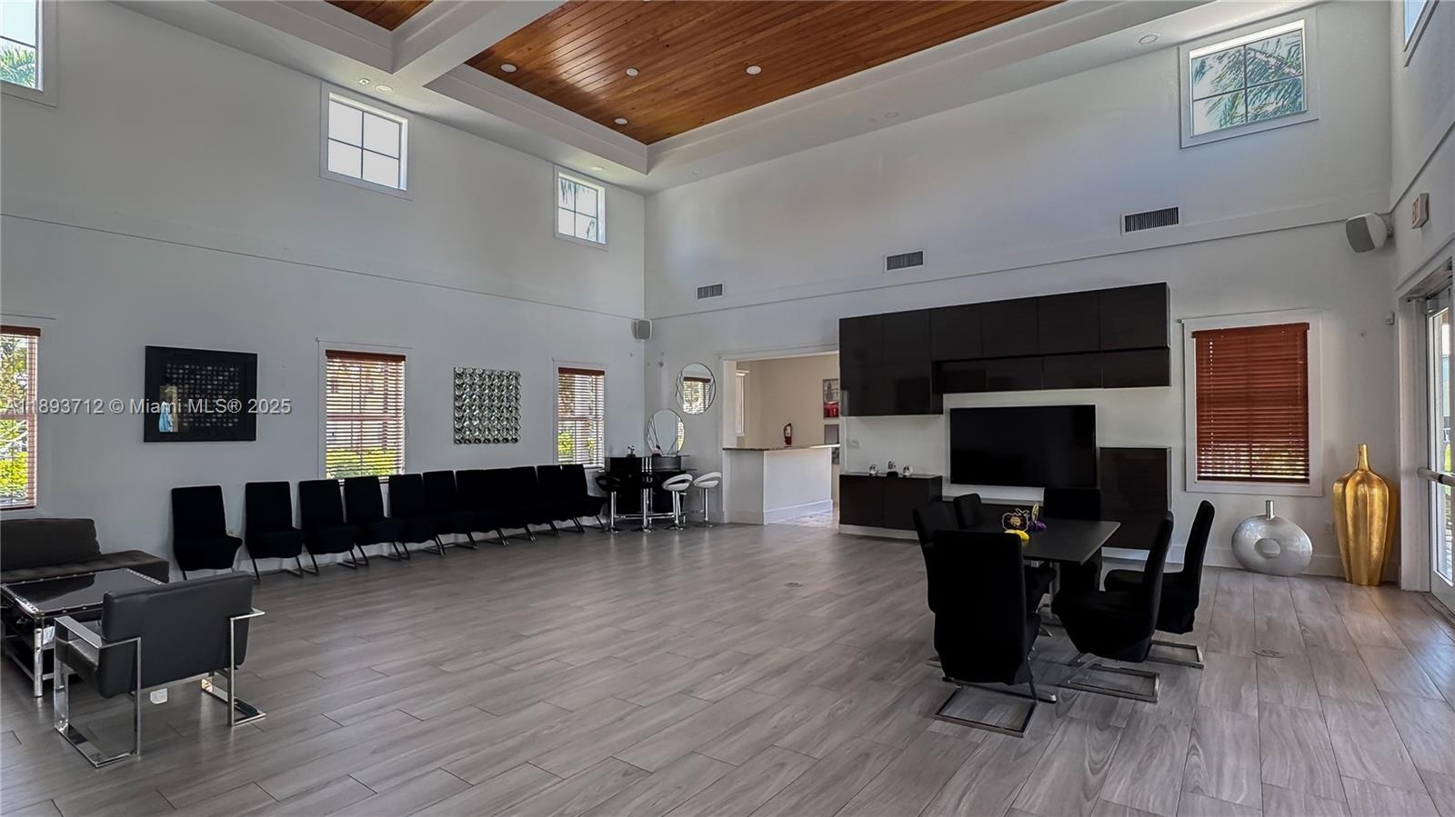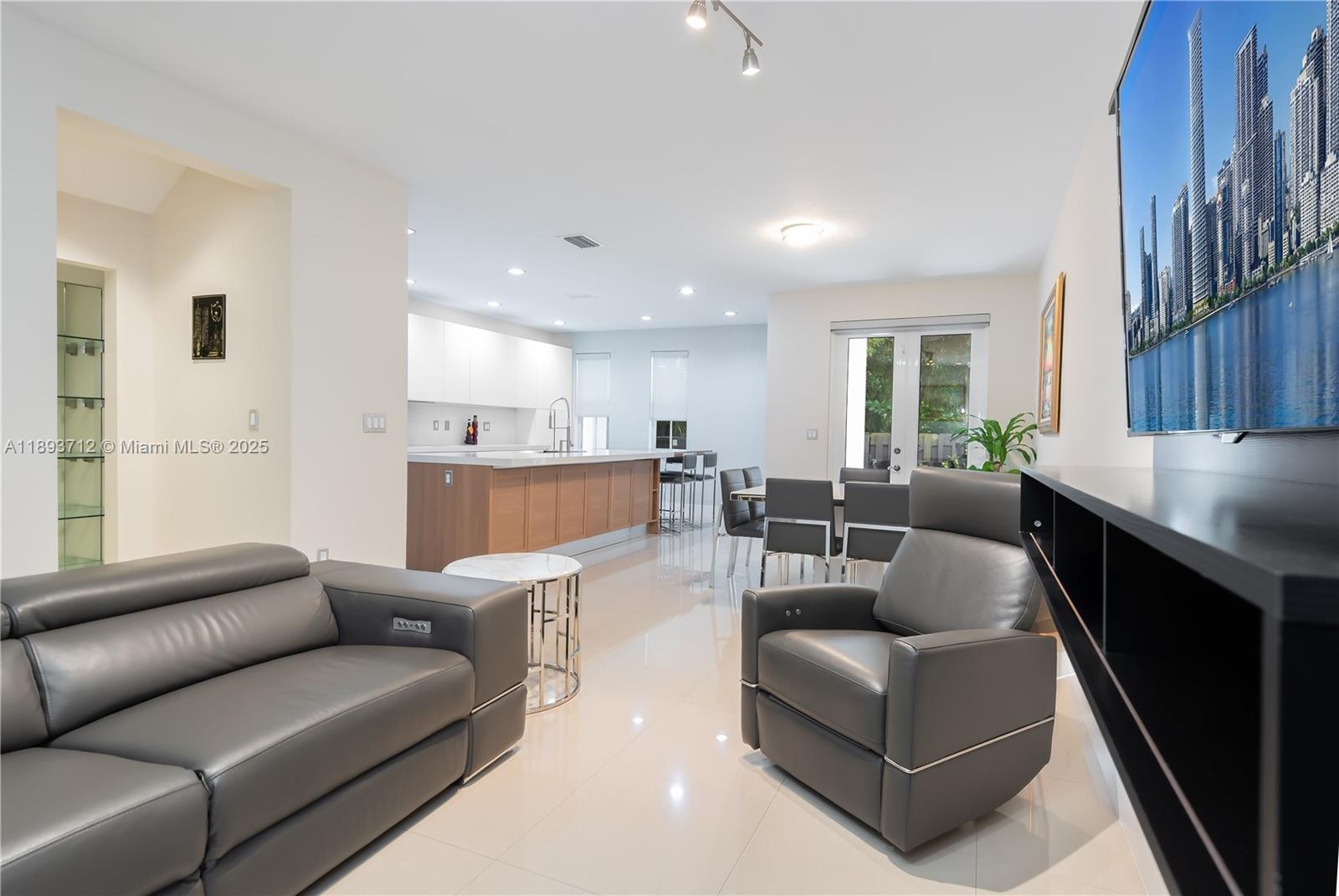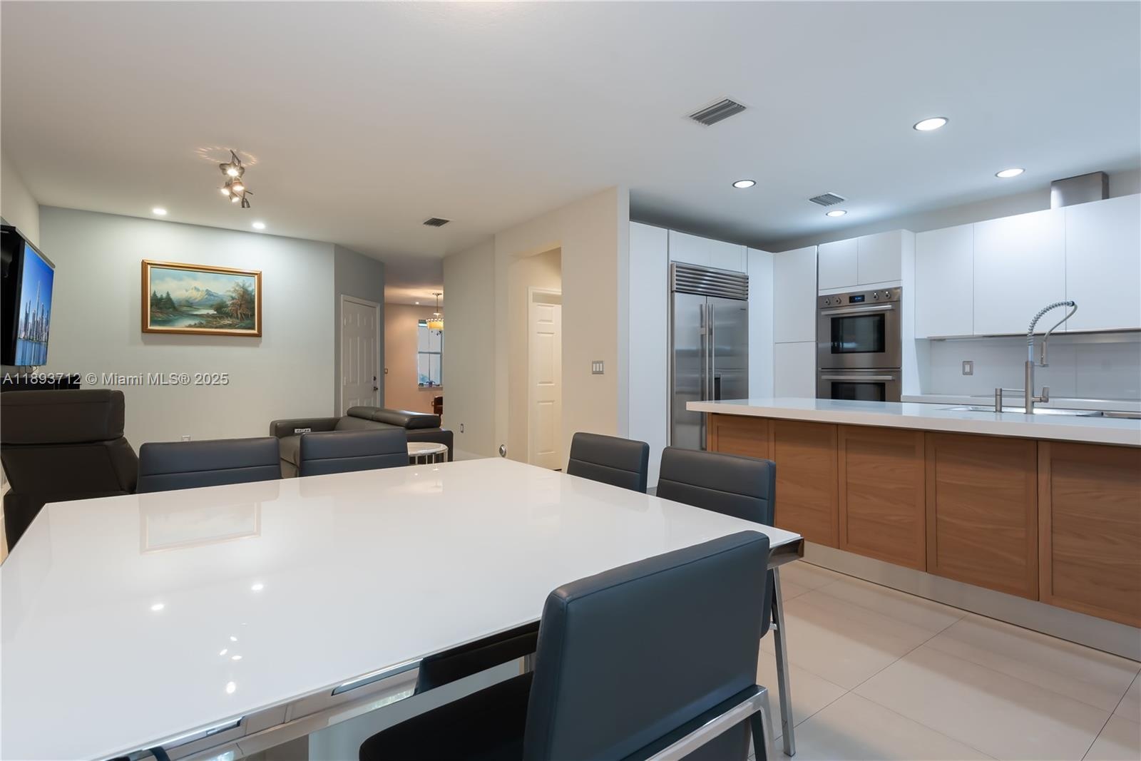 Completely renovated townhome in The Reserve at Doral East. Contemporary design with modern finishes and 10-ft ceilings; tile flooring on the first floor and original hardwood upstairs. Italian-style kitchen with quartz countertop and wood island extension, high-end appliances including double ovens and wine cooler. Impact windows and doors throughout, Trane A/C, LED lighting, electric blinds, and private balconies. Community includes a clubhouse with pool, gym, Wi-Fi room, playground, and 24-hour gated surveillance. Three assigned parking spaces plus guest parking.