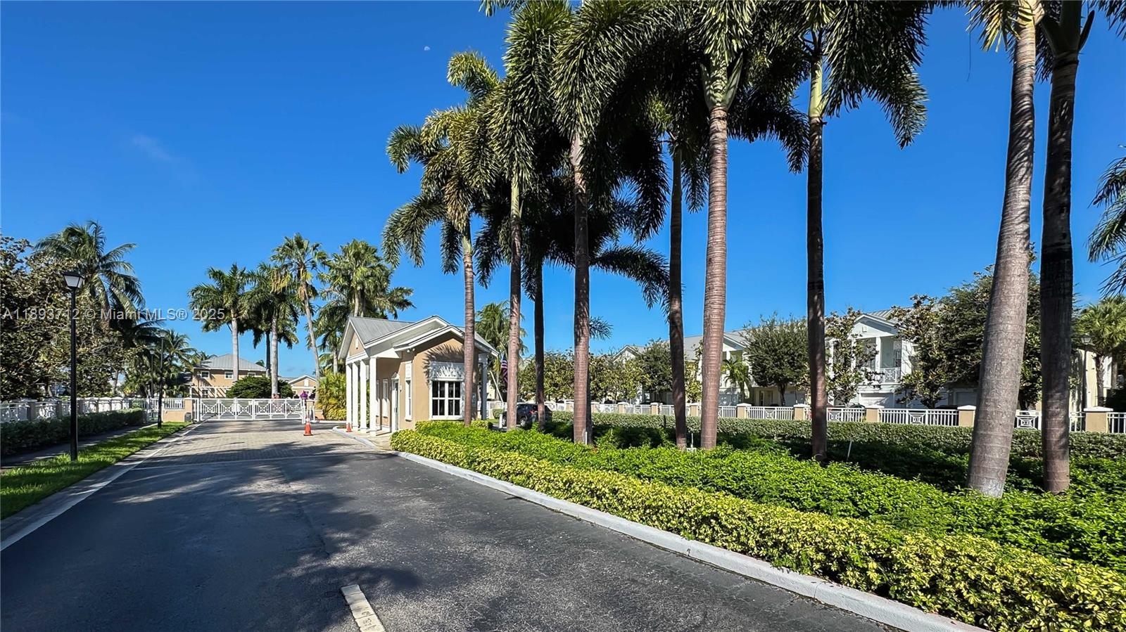 - Gate Entrance for residents and visitors surrounded by beautiful palm trees