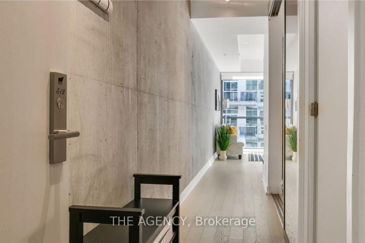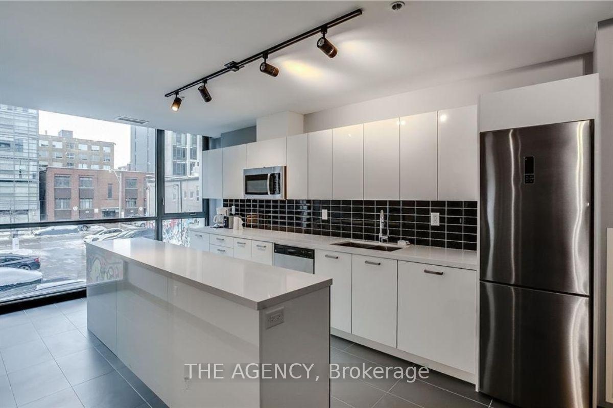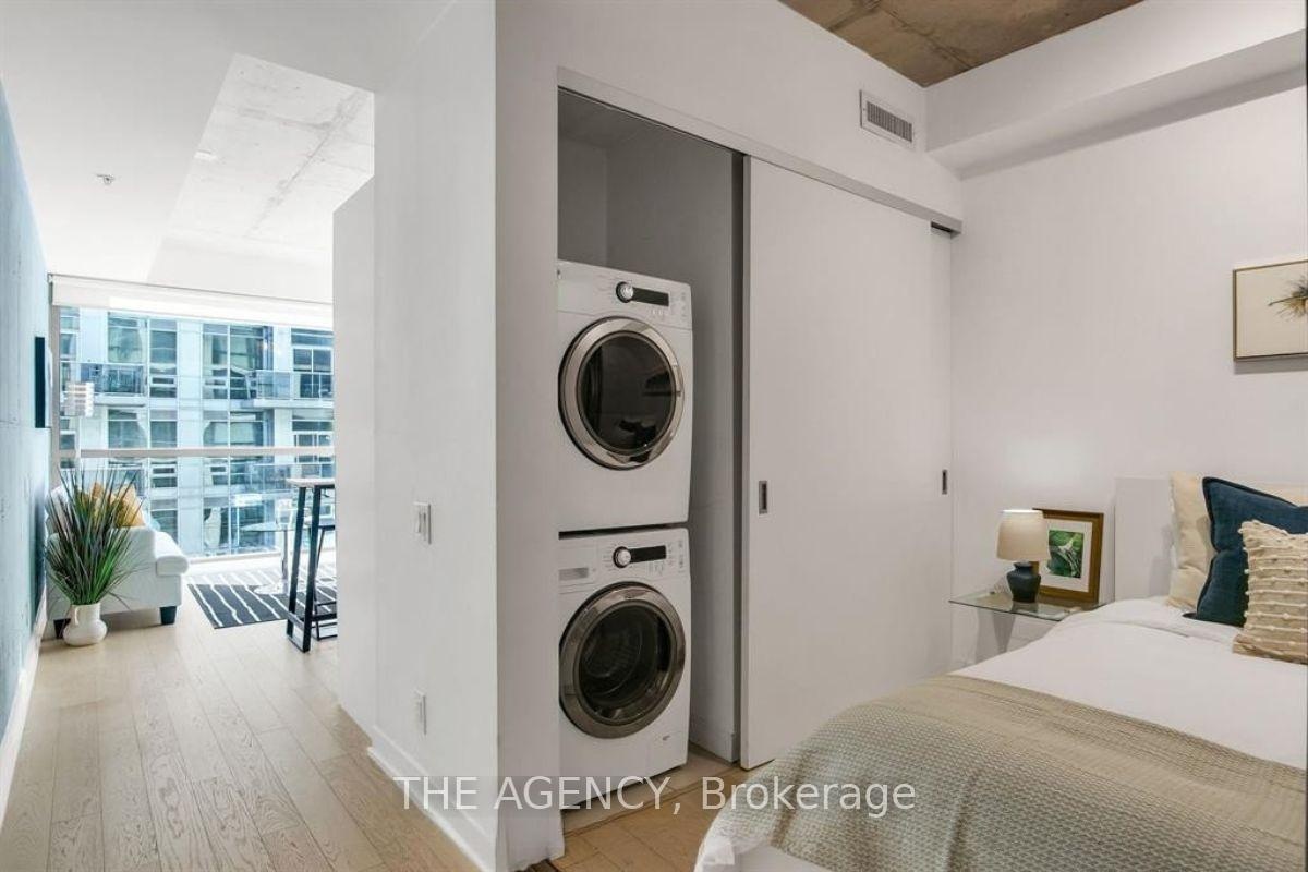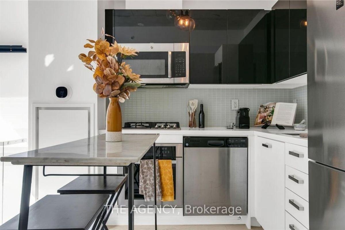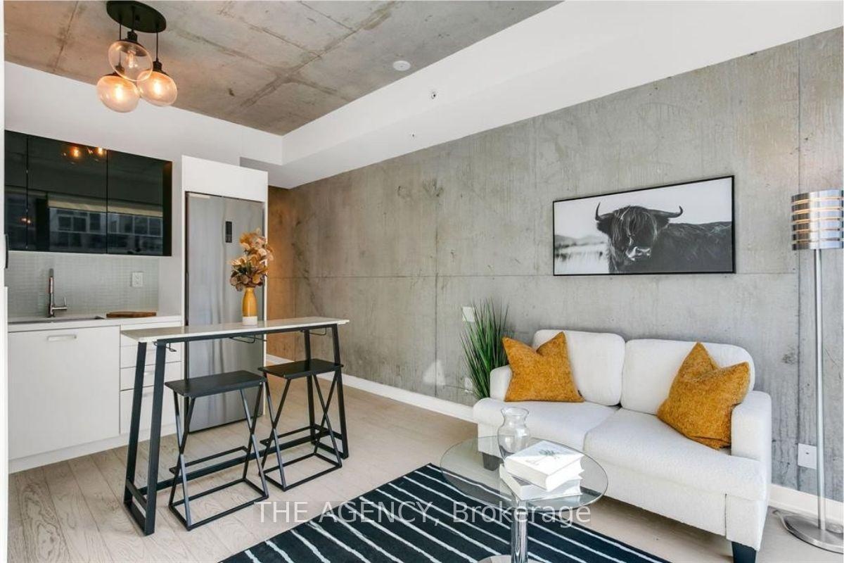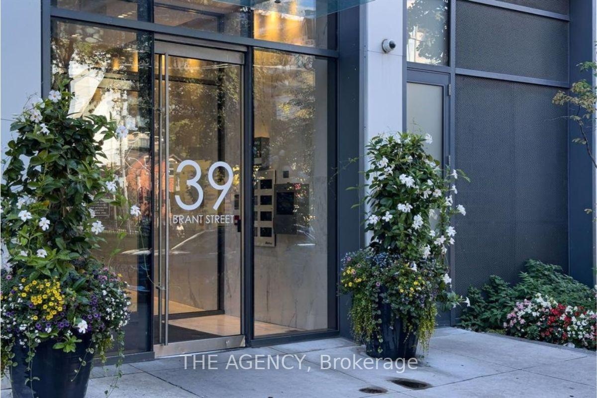 Welcome to Brant Park Lofts at 39 Brant Street - a boutique urban residence ideally located in Toronto's vibrant Fashion District. This stylish, south-facing one-bedroom suite features an open-concept layout, soaring exposed concrete ceilings and walls, and floor-to-ceiling windows that flood the space with natural light. The modern kitchen is equipped with a full-size gas range, oven, and dishwasher - a standout setup for those who love to cook and entertain. The bedroom features tinted sliding doors and a large closet, offering both comfort and privacy and the modern 4pc bathroom comes with a bathtub, a sleek vanity, and a medicine cabinet. Residents enjoy an array of contemporary amenities, including 24-hour concierge service, a fully equipped fitness centre, and a serene yoga studio; as well as a party/meeting room and patio. St. Andrew's playground and a dog park sits right across the street, and you're steps away from the Waterworks Food Hall, offering some of Toronto's best dining options. The area also provides effortless access to transit, acclaimed restaurants, cozy cafés, and the lively nightlife that defines King-West living. Fully furnished with modern, stylish, and thoughtfully curated furniture, this suite is move-in ready - ideal for young professionals seeking a sophisticated and convenient home in one of the city's most desirable neighbourhoods. Please note: The tenant is responsible for hydro and the heat pump rental cost. Inquire about six-month rental terms and unfurnished options.
