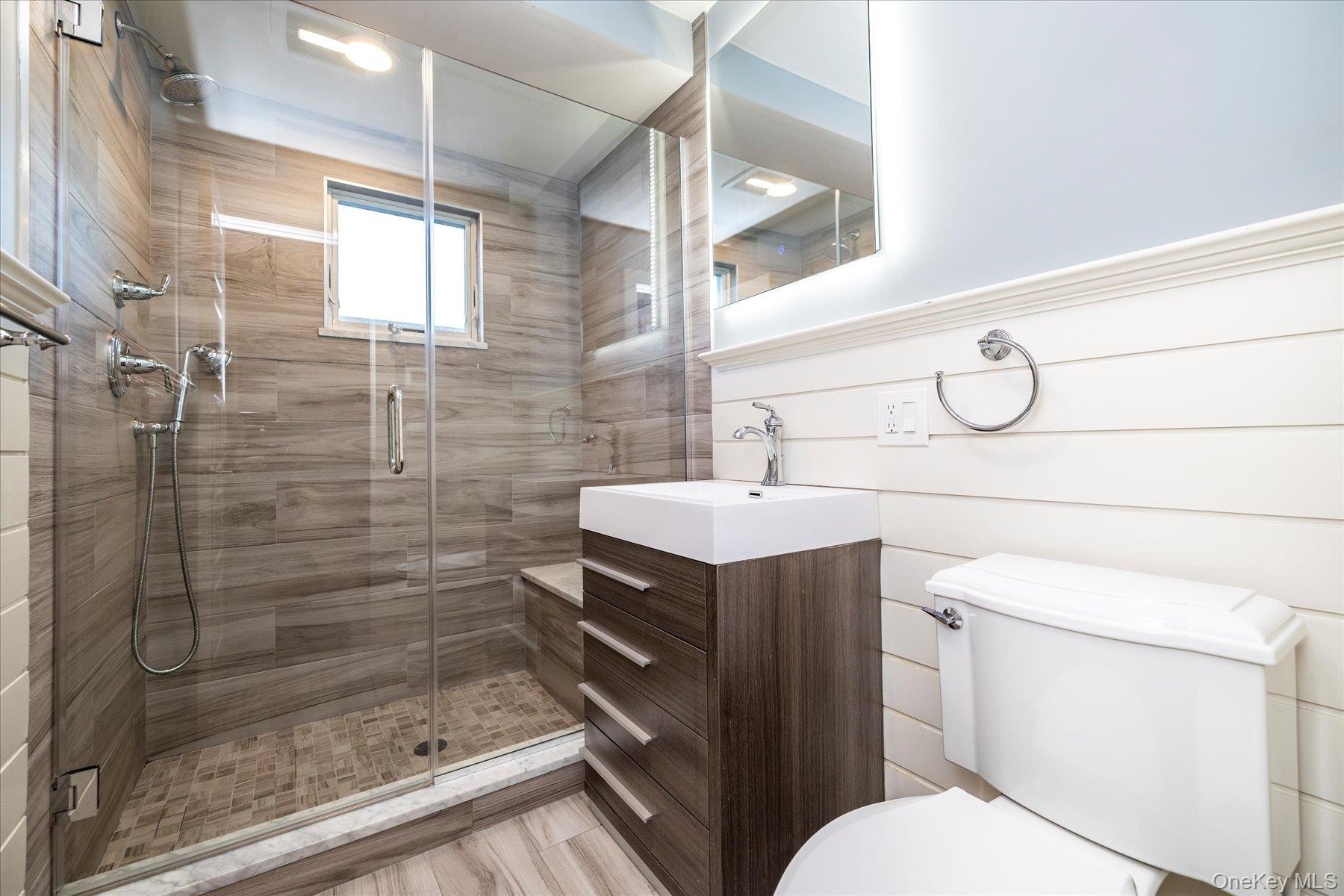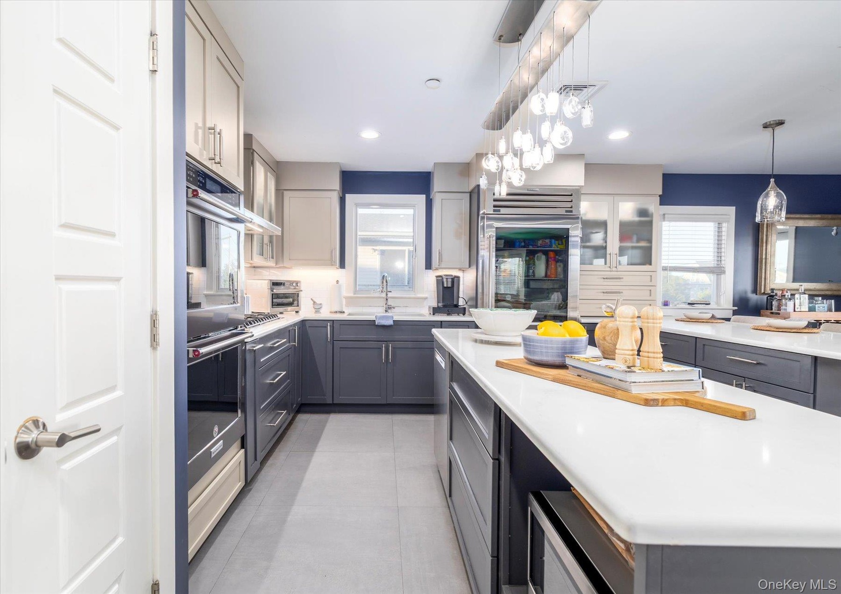 Inside, you’ll find a home designed for effortless living and entertaining. A gourmet chef’s kitchen with stainless steel appliances, double quartz islands, and abundant counter space flows seamlessly into the open living area, where sliding doors extend to a private deck overlooking the water. Comfort is never compromised, with 14 zones of heat, including radiant flooring beneath all tiled spaces and classic cast-iron baseboards, as well as two laundry rooms conveniently located on each level. Retreat to the primary suite, complete with its own private deck and a spa-inspired bathroom featuring a jacuzzi tub.