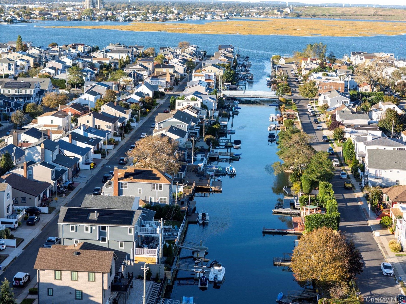 The exterior is just as impressive, boasting a 42-foot floating dock on a deep canal, perfect for boaters and water lovers, along with a paver patio designed for entertaining. Here you’ll also discover a private hot tub tucked behind its own privacy wall, creating a serene, resort-style escape steps from the water. A second deck off the main living level, parking for multiple cars, and a heated 1.5-car garage provide convenience and flexibility, while owned solar panels, flood vents, sprinklers, a whole house generator, and a tankless water heater underscore the efficiency and forethought behind every detail of this rebuild. Low taxes and low flood insurance further enhance the appeal of this exceptional property. Icing on the cake? Taxes are only $14,753 before STAR.