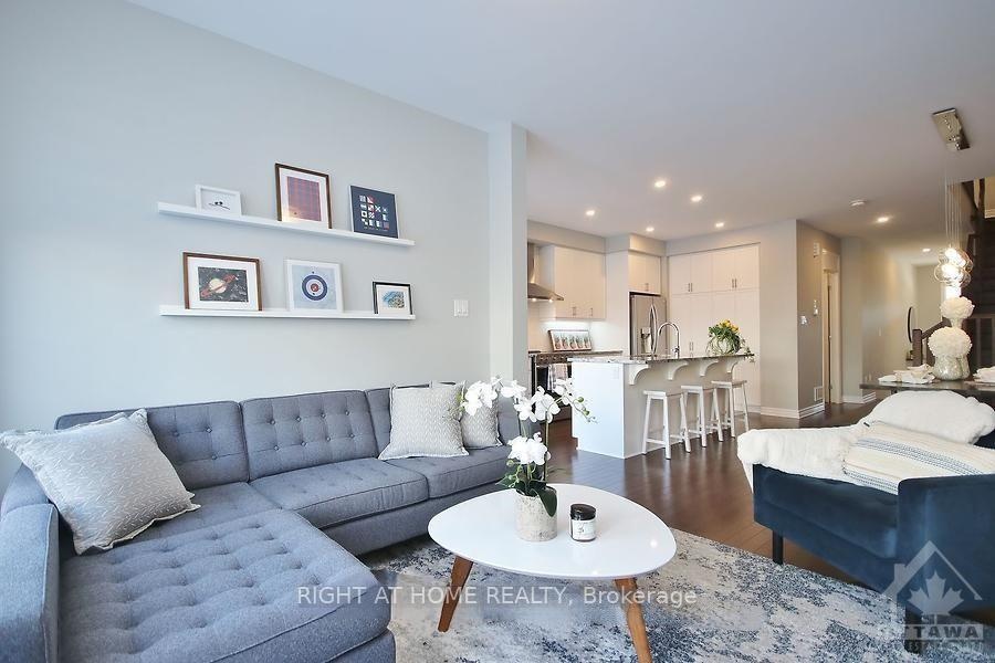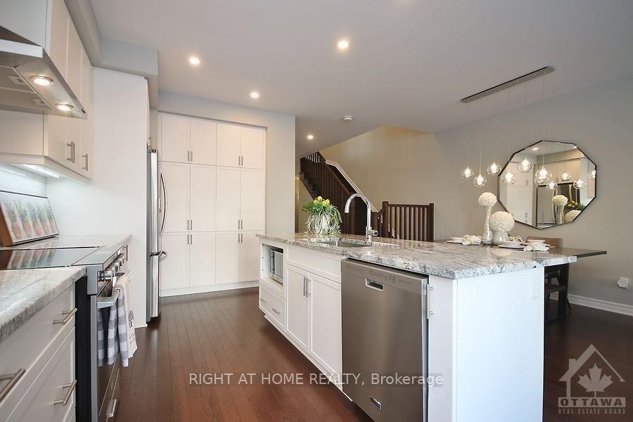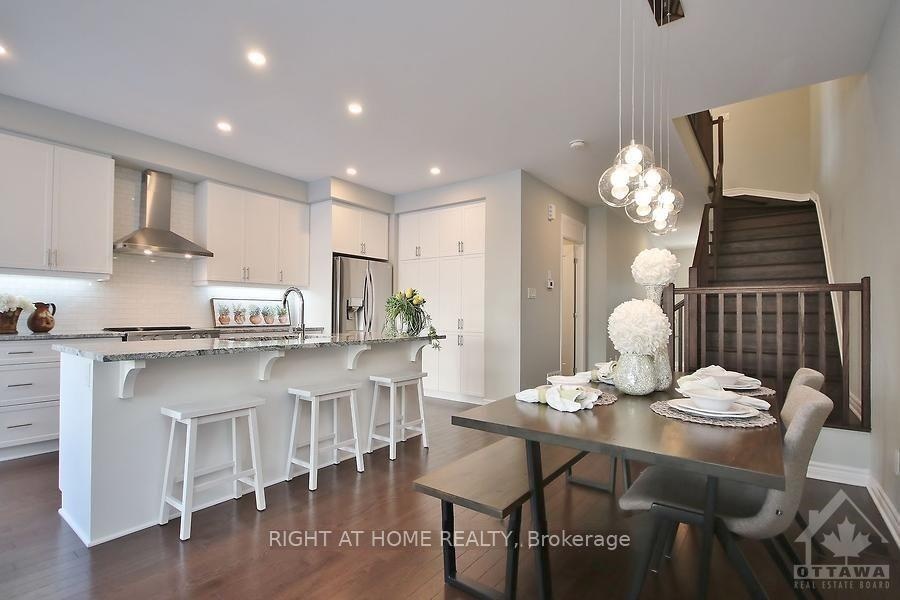 Welcome to this sought-after Tartan "Fuji" model in vibrant Findlay Creek! Offering 3 bedrooms, 3 baths and nearly 2,000 sq ft of stylish living space, this 2020-built townhome is move-in ready. The bright, open-concept main floor features hardwood flooring, upgraded lighting, and an impressive chef's kitchen with granite countertops, upscale stainless-steel appliances, and oversized windows that fill the home with natural light.Upstairs, the spacious primary suite includes two closets and a luxurious ensuite with granite counters and double sinks. Two additional bedrooms, a full bath, and convenient upper-level laundry complete this floor. The finished lower level offers a cozy family room with fireplace and ample storage space. Enjoy sunny afternoons in the west-facing backyard.An exceptional rental in one of Ottawa's most desirable family communities-close to parks, schools, shopping, and transit. Photos are from before the start of the tenancy