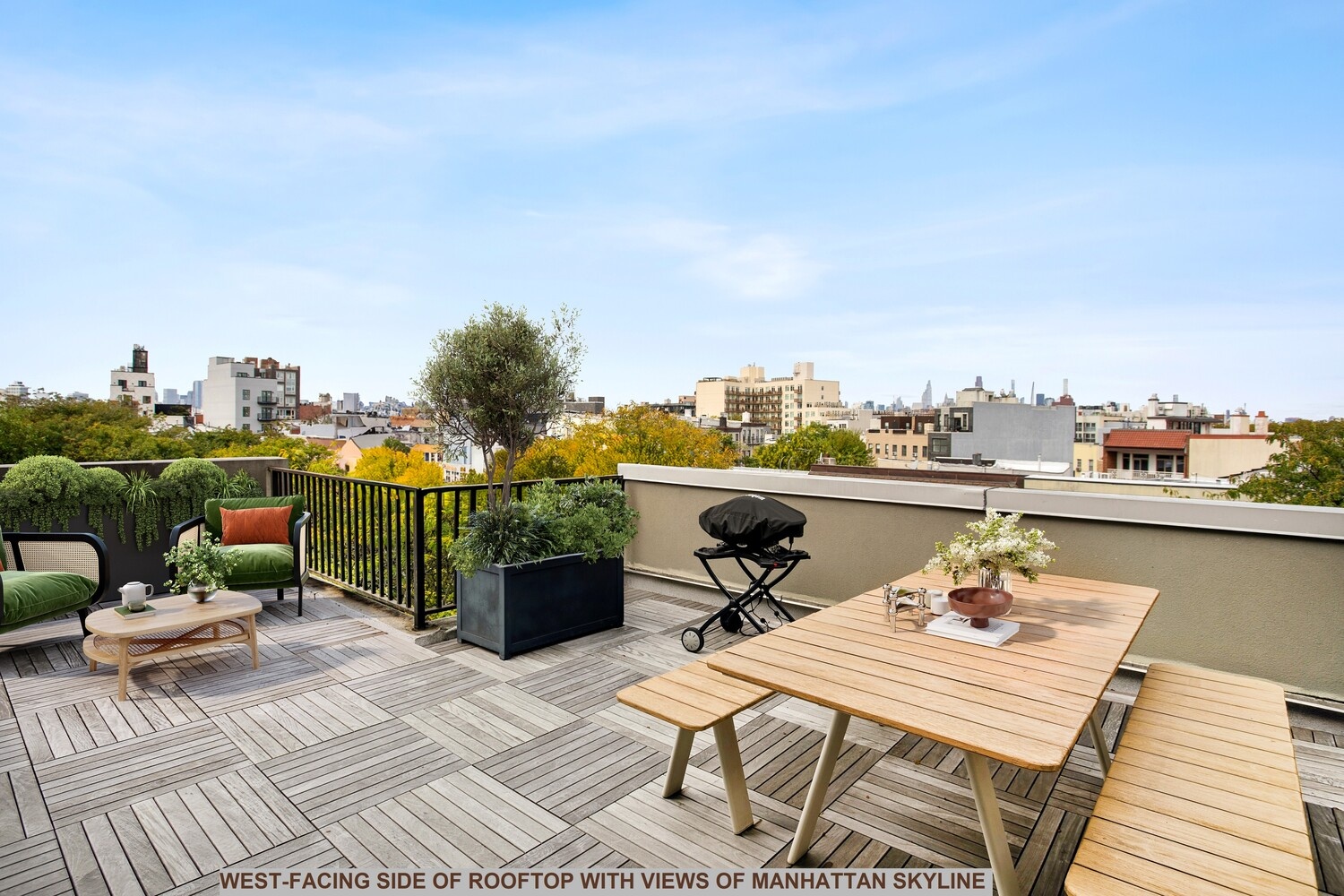 This beautiful home is a portrait of contemporary Brooklyn living: gorgeous hardwood floors, floor-to-ceiling windows with northern and southern exposures, Mitsubishi heating and cooling system, stunning cooks kitchen--add to this a 1,000sf private rooftop with new IPE hardwood decking and views of the NYC skyline, a rear-facing balcony, a front-facing terrace, and an in-unit washer/dryer.