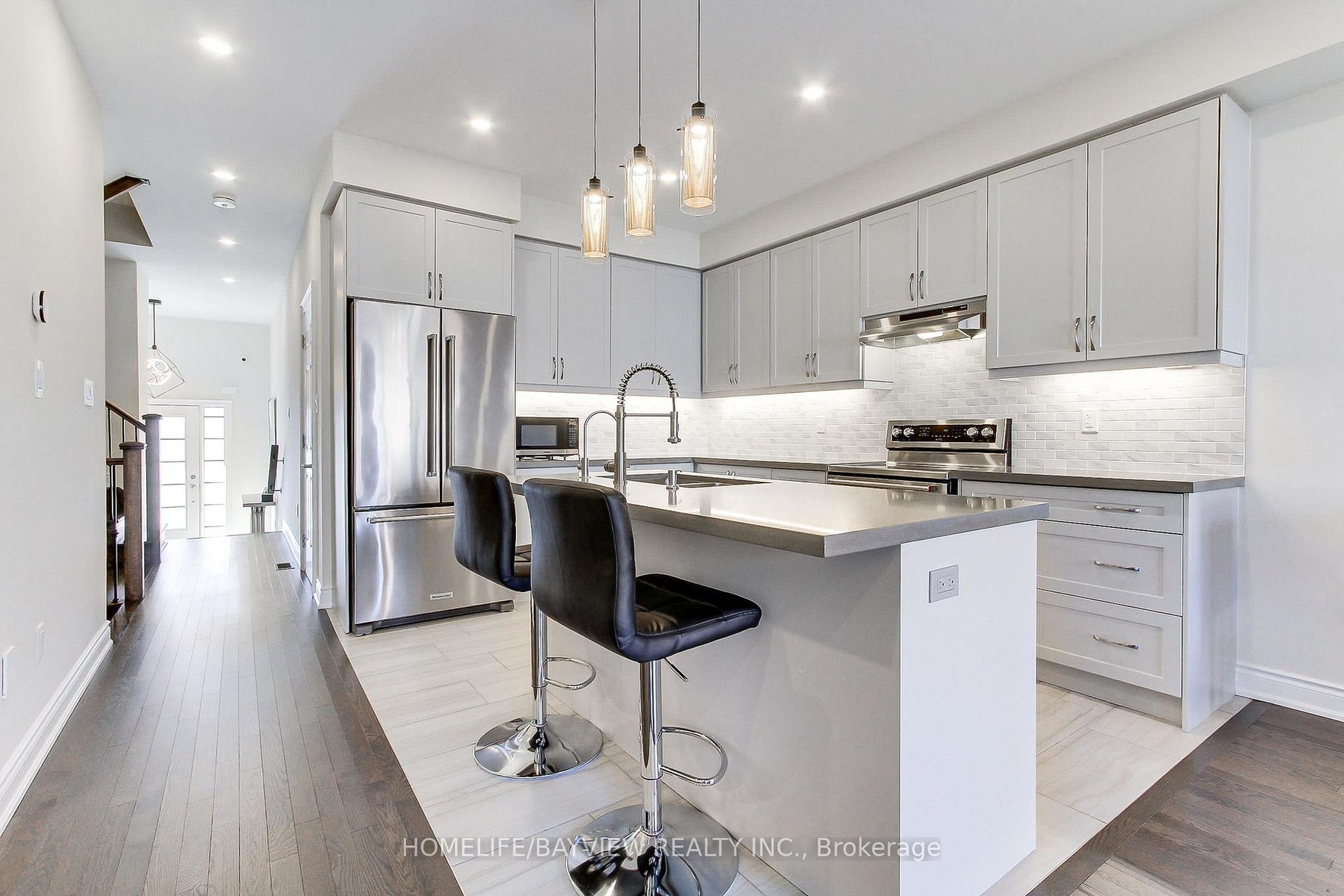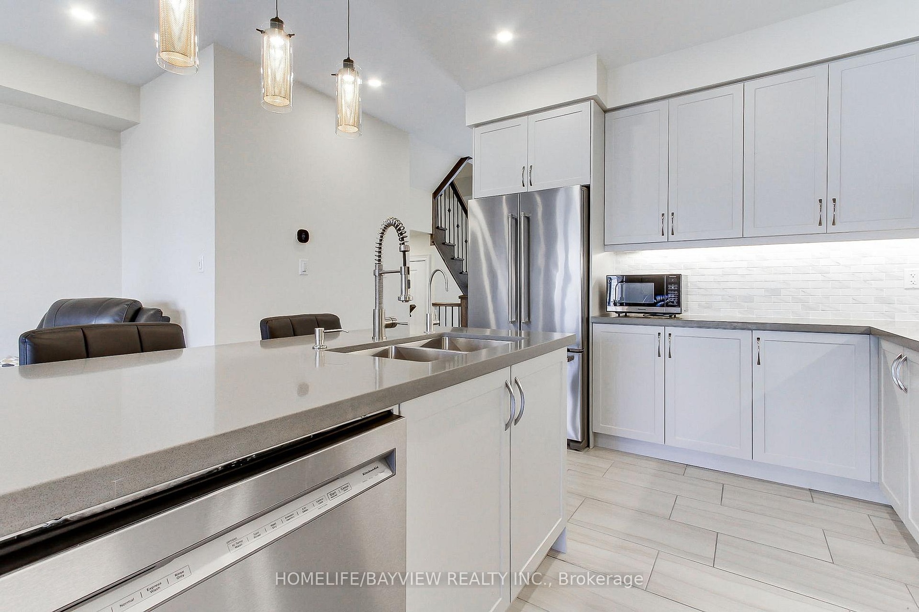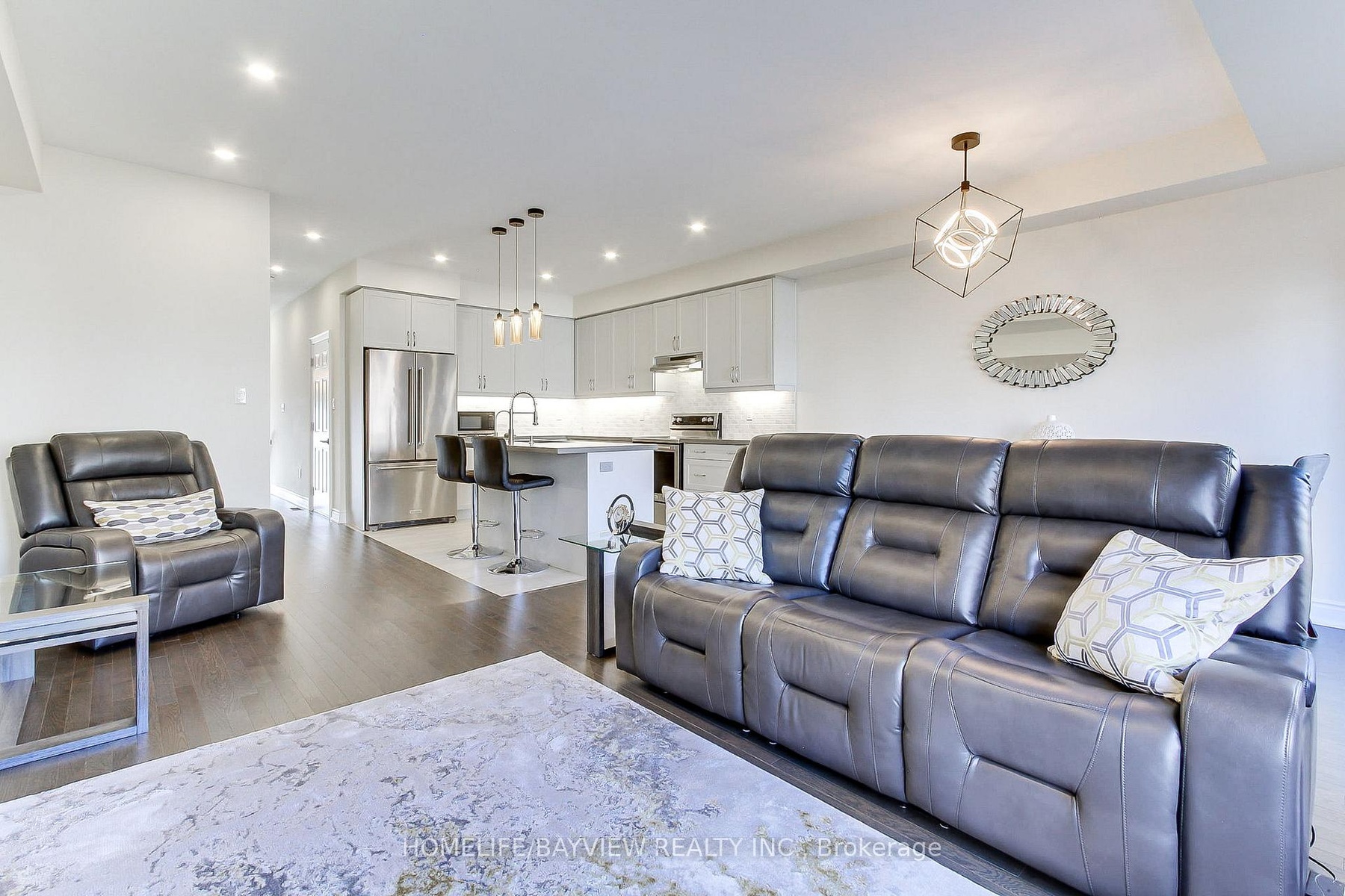Stunning Freehold Townhouse located in family oriented neighbourhood . Featuring 3 bedrooms and 2.5 baths, modern home with open-concept layout, abundant natural light, and thoughtful upgrades. Large windows in the living area, upgraded kitchen flooring, backsplash, and cabinet hardware. Hardwood floor on the first floor, hardwood staircase, smooth 9' ceilings on the first floor with pot lights. Interior garage access, cold cellar. Property is conveniently located just minutes from Highway 400 with easy access to shopping centers, golf course, and a beautiful park.