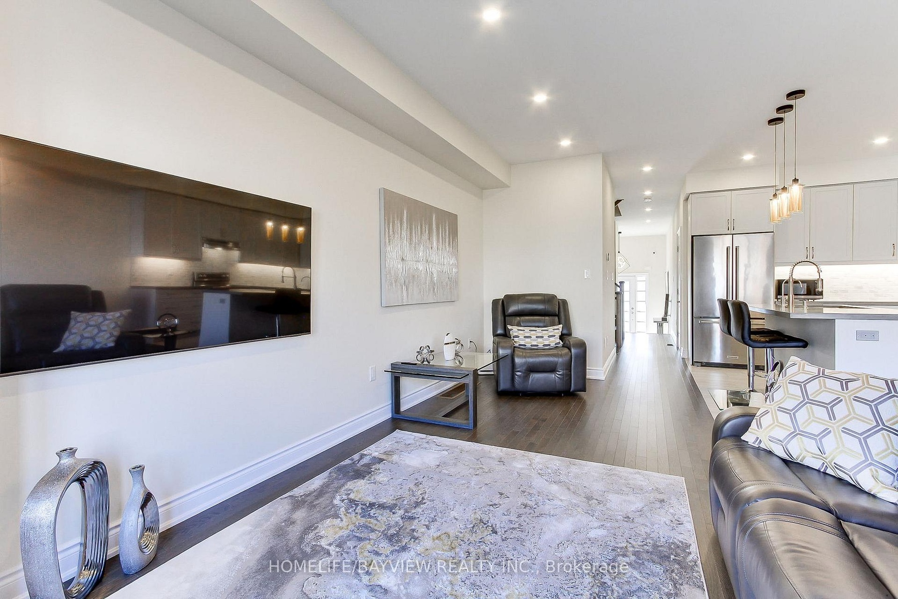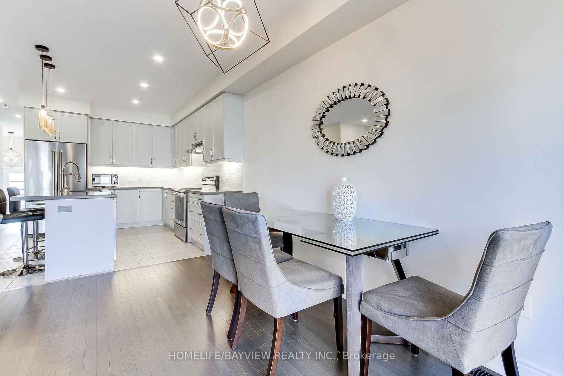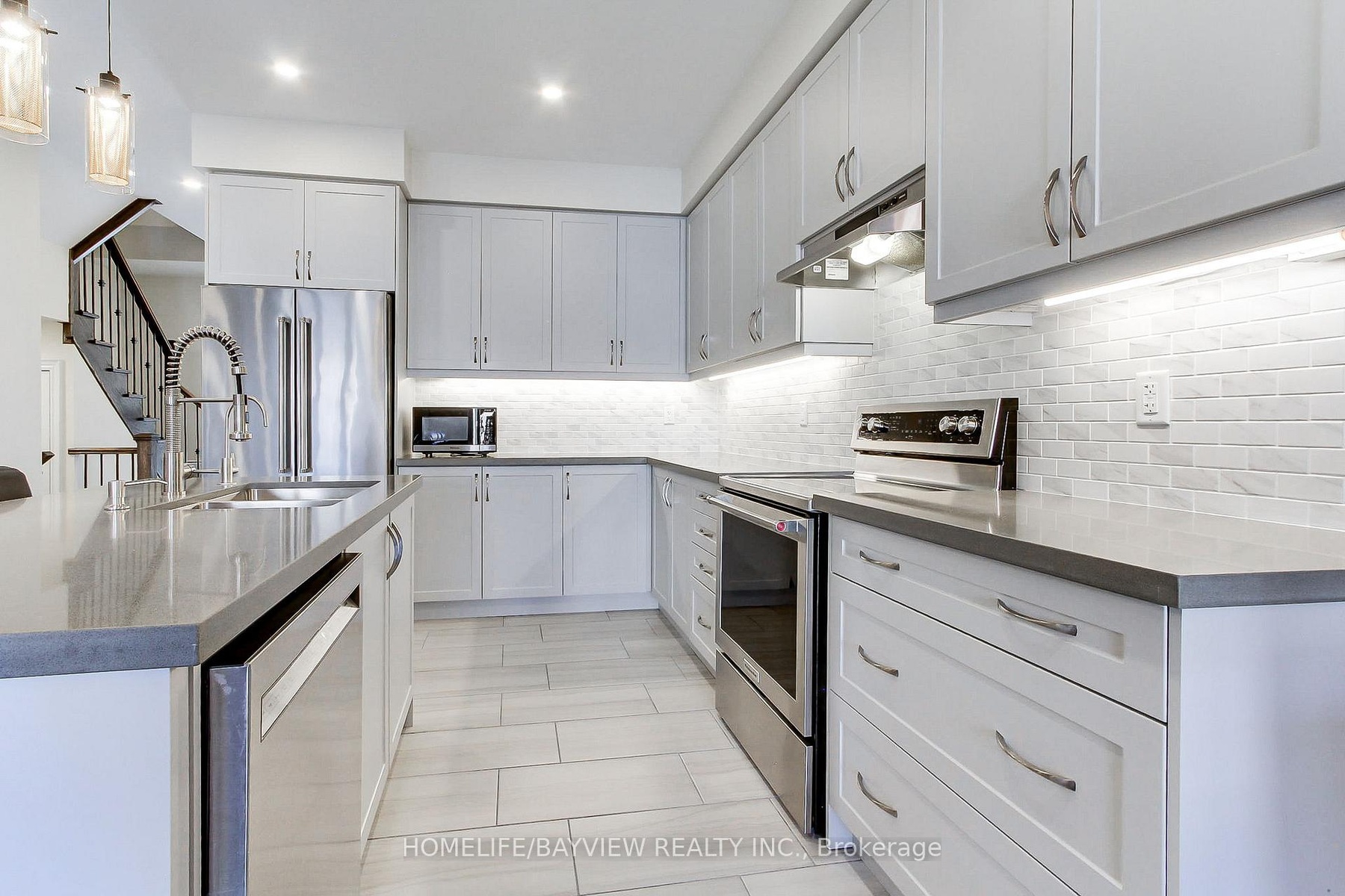 Stunning Freehold Townhouse located in family oriented neighbourhood . Featuring 3 bedrooms and 2.5 baths, modern home with open-concept layout, abundant natural light, and thoughtful upgrades. Large windows in the living area, upgraded kitchen flooring, backsplash, and cabinet hardware. Hardwood floor on the first floor, hardwood staircase, smooth 9' ceilings on the first floor with pot lights. Interior garage access, cold cellar. Property is conveniently located just minutes from Highway 400 with easy access to shopping centers, golf course, and a beautiful park.