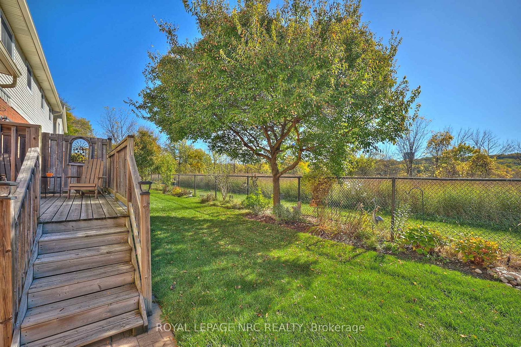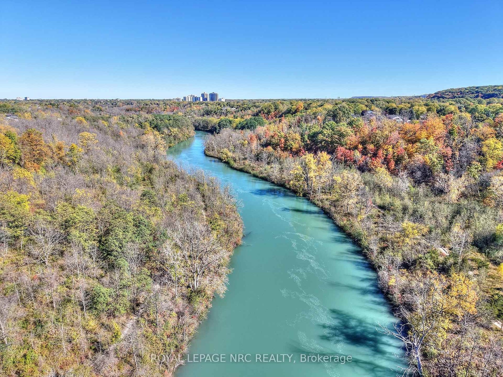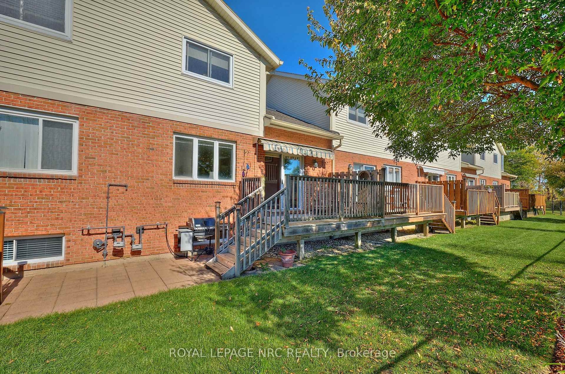 Welcome to this exceptional townhome nestled in a prestigious West St. Catharines neighborhood, perfectly positioned on a stunning ravine lot backing onto Twelve Mile Creek. Enjoy the serenity of nature with unobstructed views of lush greenery and complete privacy-no rear neighbors, just the peaceful sounds of nature and the beauty of the surrounding landscape. This spacious 1,697 sqft two-storey townhome offers an impressive blend of comfort, elegance, and style. The main floor welcomes you with an updated eat-in kitchen featuring granite countertops, a stylish tile backsplash, and plenty of cabinetry. A separate formal dining room provides an inviting space for gatherings, while the bright and airy living room showcases hardwood flooring, soaring ceilings, and skylights that flood the space with natural light. Step through the sliding glass doors to a private wood deck, where you can relax and take in the breathtaking ravine views. Upstairs, you'll find 3 bedrooms, including a generous primary suite with a walk-in closet and a private 3-piece ensuite bathroom. A second full 4-piece bath with skylight completes the upper level. The finished basement extends your living space with a large recreation room, spacious laundry area, and two additional storage rooms. Additional updates include a newer air conditioner (within 3 years). Set in one of St. Catharines' most desirable areas, this home offers a rare combination of tranquility and convenience-close to parks, trails, shopping, Brock University and major amenities. A truly special opportunity to own a home that combines privacy, prestige, and natural beauty.