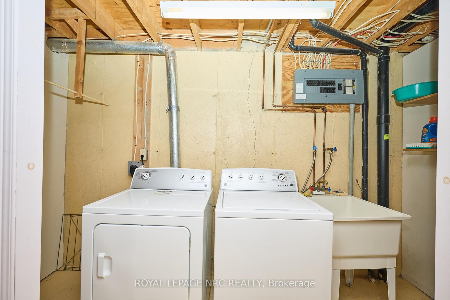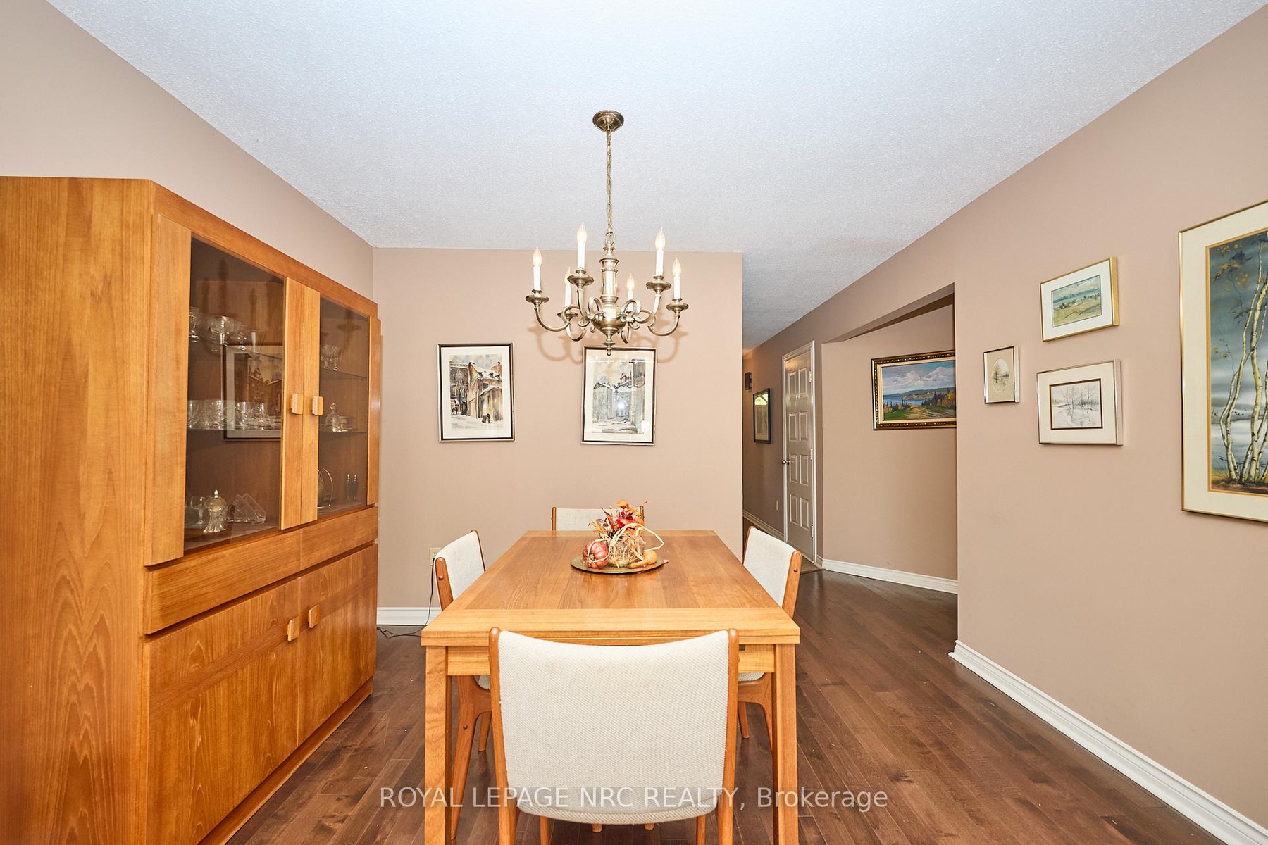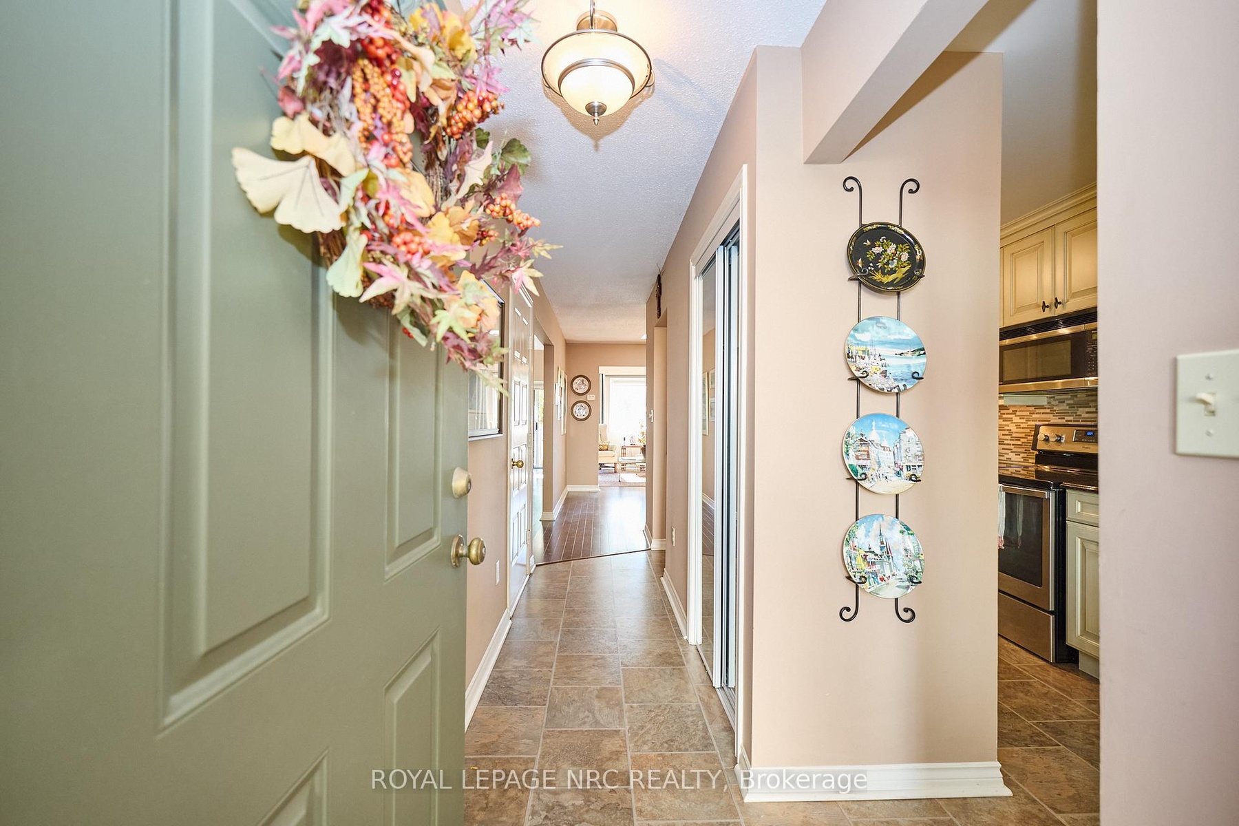 Welcome to this exceptional townhome nestled in a prestigious West St. Catharines neighborhood, perfectly positioned on a stunning ravine lot backing onto Twelve Mile Creek. Enjoy the serenity of nature with unobstructed views of lush greenery and complete privacy-no rear neighbors, just the peaceful sounds of nature and the beauty of the surrounding landscape. This spacious 1,697 sqft two-storey townhome offers an impressive blend of comfort, elegance, and style. The main floor welcomes you with an updated eat-in kitchen featuring granite countertops, a stylish tile backsplash, and plenty of cabinetry. A separate formal dining room provides an inviting space for gatherings, while the bright and airy living room showcases hardwood flooring, soaring ceilings, and skylights that flood the space with natural light. Step through the sliding glass doors to a private wood deck, where you can relax and take in the breathtaking ravine views. Upstairs, you'll find 3 bedrooms, including a generous primary suite with a walk-in closet and a private 3-piece ensuite bathroom. A second full 4-piece bath with skylight completes the upper level. The finished basement extends your living space with a large recreation room, spacious laundry area, and two additional storage rooms. Additional updates include a newer air conditioner (within 3 years). Set in one of St. Catharines' most desirable areas, this home offers a rare combination of tranquility and convenience-close to parks, trails, shopping, Brock University and major amenities. A truly special opportunity to own a home that combines privacy, prestige, and natural beauty.