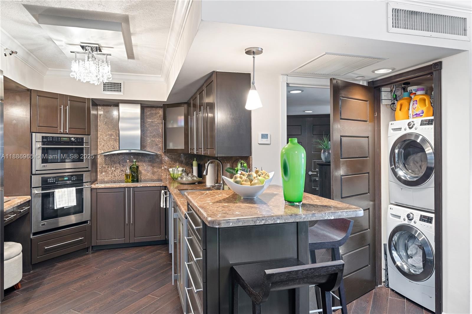 Offers newer AC, water heater, and appliances! Modern kitchen includes an extra-wide GE Profile refrigerator & wine fridge. Elegant white plantation shutters add a touch of sophistication. Custom closets with abundant storage. Beautiful Intracoastal and city skyline views. Assigned parking and storage unit.