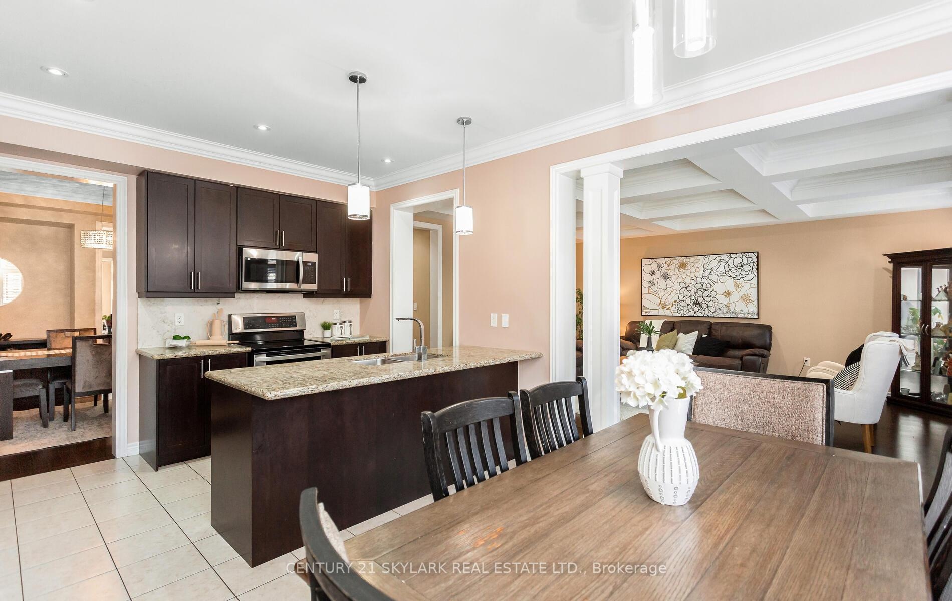 Luxury Living in Prestigious Kleinburg! Welcome to this stunning executive home offering over 5,000 sq. ft. of exquisitely finished living space, nestled in one of Kleinburg's most desirable communities. With more than $150,000 in premium upgrades, this property blends sophistication, comfort, and functionality in every detail. Featuring 3,300+ sq. ft. above grade plus a newly completed 1,500+ sq. ft. basement, this home is designed to impress. Enjoy 9' ceilings on both the main and second floors, with a grand 10' ceiling in the primary bedroom that elevates the sense of luxury. The gourmet kitchen boasts extended-height cabinetry, granite countertops, a solid marble backsplash, and premium appliances - perfect for culinary enthusiasts. Designer stone accent walls, engineered hardwood flooring, an oak staircase, pot lights, and wood California shutters add elegance throughout. The main floor offers a versatile living room or private office with French doors and coffered ceiling, ideal for professionals or remote work. Upstairs, a bright loft/study with a vaulted ceiling adds a perfect flex space for reading, studying, or relaxing. The primary suite is a true retreat, featuring a spacious layout, a large walk-in closet, and a luxurious 5-piece spa ensuite with granite counters, soaker tub, and glass shower. Each additional bedroom offers a private or semi-private ensuite and walk-in closet, providing comfort and privacy for the whole family. The professionally finished basement includes a large open-concept rec space, a modern 3-piece bathroom, and endless potential for a home theatre, gym, or in-law suite. Enjoy enhanced curb appeal with exterior soffit lighting that highlights the home's elegant facade. This is luxury living at its finest - move-in ready and waiting for you to call it home!