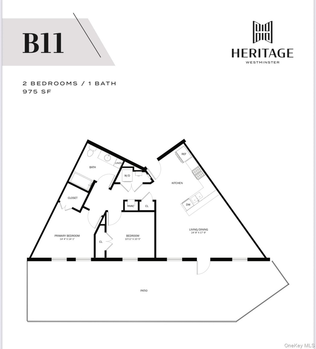 - B11- 2 BEDROOM, 1 BATHROOM approx 975 sq ft