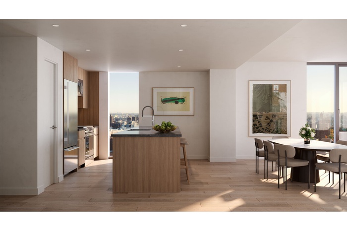 The residences at Eighty Nine DeKalb look out at sweeping panoramas of the Manhattan Skyline, Fort Greene Park, and Brooklyn landscape beyond. These considered spaces maximize light and views, with oversized windows that immerse residents in the city's special magic even as they remain cozy in their personal havens.