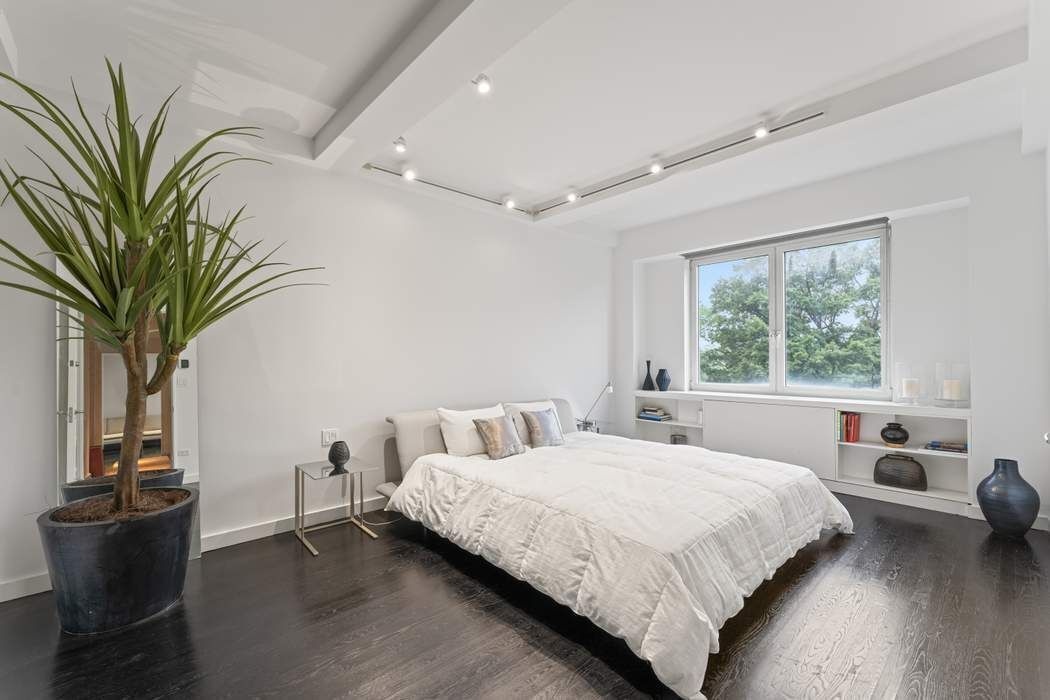 At the end of a gallery you will find a King Size Primary Bedroom with picture windows facing the Park, ample room for a King size bed, large side tables and a desk or seating area. It features 2 large closets; one of them being a walk-in.