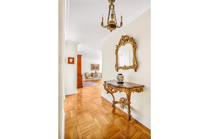 The serene primary suite offers two walk-in closets, a linen closet, electronic shades and a luxurious marble en-suite bath with a spa bath, expansive medicine cabinets and high-end brass fixtures. -The second bedroom, also featuring a well-appointed marble bath with a shower has ample storage and is privately situated off a separate hallway, well situated as a powder room. The entire apartment is equipped with custom shades, built in storage and custom lighting to accommodate art.