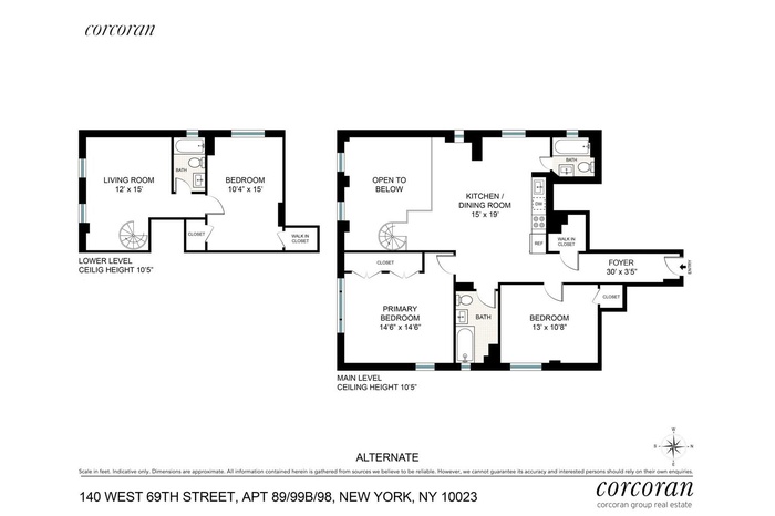 CREATE YOUR MASTERPIECE WITH WIDE OPEN CENTRAL PARK TREE-TOP VIEWS!! This BRIGHT & SUNNY CORNER WRAP-AROUND DUPLEX unit awaits your thoughtful inspiration. Currently configured as separate 1BR + 2 contiguous units, the potential combination possibilities are limited only by your imagination . Vaulted 10.5 FT CEILINGS will give a light, airy feel throughout. Combining the scale and feel of a house or loft with the ease of apartment living, this well-proportioned space offers a stylish home complemented with huge east, south and west-facing windows. It brings endless potential, scale and location to its list of many highlights and is peacefully set within a quintessentially beautiful Prewar Upper West Side doorman building.