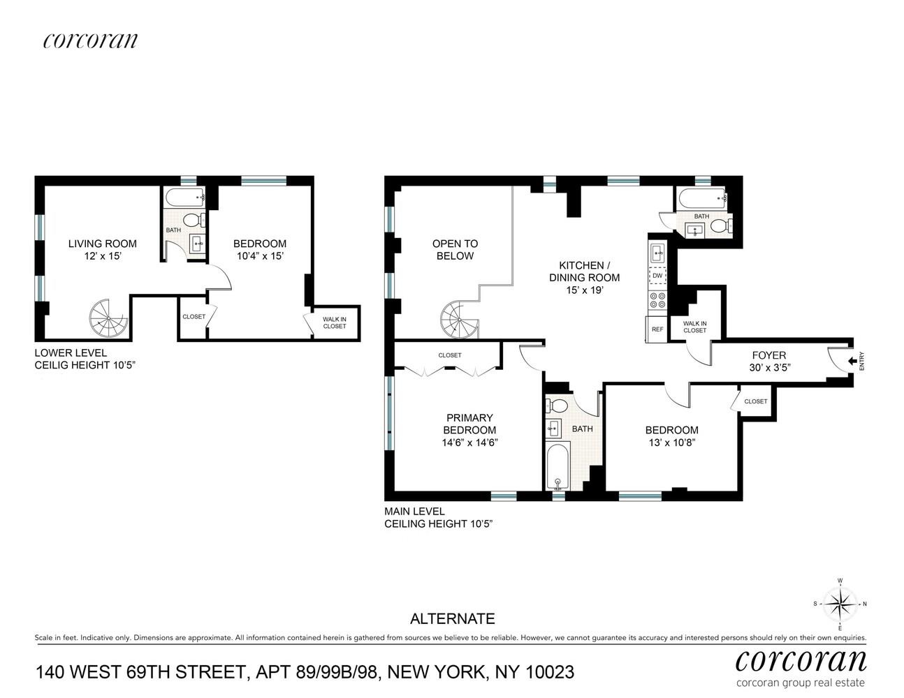 IDEALLY LOCATED on tranquil tree-lined West 69th street, this gorgeous PREWAR ELEVATOR building features a 24-HOUR DOORMAN, live-in super, LAUNDRY ROOM, and the friendliest staff on the Upper West Side! Nestled in the heart of Lincoln Center on fabulously scenic and TREE-LINED West 69th Street, 140 W69 has the unique distinction of being the only doorman building on a Landmark brownstone block! You are a short distance from the 1/2/3/B/C Trains and cross-town transportation, as well as our wonderful local treasures: Lincoln Center, The Juilliard School, Trader Joe's, Magnolia Bakery, Sony Lincoln Square Cinemas, Columbus Avenue, and of course Central Park! WILL NOT LAST!! please note: there is an ongoing capital assessment of $512/month. The sample floor plans are provided for illustrative purposes only to show potential combination possibilities of 3 cooperative units. It is not based on structural, architectural, or building department review. Prospective purchaser should consult with a licensed architect and obtain co/op Board and regulatory approvals prior to any alterations or combinations.