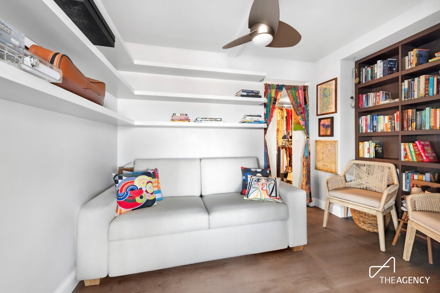 Nothing has been overlooked. Contiguous apartments were combined to create a loft-like, enormous one bedroom home with separate living and dining spaces and a multipurpose den/office/guest room. If needed, the space will simply and easily flex into a spacious two-bedroom (see the Alternate floor plan provided).