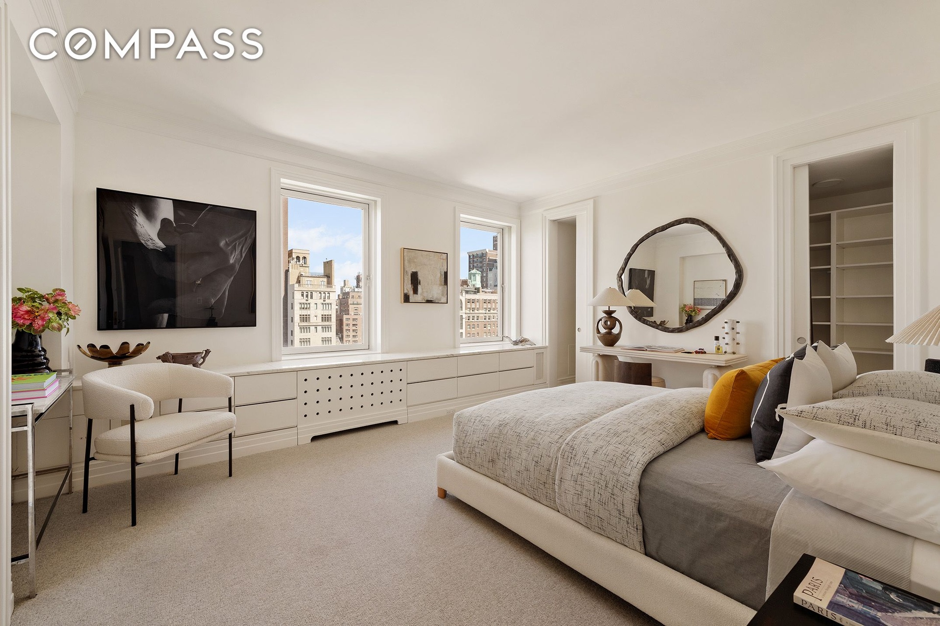 Perched high above historic mansions, this impressive 2 bedroom, 2.5 bathroom offers magical vistas of Central Park, The Metropolitan Museum of Art, Carlyle Hotel, and even the George Washington Bridge! With 25' of direct Central Park frontage and 90' of sweeping open views north, the apartment captures resplendent light all day through oversized picture frame windows. Whether in bed with coffee or watching the city sparkle after dark, the 14th floor delivers a truly dynamic visual experience from every room.