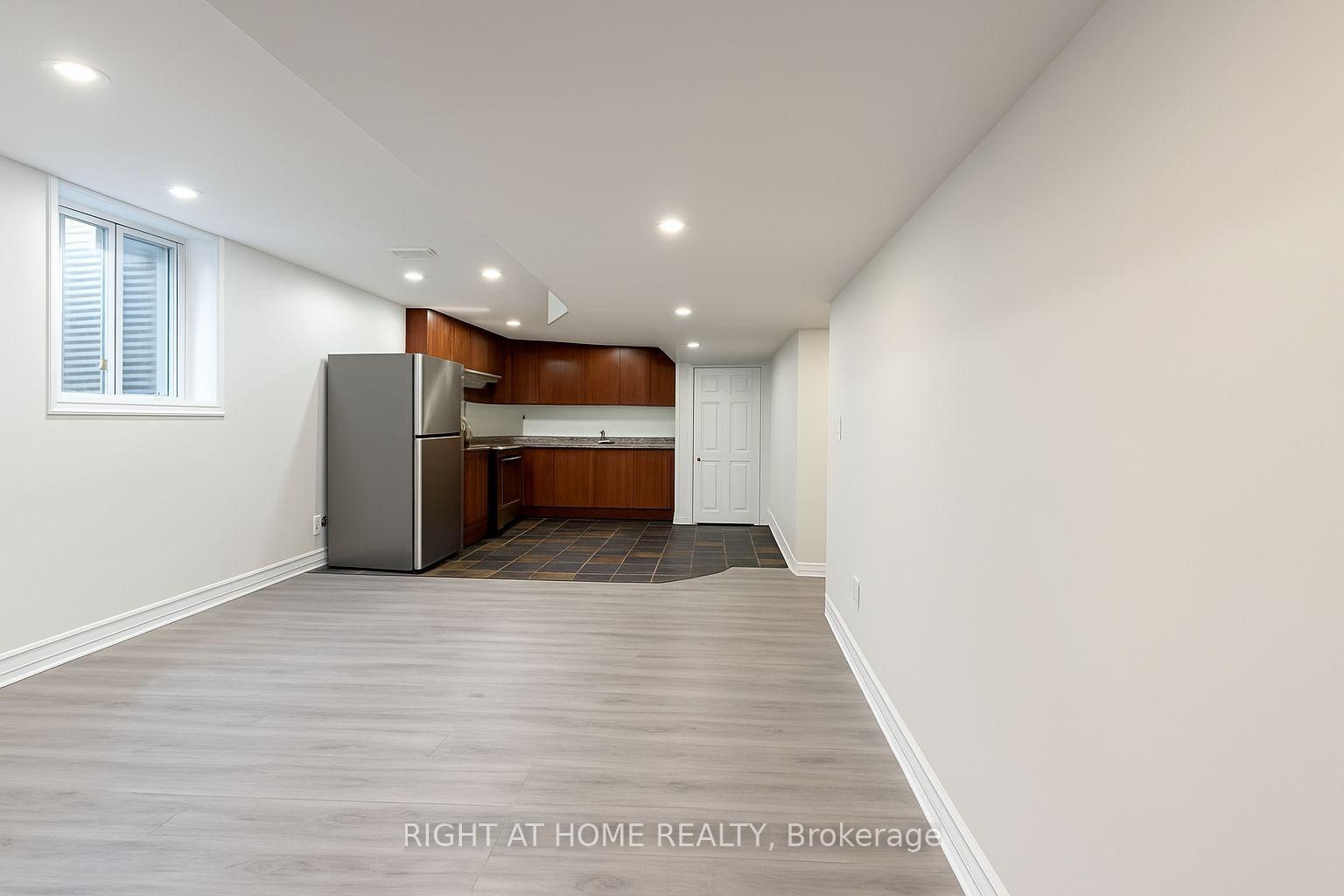 Beautifully finished 2-bedroom basement apartment in a sought-after family neighborhood! This spacious, carpet-free unit features hardwood and tile flooring throughout, fresh paint, and modern pot lights that create a warm, open-concept living space. The bright kitchen offers stainless steel appliances, full-size fridge and stove, and plenty of cabinetry for storage. Enjoy the comfort of two generous bedrooms with above-grade windows allowing natural light to fill the rooms. Includes private laundry, separate entrance through the garage, and 1 driveway parking space (second space optional). Located in a quiet, family-friendly area close to schools, parks, shopping, and public transit - this clean and inviting unit is ready to move in!