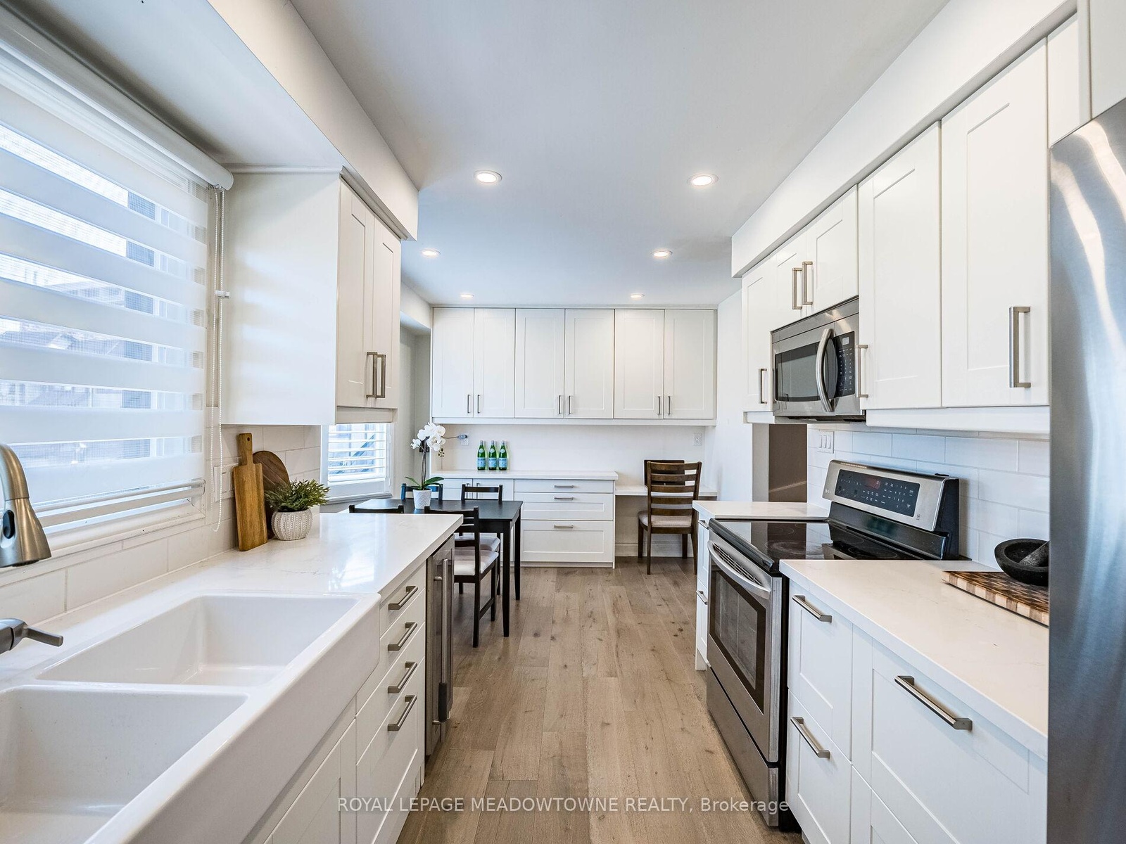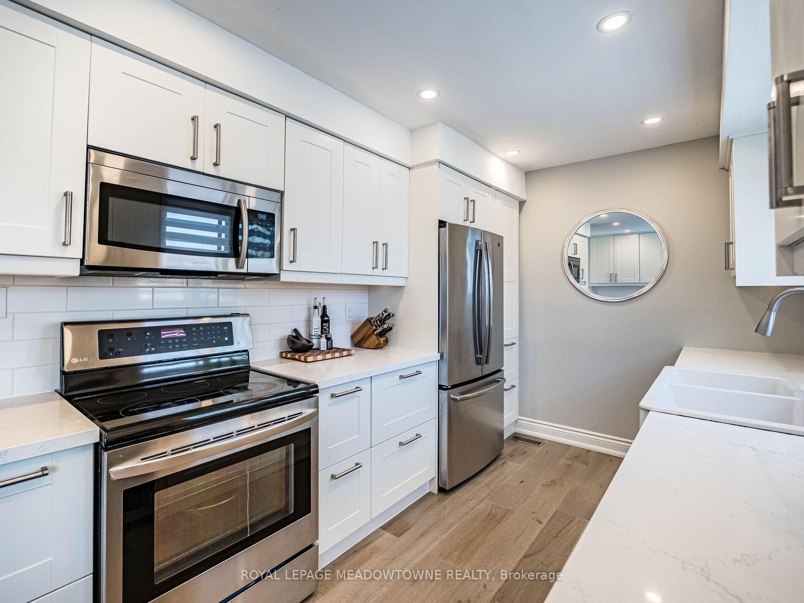 Charming Townhome in Meadowvale - Steps to Everything! Welcome to 6780 Formentera Ave, Unit 75, a beautifully maintained townhome in the heart of Meadowvale, Mississauga. This bright and spacious home offers a functional layout perfect for families, first-time buyers, or investors. The updated eat-in kitchen features classic white cabinetry, a bay window with California shutters, and ample storage. A separate dining room overlooks the living room, creating an open and airy feel perfect for entertaining. The cozy living room boasts a working wood-burning fireplace and a walkout to the backyard, ideal for relaxing or hosting gatherings. A convenient 2-piece bath completes the main floor. Hardwood flooring flows throughout both levels, with tile in the entryway. Upstairs, you'll find three generously sized bedrooms with large closets and hardwood floors. The semi-ensuite 4-piece bathroom offers added convenience. The finished basement expands your living space with a versatile rec room perfect for a home office, playroom, or media space. With no homes behind, enjoy added privacy in this quiet, well-maintained complex. Located just minutes from Meadowvale Town Centre, parks, trails, top-rated schools, and the Meadowvale GO Station, this home offers easy access to major highways and all essential amenities. Don't miss this opportunity to own a fantastic home in a prime location.
