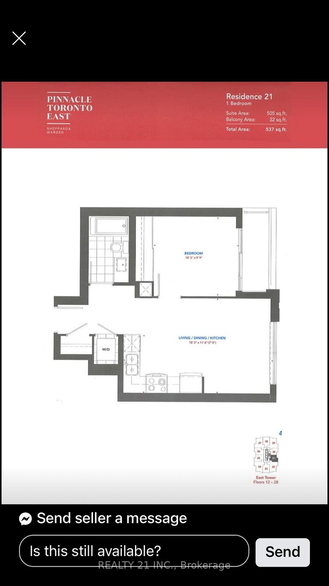 You Could Be First tenant. Brand new and No One's never lived in, this smartly designed 1-bedroom suite at Pinnacle Toronto East offers nearly 599 sq ft of interior space and a 98 sq ft East-facing balcony, perfect for catching sunset skies, weekend brunches, or just enjoying a little extra breathing room. Situated in the East Tower. The unit features warm wood finishes and a contemporary kitchen designed for both style and function, a space that's just as comfortable to cook in as it is to come home to. The building delivers an impressive lineup of amenities including an outdoor pool, gym, yoga studio, rooftop BBQ terrace, party lounge, sports lounge, and a playground. Groceries are across the street, the TTC is a 4-minute walk, and you're just minutes from Fairview, Scarborough Town Centre, Pacific Mall, and every major highway. Parking and locker included. Occupancy this October, so yes, you can spend fall settling into something brand new, in the best possible way.