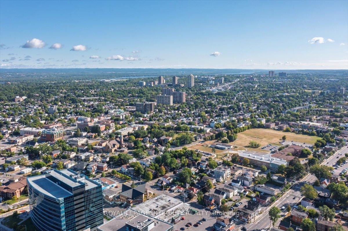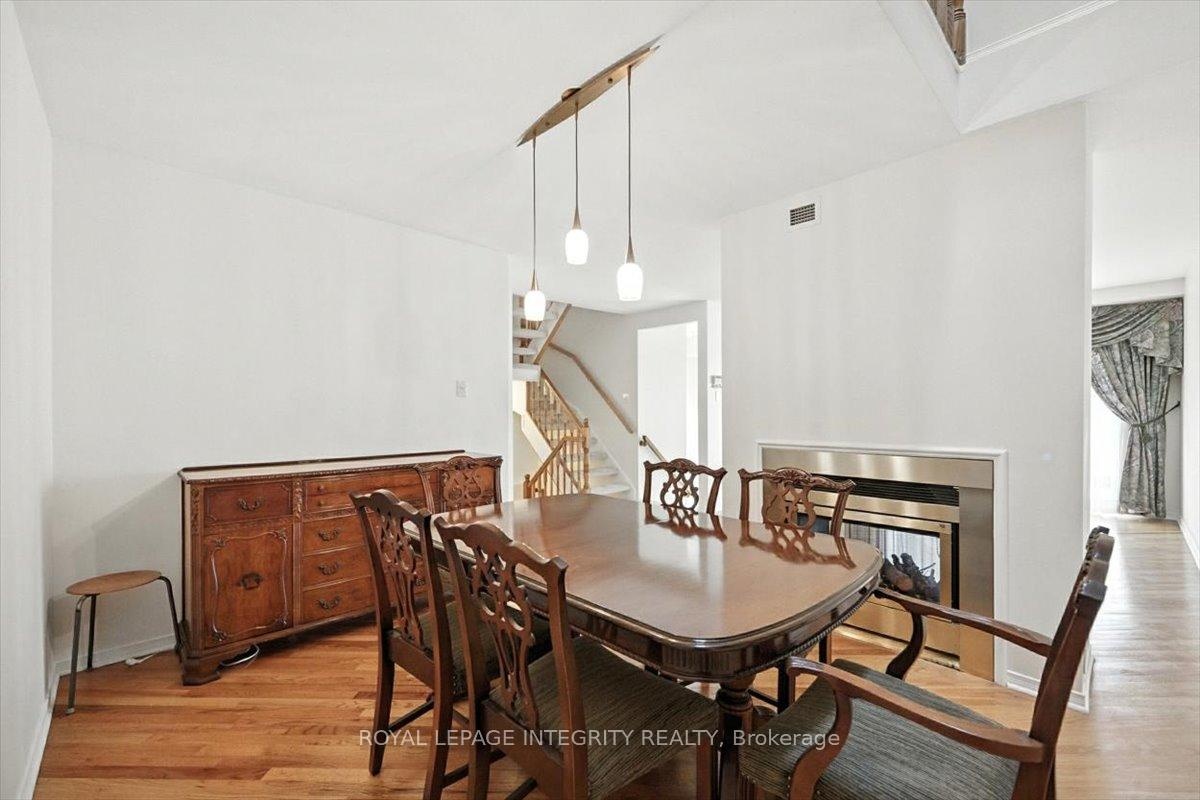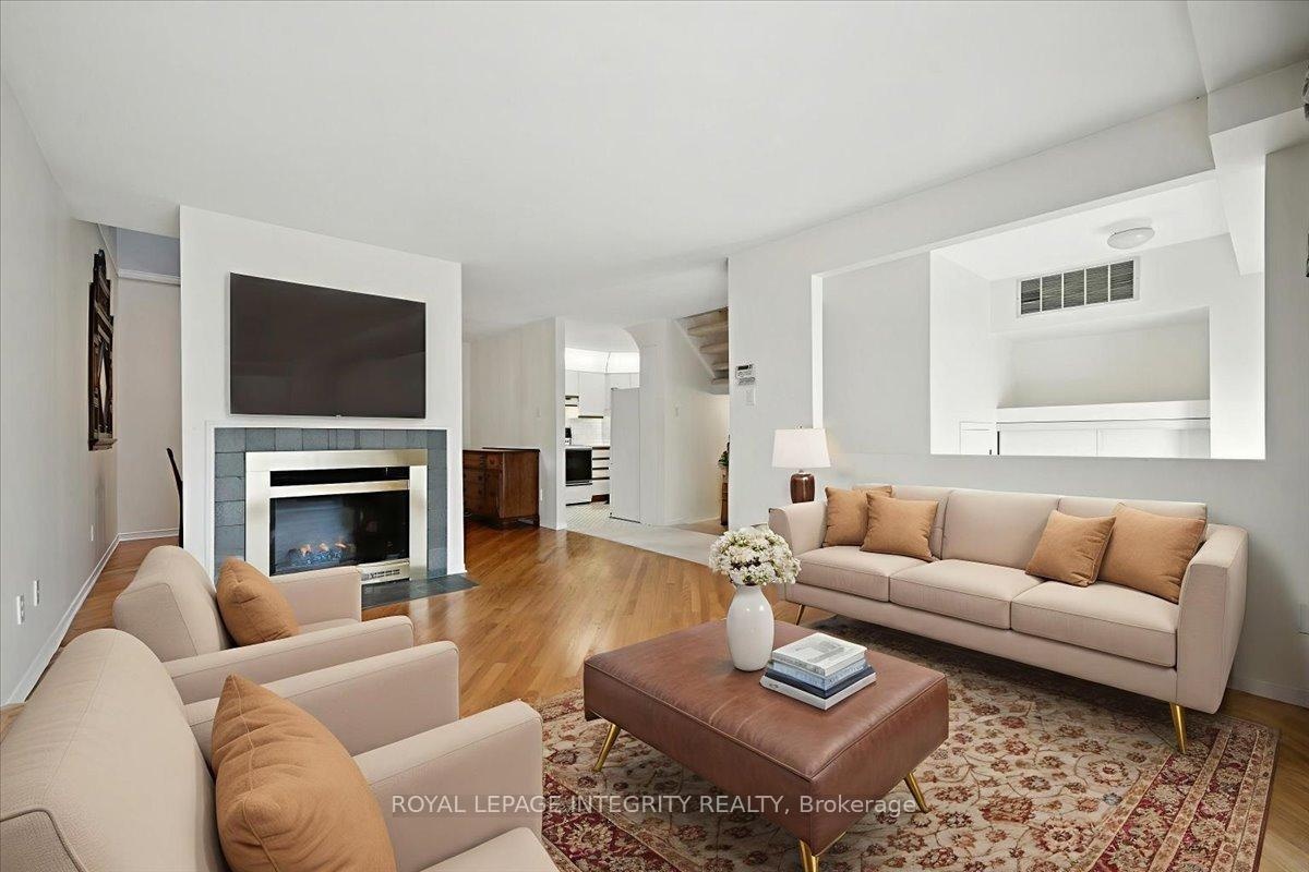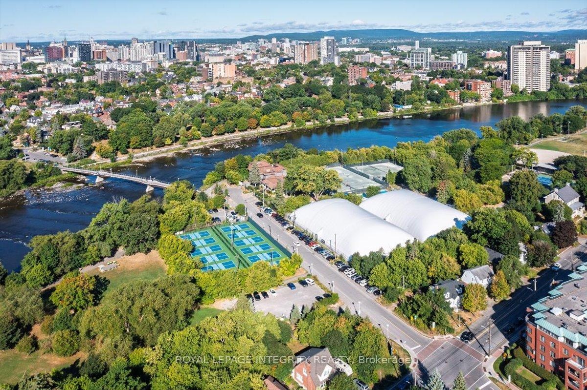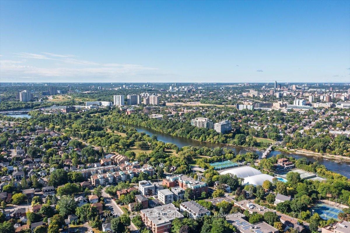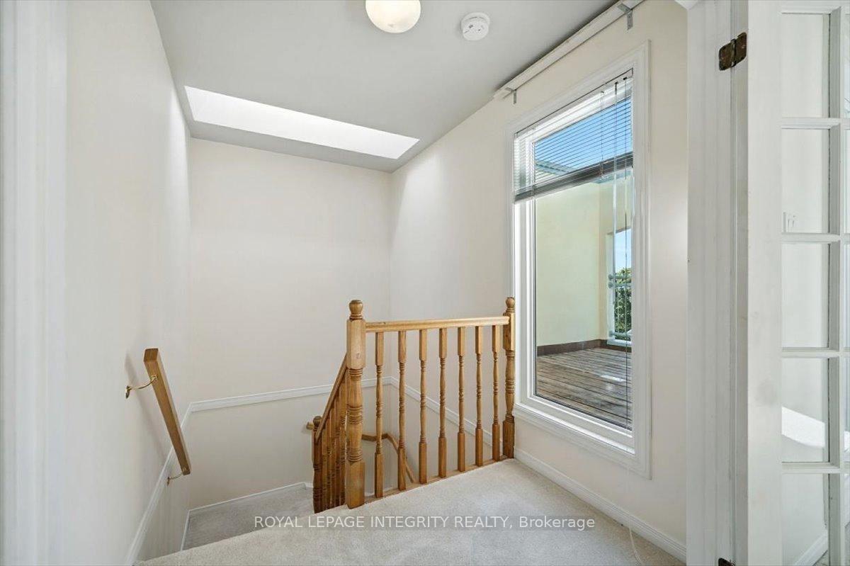 Welcome to 17 Columbus Avenue - a 3 bedroom + den, 3 bathroom freehold townhome tucked off North River Road, just minutes from Ottawa's best amenities, highway 417, downtown core/ByWard Market, cultural landmarks, the Rideau Sports Center & Tennis Club, the Adawe Crossing Bridge, and scenic pathways. This one-of-a-kind home offers the perfect balance of comfort and convenience. The driveway fitting 2 cars gives access to the attached garage and a pathway leads you to the front entrance, where a spacious foyer with powder room access sets the tone. Just a few steps up, the sun-filled living room features gleaming hardwood floors, patio doors opening to a walk-out deck and a double-sided wood-burning fireplace shared with the dining room bathed in natural light from the overhead skylight. The kitchen offers a practical layout with white cabinetry, tile backsplash, and new LED lighting. On the second level, you'll find two generous bedrooms, a full bathroom, and a versatile den with custom floor to ceiling built-in wooden library/office - perfect as a home office, reading nook, or easily converted into a 4th bedroom. A dedicated laundry room with a large storage closet completes this level. The top floor is reserved for the private primary retreat, complete with a 5-piece ensuite, spacious walk-in closet, and a sunny terrace with retractable awning. The basement provides direct garage access, a cedar closet, and a workshop/storage area. This freehold townhome is truly unlike any other and location can't be beat - come visit today!