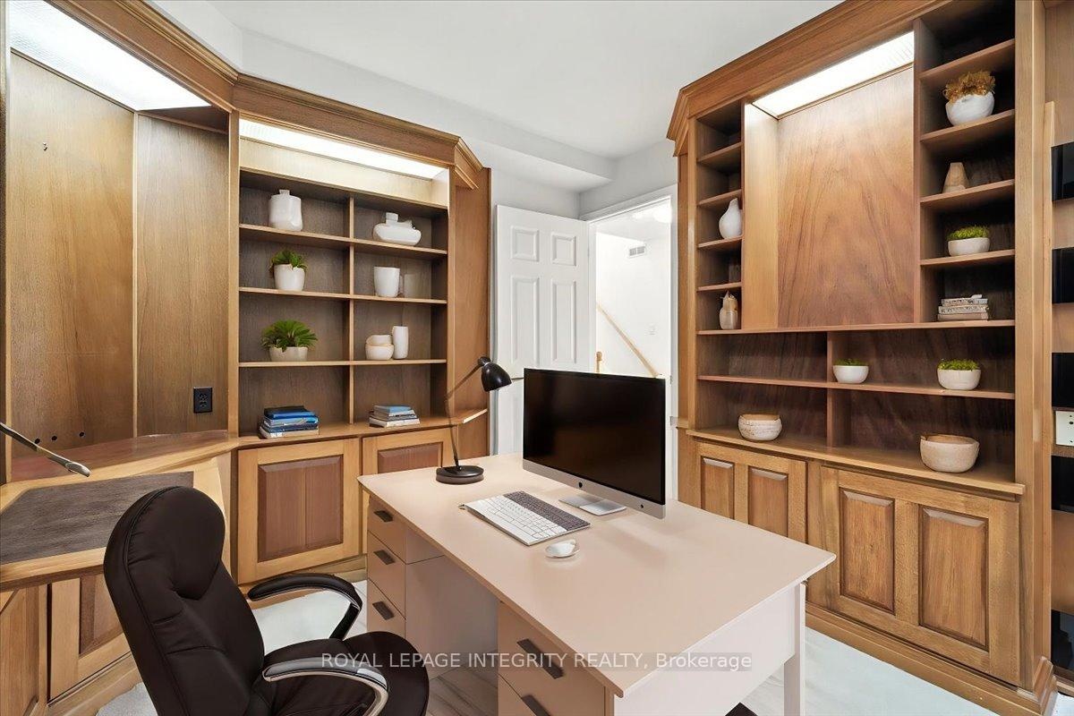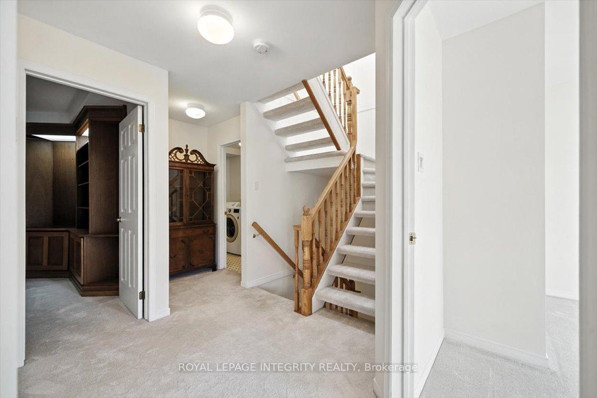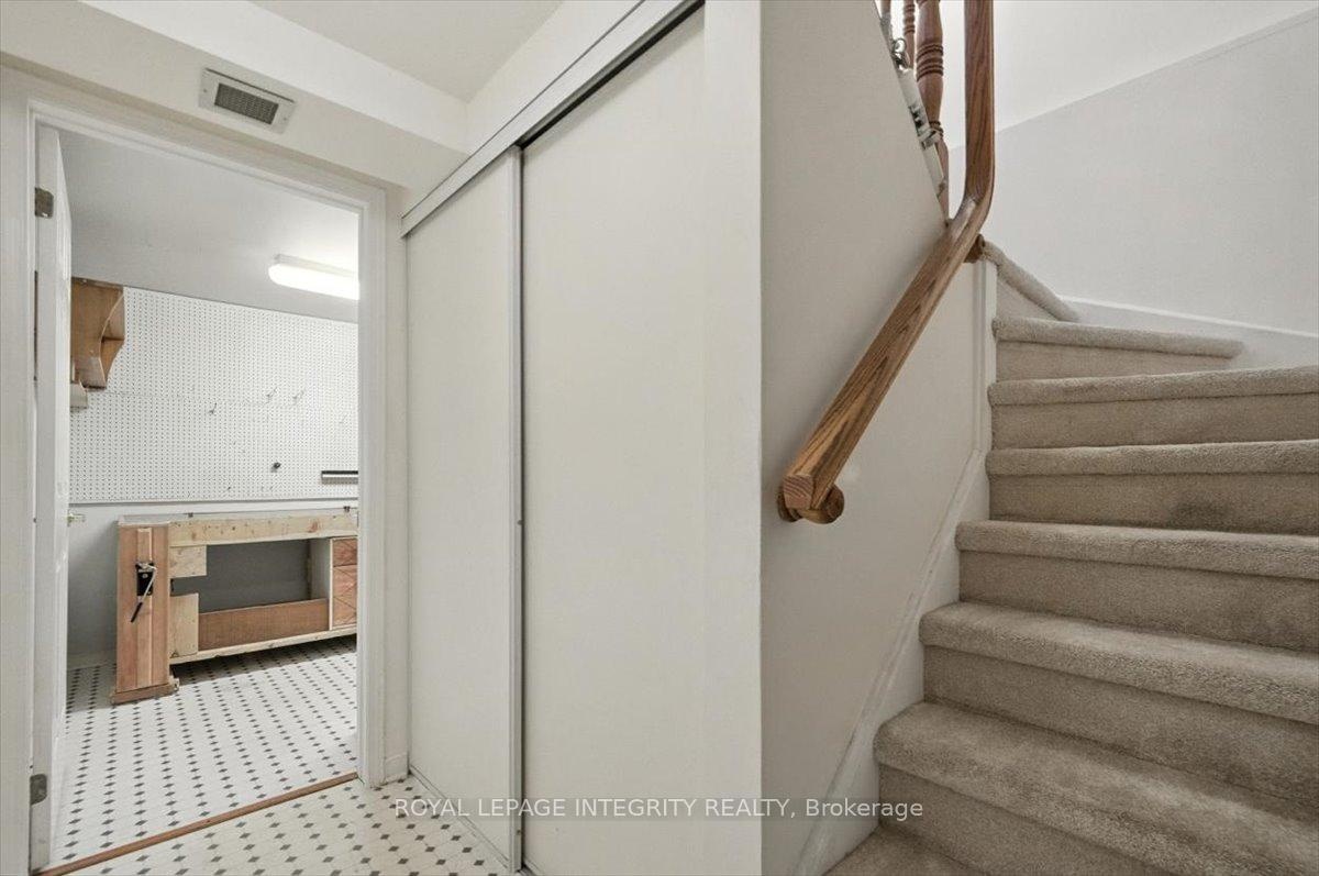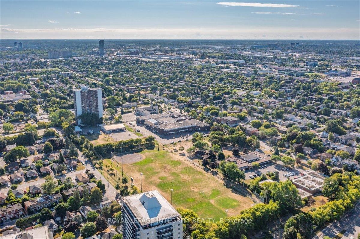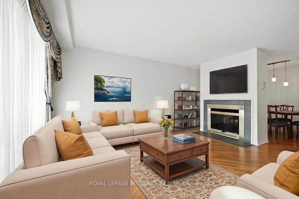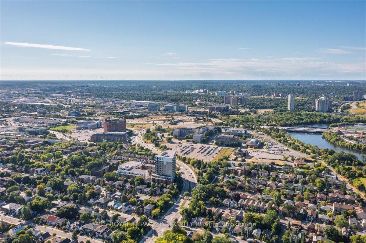 Welcome to 17 Columbus Avenue - a 3 bedroom + den, 3 bathroom freehold townhome tucked off North River Road, just minutes from Ottawa's best amenities, highway 417, downtown core/ByWard Market, cultural landmarks, the Rideau Sports Center & Tennis Club, the Adawe Crossing Bridge, and scenic pathways. This one-of-a-kind home offers the perfect balance of comfort and convenience. The driveway fitting 2 cars gives access to the attached garage and a pathway leads you to the front entrance, where a spacious foyer with powder room access sets the tone. Just a few steps up, the sun-filled living room features gleaming hardwood floors, patio doors opening to a walk-out deck and a double-sided wood-burning fireplace shared with the dining room bathed in natural light from the overhead skylight. The kitchen offers a practical layout with white cabinetry, tile backsplash, and new LED lighting. On the second level, you'll find two generous bedrooms, a full bathroom, and a versatile den with custom floor to ceiling built-in wooden library/office - perfect as a home office, reading nook, or easily converted into a 4th bedroom. A dedicated laundry room with a large storage closet completes this level. The top floor is reserved for the private primary retreat, complete with a 5-piece ensuite, spacious walk-in closet, and a sunny terrace with retractable awning. The basement provides direct garage access, a cedar closet, and a workshop/storage area. This freehold townhome is truly unlike any other and location can't be beat - come visit today!